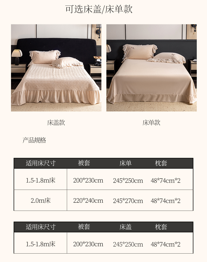 [{"sp_id":11,"sp_name":"\u989c\u8272","sp_format":2,"sp_list":[{"sp_value_id":1662,"sp_value_name":"\u6696\u674f\u8272","sp_value_image":{"id":999,"path":"https:\/\/img3.91jf.com\/ghelp\/2025\/20250920\/20250920102225_671095.jpg"},"sp_value_video":{"id":0,"img":"","path":"","time":0,"download_num":0,"play_num":0},"price":"140.00","storage":3000,"weight":"3.000","is_check_weight":0,"plus_price":"","sp_sort":0},{"sp_value_id":1663,"sp_value_name":"\u67d4\u96fe\u84dd","sp_value_image":{"id":999,"path":"https:\/\/img3.91jf.com\/ghelp\/2025\/20250920\/20250920102227_274121.jpg"},"sp_value_video":{"id":0,"img":"","path":"","time":0,"download_num":0,"play_num":0},"price":"140.00","storage":3000,"weight":"3.000","is_check_weight":0,"plus_price":"","sp_sort":0},{"sp_value_id":1664,"sp_value_name":"\u67d4\u96c5\u7070","sp_value_image":{"id":999,"path":"https:\/\/img3.91jf.com\/ghelp\/2025\/20250920\/20250920102227_512295.jpg"},"sp_value_video":{"id":0,"img":"","path":"","time":0,"download_num":0,"play_num":0},"price":"140.00","storage":3000,"weight":"3.000","is_check_weight":0,"plus_price":"","sp_sort":0},{"sp_value_id":1665,"sp_value_name":"\u751c\u68a6\u7c89","sp_value_image":{"id":999,"path":"https:\/\/img3.91jf.com\/ghelp\/2025\/20250920\/20250920102435_944191.jpg"},"sp_value_video":{"id":0,"img":"","path":"","time":0,"download_num":0,"play_num":0},"price":"140.00","storage":2999,"weight":"3.000","is_check_weight":0,"plus_price":"","sp_sort":0}]},{"sp_id":10,"sp_name":"\u5c3a\u5bf8","sp_format":1,"sp_list":[{"sp_value_id":41,"sp_value_name":"1.5m\u5e8a\u5355\u6b3e\u56db\u4ef6\u5957","sp_value_image":{"id":0,"path":""},"sp_value_video":{"id":0,"img":"","path":"","time":0,"download_num":0,"play_num":0},"price":"140.00","storage":500,"weight":"3.000","is_check_weight":0,"plus_price":"","sp_sort":5},{"sp_value_id":42,"sp_value_name":"1.8m\u5e8a\u5355\u6b3e\u56db\u4ef6\u5957","sp_value_image":{"id":0,"path":""},"sp_value_video":{"id":0,"img":"","path":"","time":0,"download_num":0,"play_num":0},"price":"140.00","storage":500,"weight":"3.000","is_check_weight":0,"plus_price":"","sp_sort":6},{"sp_value_id":43,"sp_value_name":"2.0m\u5e8a\u5355\u6b3e\u56db\u4ef6\u5957","sp_value_image":{"id":0,"path":""},"sp_value_video":{"id":0,"img":"","path":"","time":0,"download_num":0,"play_num":0},"price":"150.00","storage":500,"weight":"3.000","is_check_weight":0,"plus_price":"","sp_sort":7},{"sp_value_id":44,"sp_value_name":"1.5m\u5e8a\u76d6\u6b3e\u56db\u4ef6\u5957","sp_value_image":{"id":0,"path":""},"sp_value_video":{"id":0,"img":"","path":"","time":0,"download_num":0,"play_num":0},"price":"170.00","storage":500,"weight":"3.000","is_check_weight":0,"plus_price":"","sp_sort":8},{"sp_value_id":45,"sp_value_name":"1.8m\u5e8a\u76d6\u6b3e\u56db\u4ef6\u5957","sp_value_image":{"id":0,"path":""},"sp_value_video":{"id":0,"img":"","path":"","time":0,"download_num":0,"play_num":0},"price":"170.00","storage":500,"weight":"3.000","is_check_weight":0,"plus_price":"","sp_sort":9},{"sp_value_id":736,"sp_value_name":"2.0m\u5e8a\u76d6\u6b3e\u56db\u4ef6\u5957","sp_value_image":{"id":0,"path":""},"sp_value_video":{"id":0,"img":"","path":"","time":0,"download_num":0,"play_num":0},"price":"180.00","storage":500,"weight":"3.000","is_check_weight":0,"plus_price":"","sp_sort":10}]}]