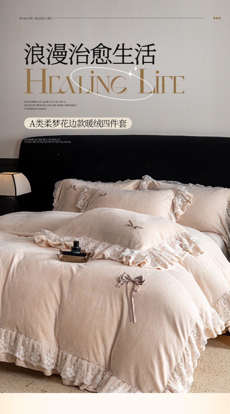 (总)罗优家纺 2025新款柔梦花边款暖绒四件套