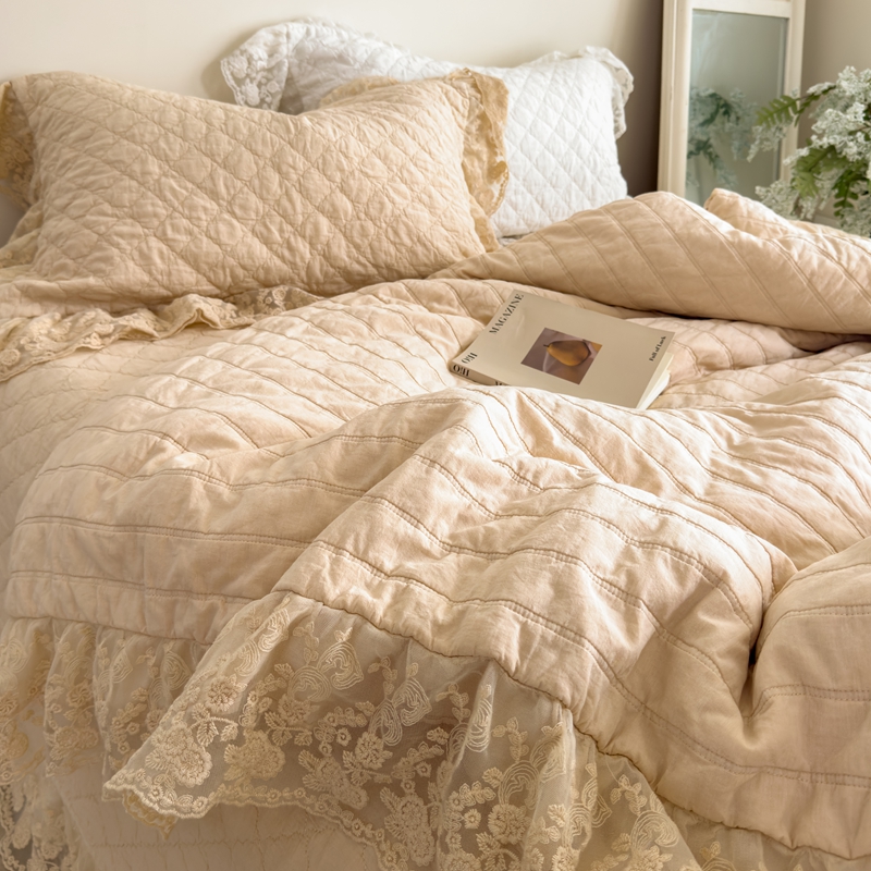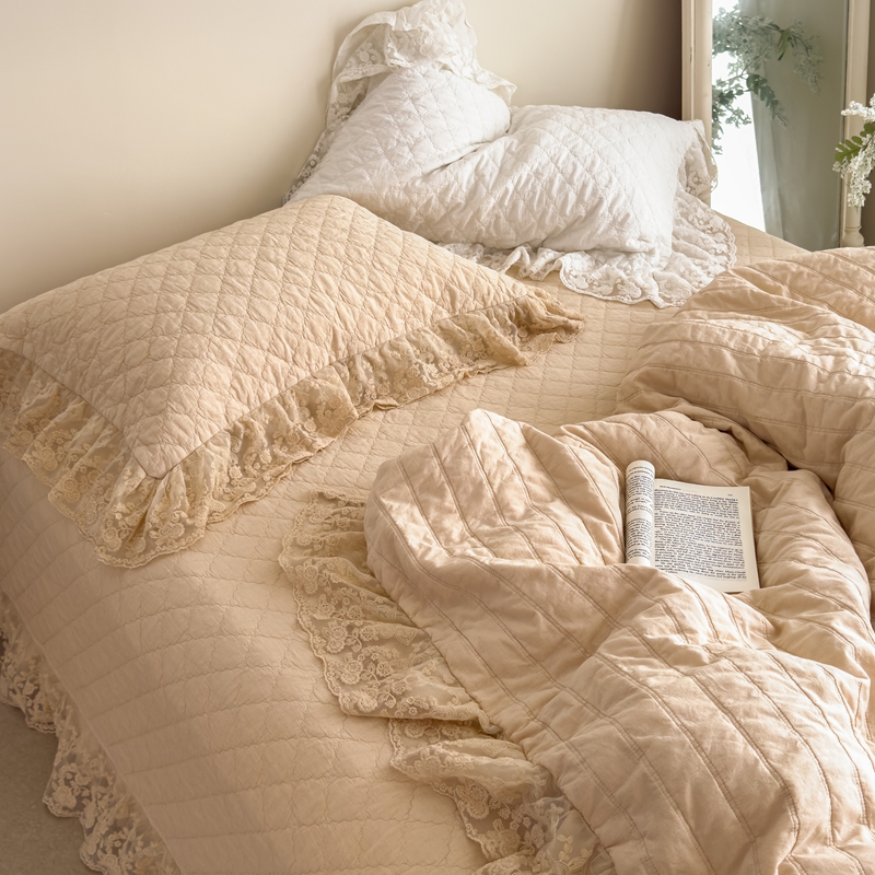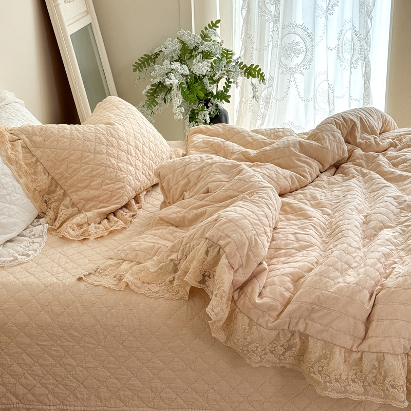 商品名称:上喜 2025新款六代砂洗床盖三件套+多功能夏被 奶油米