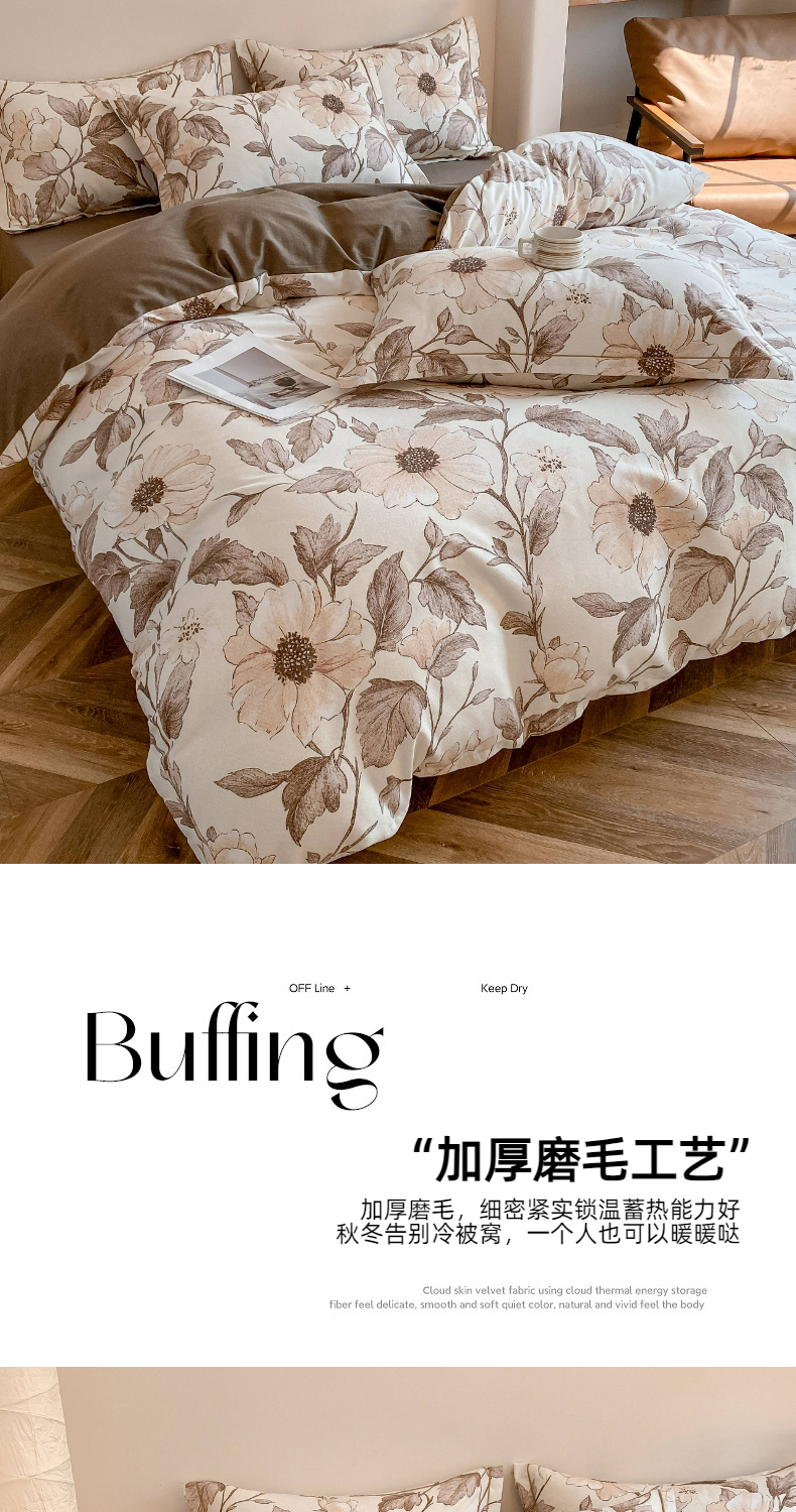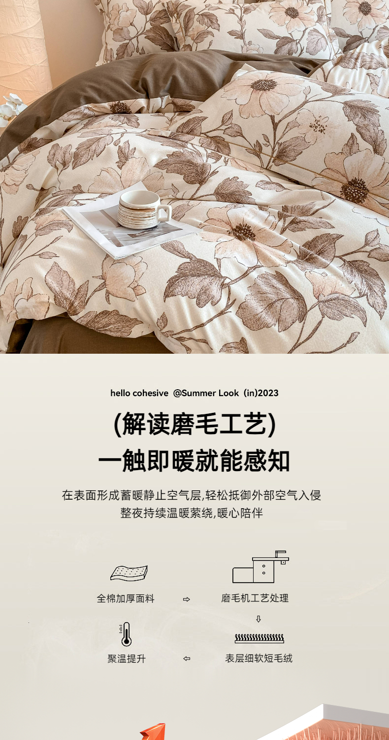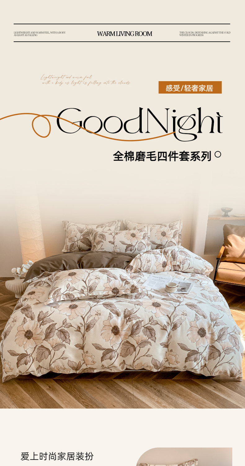 当前位置: 91家纺网 > 商品网购 > 床品套件 > 四件套 > 普通磨毛四件套 > 大吉 2025新款加厚活性喷气磨毛棉四件套被套床单床笠学生单人三件套 烟雨江南-咖