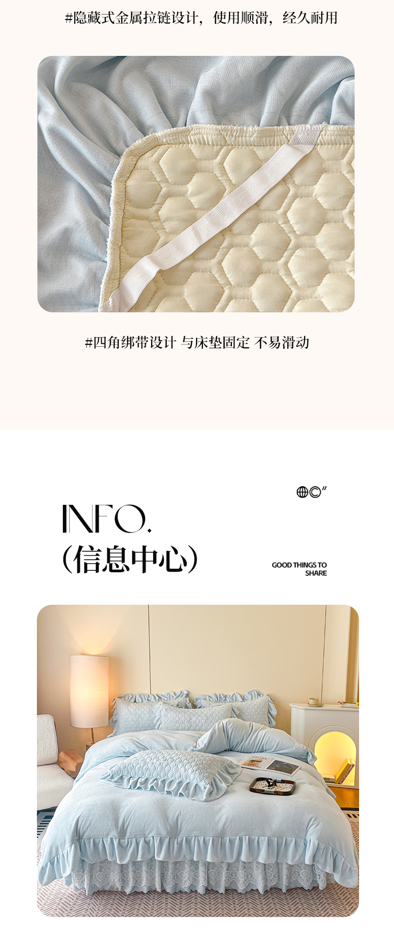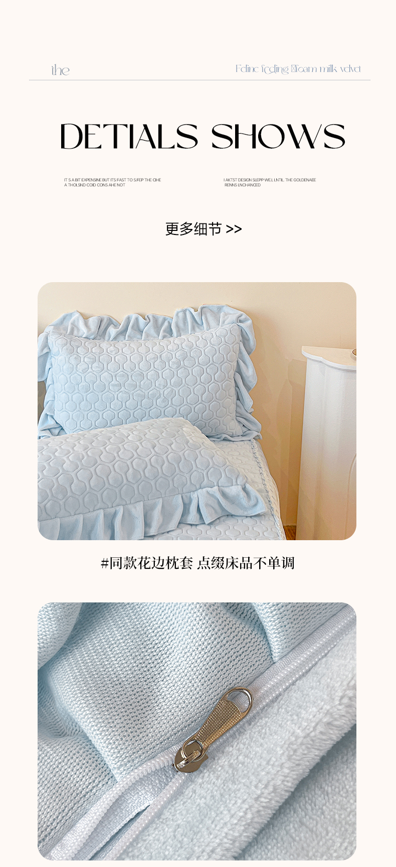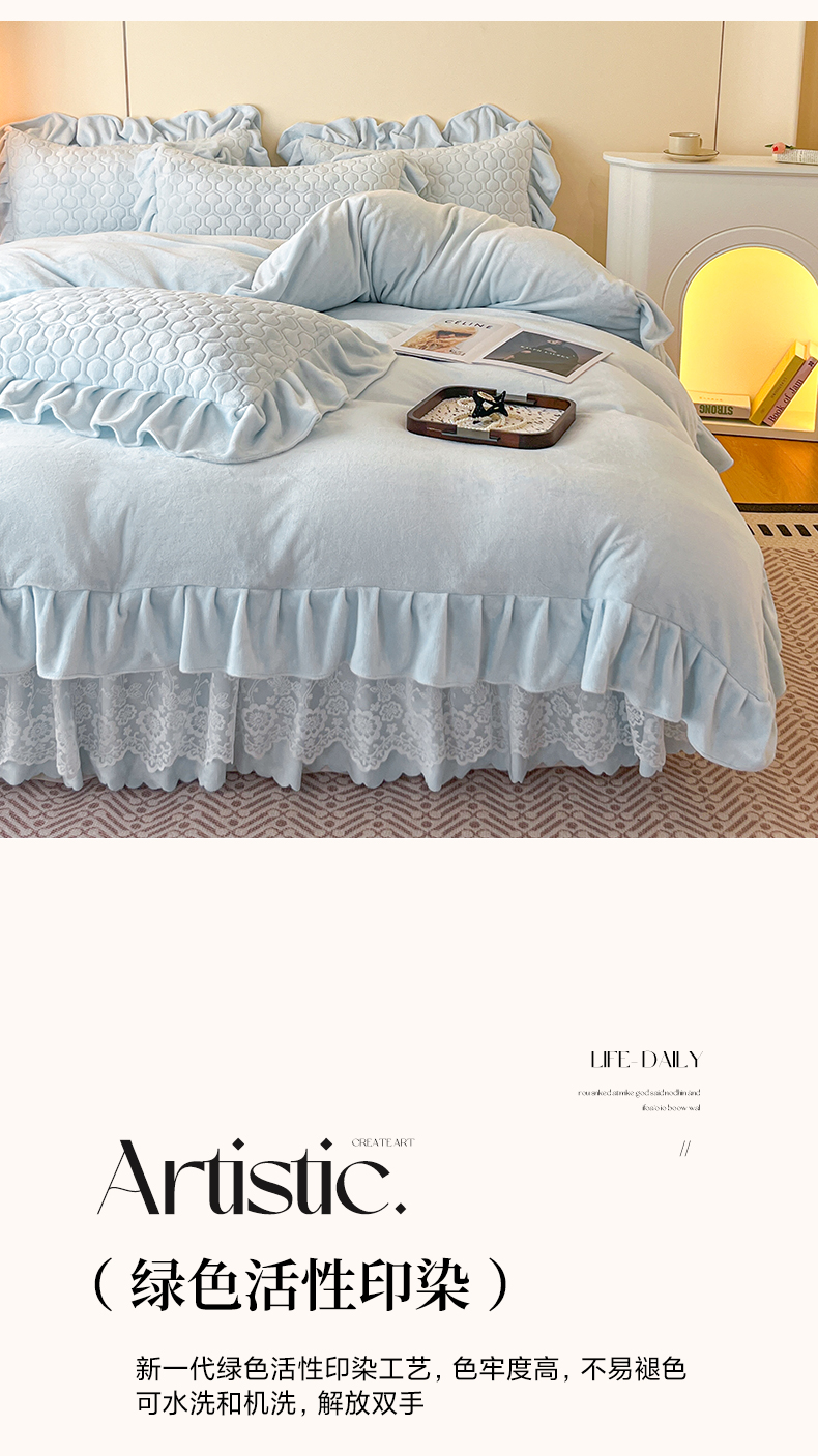 当前位置: 91家纺网 > 商品网购 > 床品套件 > 四件套 > 牛奶绒四件套 > 民新家纺 2025新款牛奶绒花边床裙四件套 浪漫时光-浅蓝