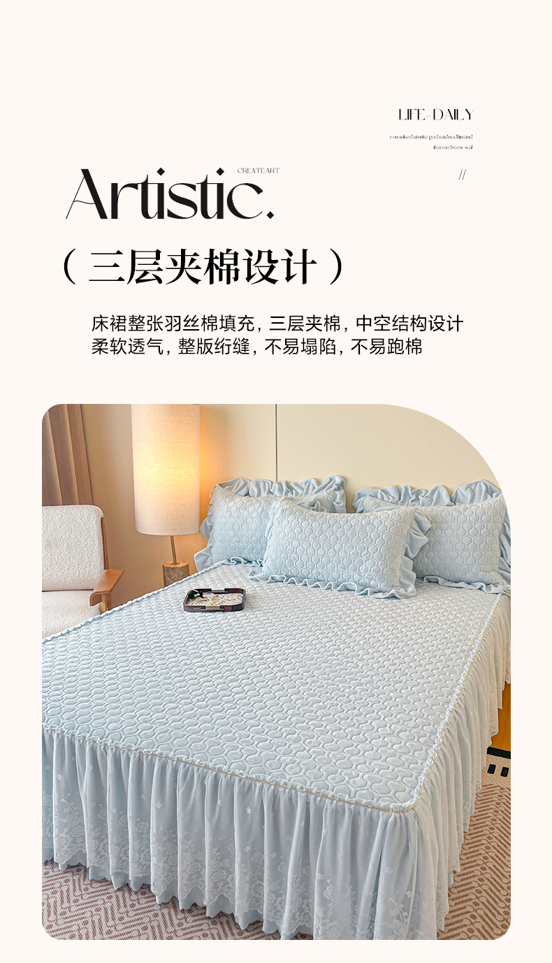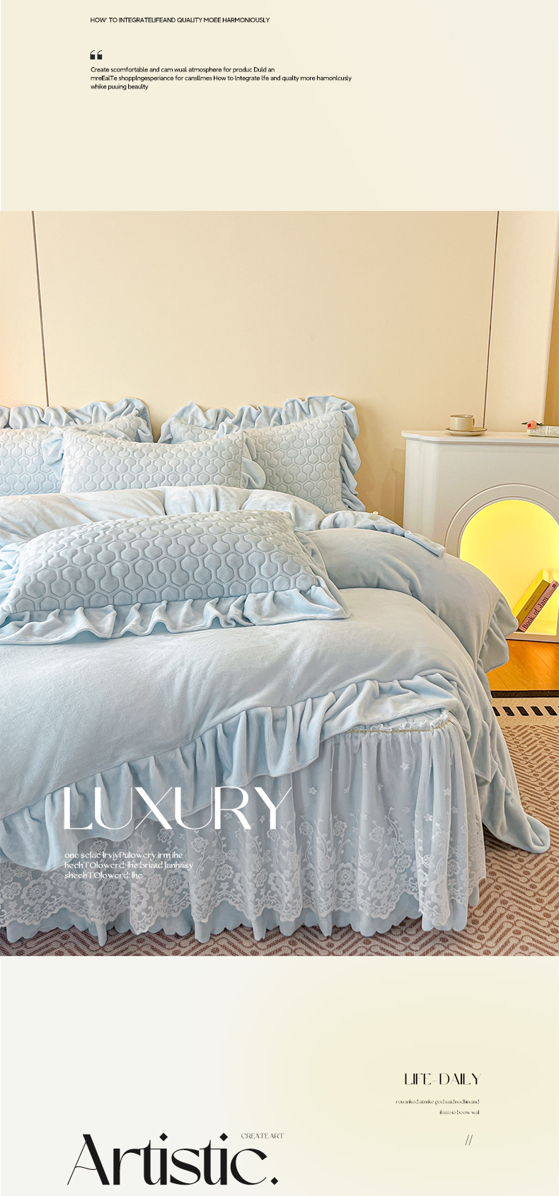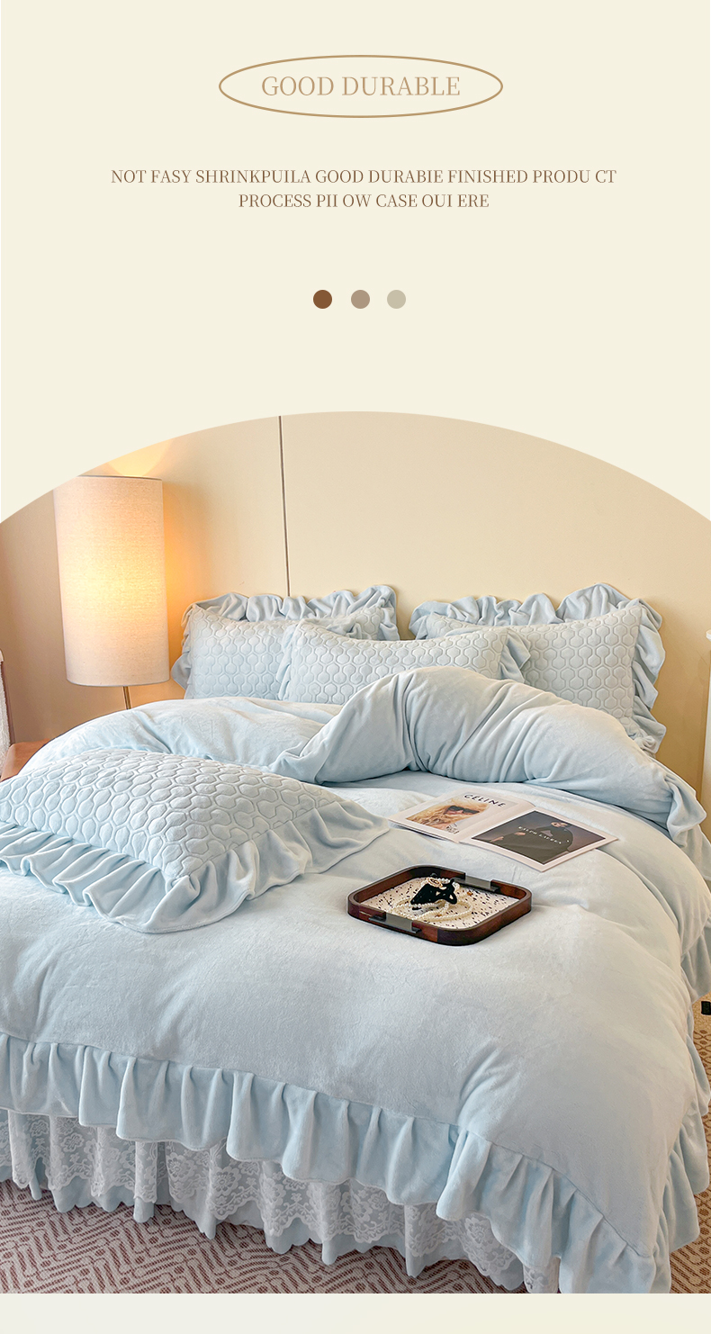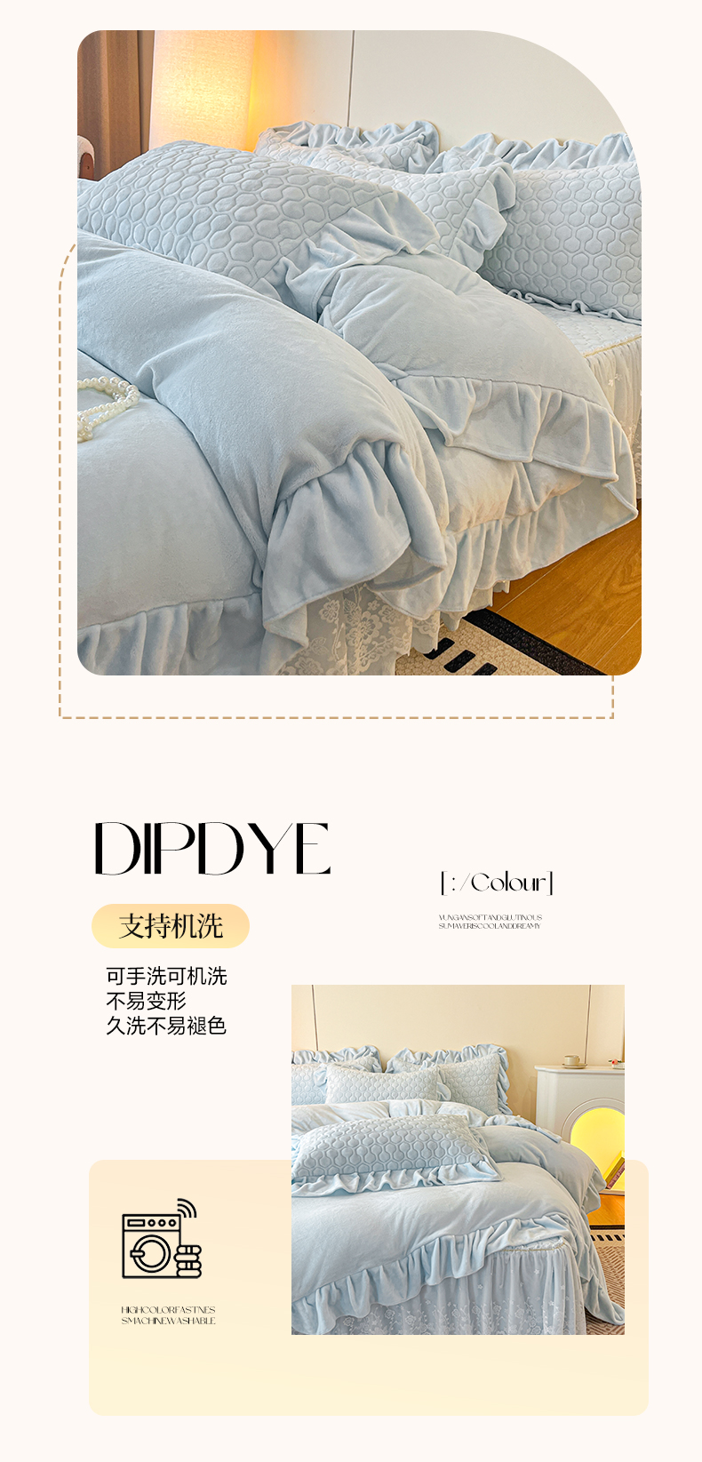 当前位置: 91家纺网 > 商品网购 > 床品套件 > 四件套 > 牛奶绒四件套 > 民新家纺 2025新款牛奶绒花边床裙四件套 浪漫时光-浅蓝
