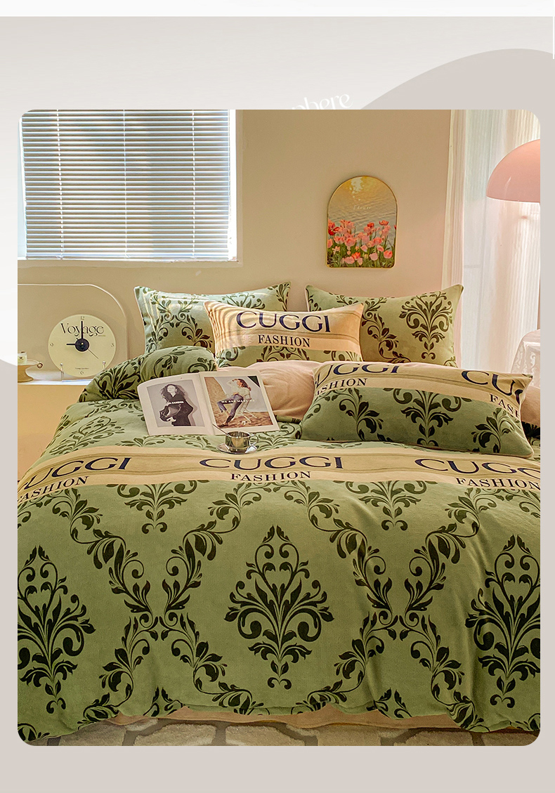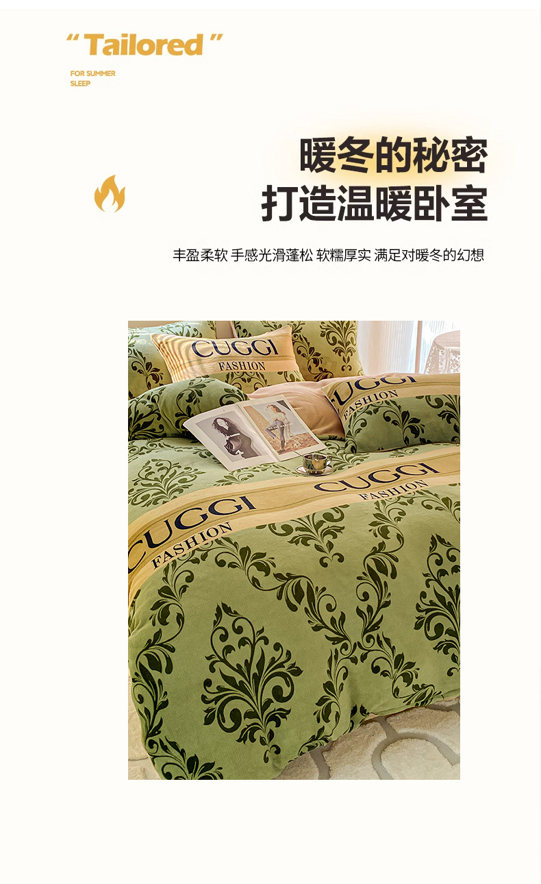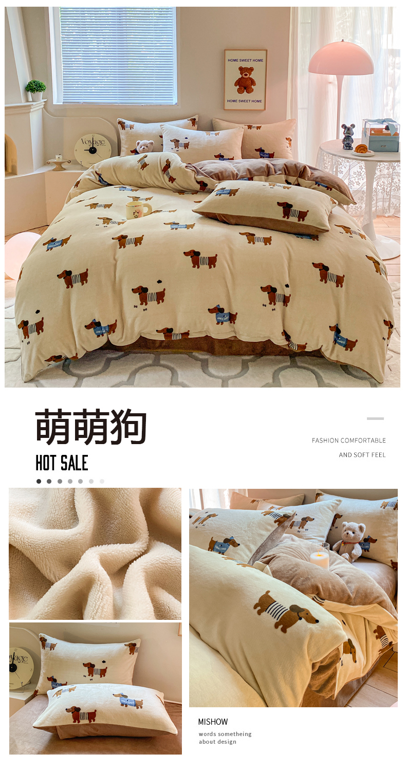 斯卡诺家纺 2025小清新加厚高克重牛奶绒四件套网红直播爆款 泥点子母