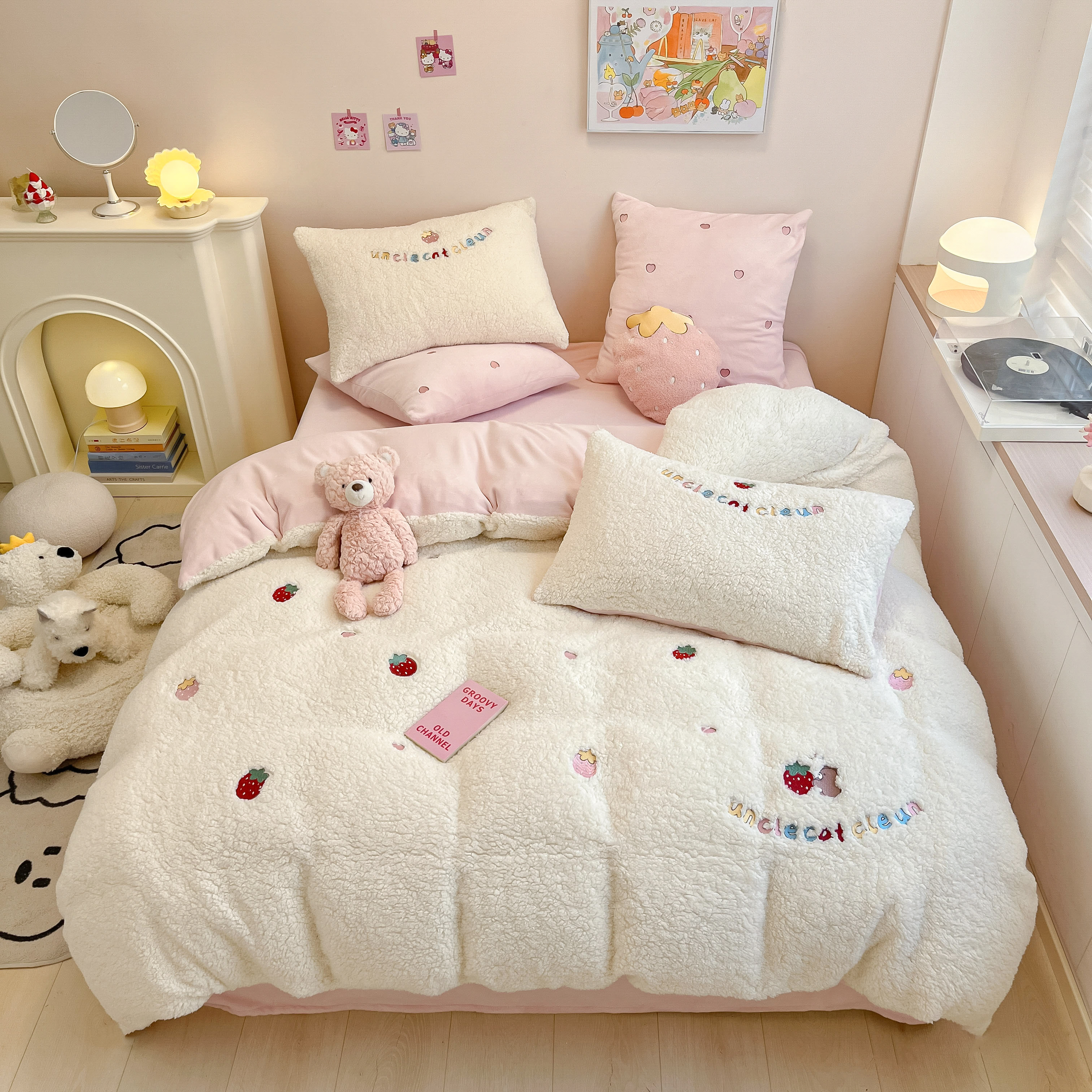当前位置: 91家纺网 > 商品网购 > 床品套件 > 四件套 > 牛奶绒四件套 > (总)FORTWO家纺原创设计(FOR TWO家纺) 2025新款羊羔绒绣花四件套-草莓果果