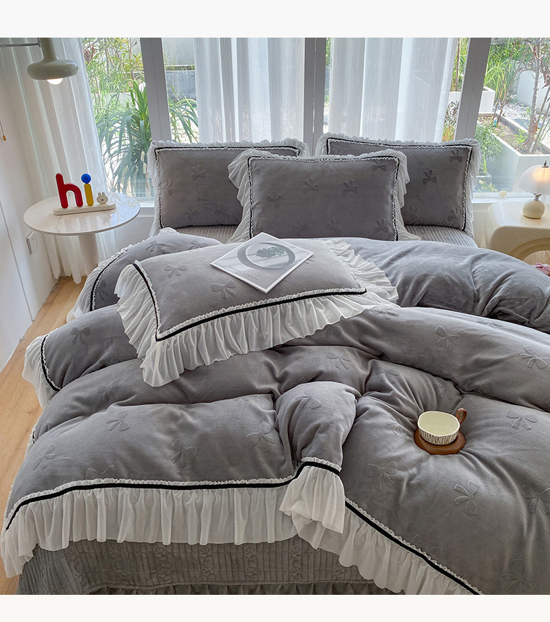 商品名称:青竹苑 2025新款韩版全消光烂花牛奶绒床盖四件套 蝴蝶-灰色