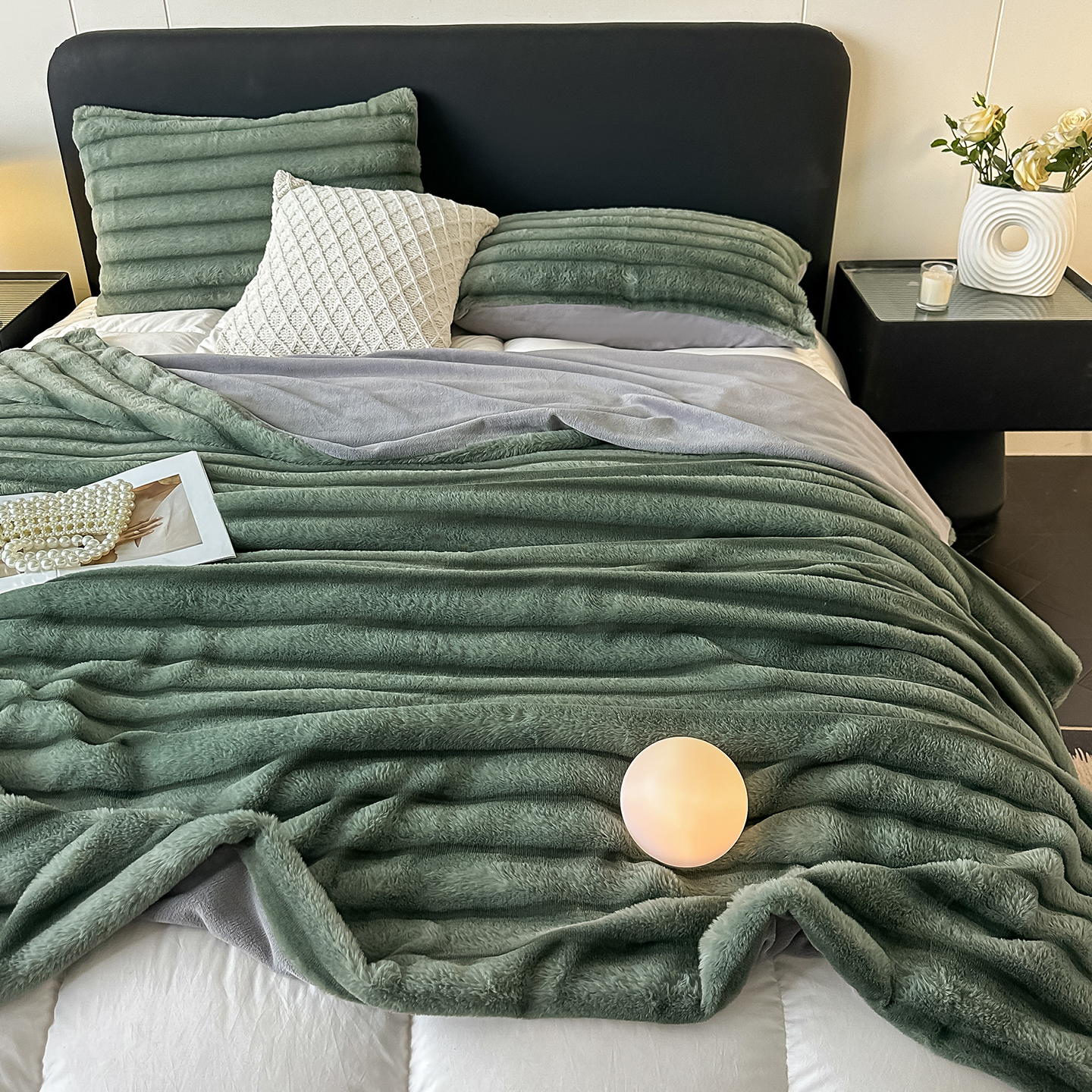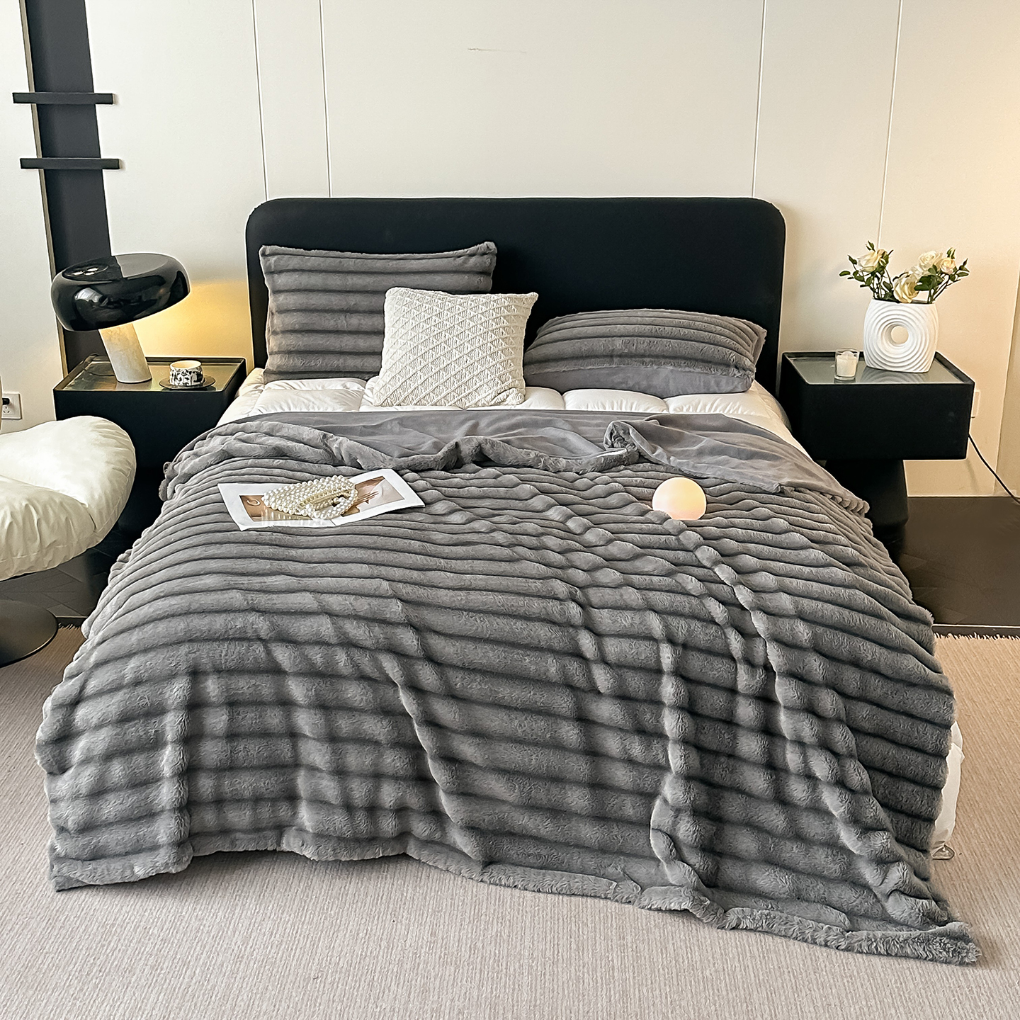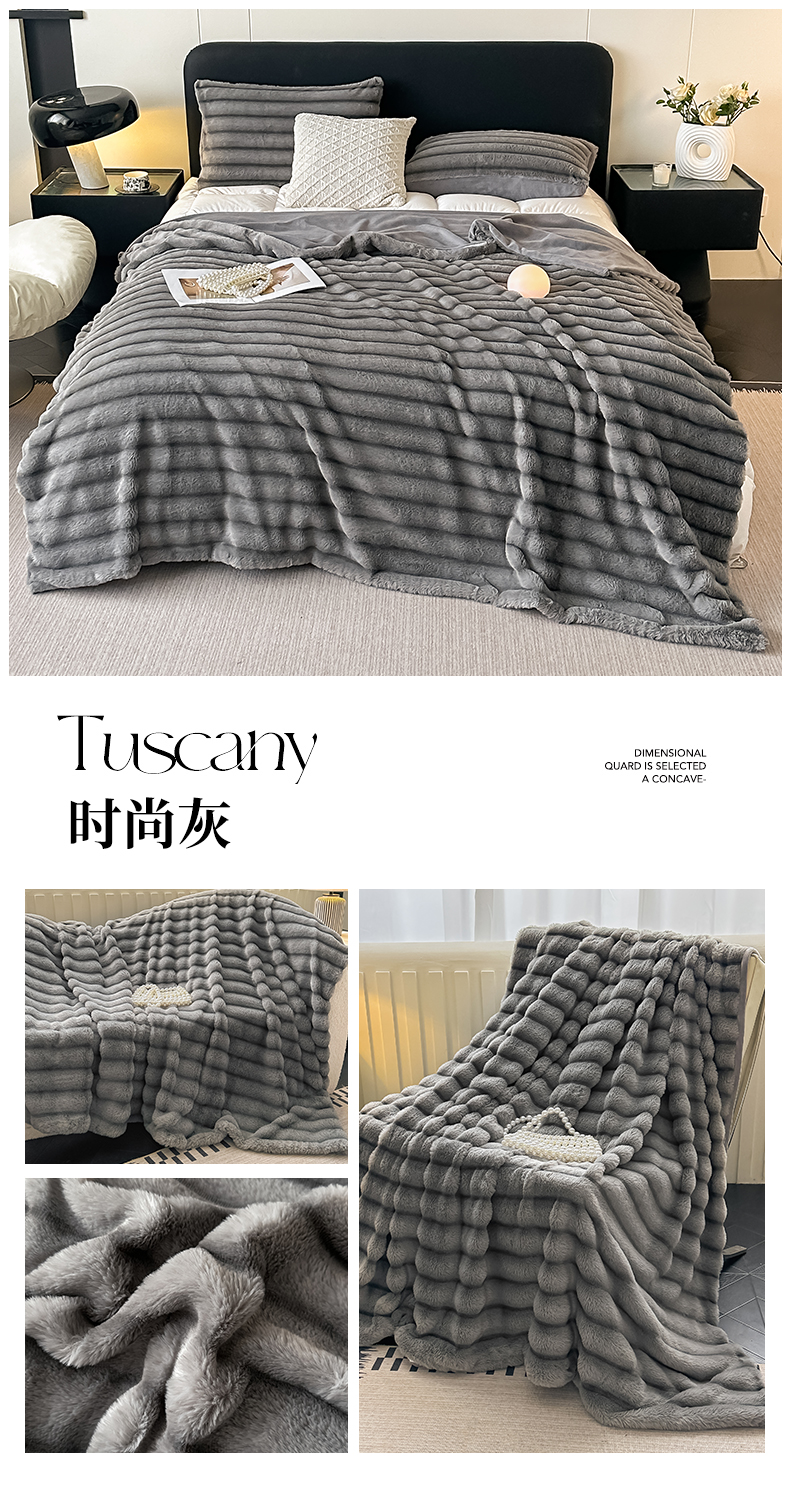 梵克保罗 2025新款加厚美拉德抽条兔毛绒毛毯毛毯毯子 支持跨境外贸 高级灰