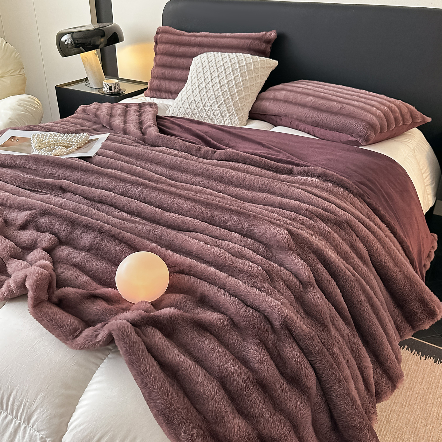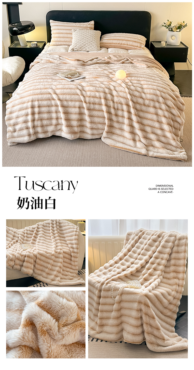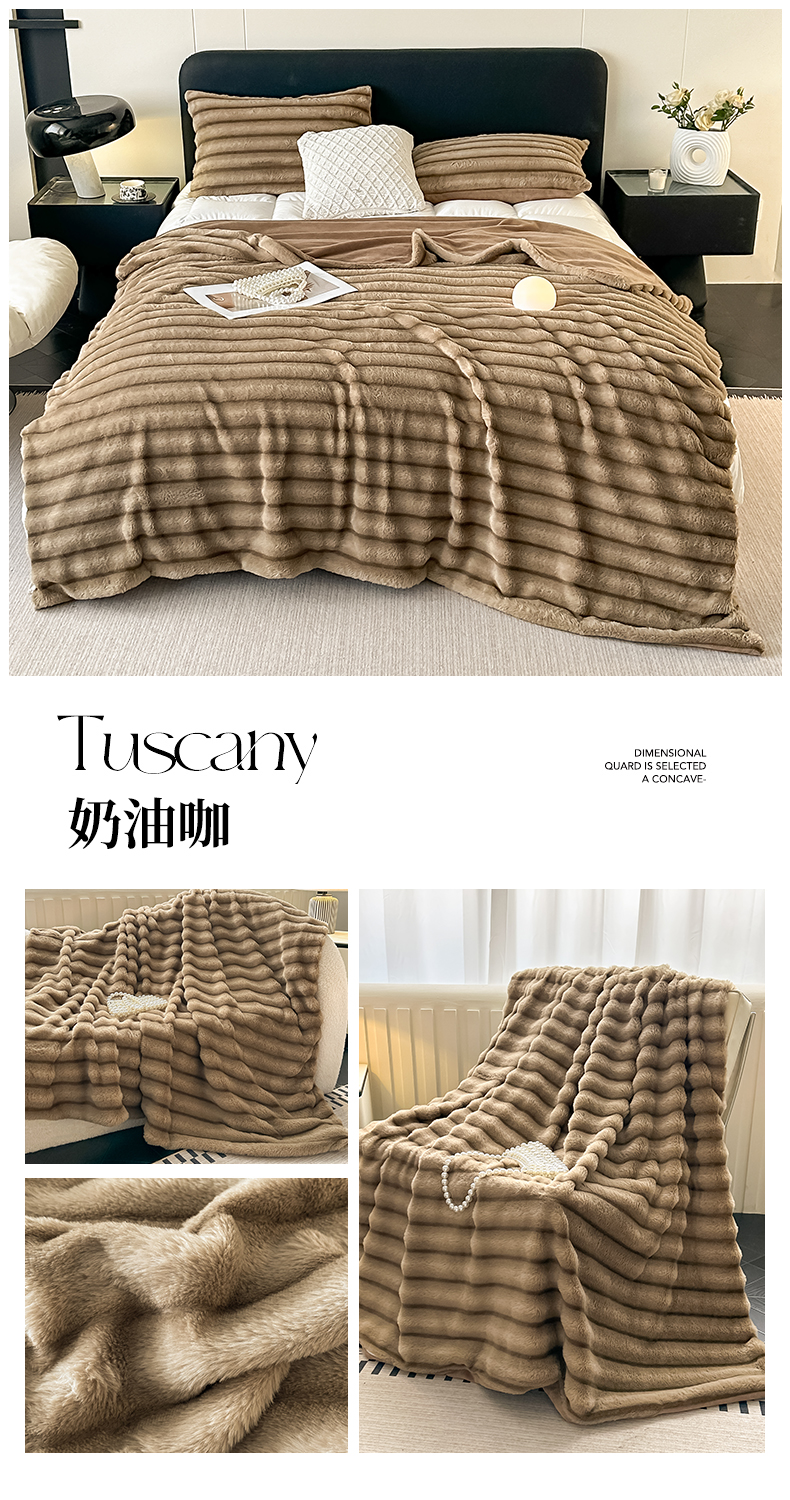 商品名称:梵克保罗 2025新款加厚美拉德抽条兔毛绒毛毯毛毯毯子 支持跨境外贸 高级灰