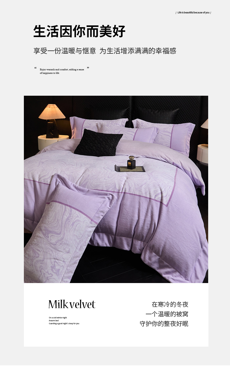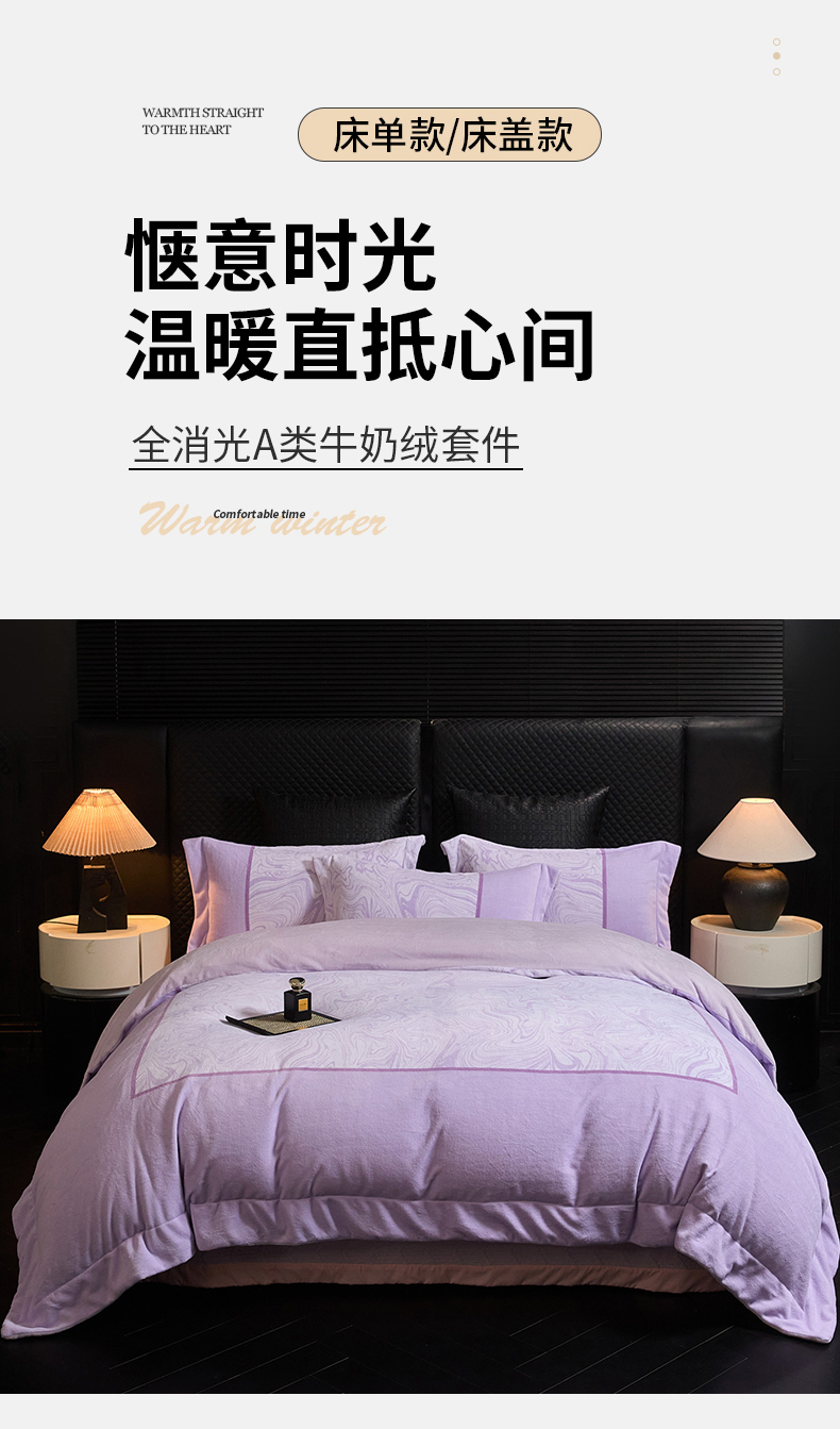 当前位置: 91家纺网 > 商品网购 > 床品套件 > 四件套 > 牛奶绒四件套 > 新方向 2025新款240克全消光数码印花牛奶绒四件套床盖款-云杉 云杉-魅紫