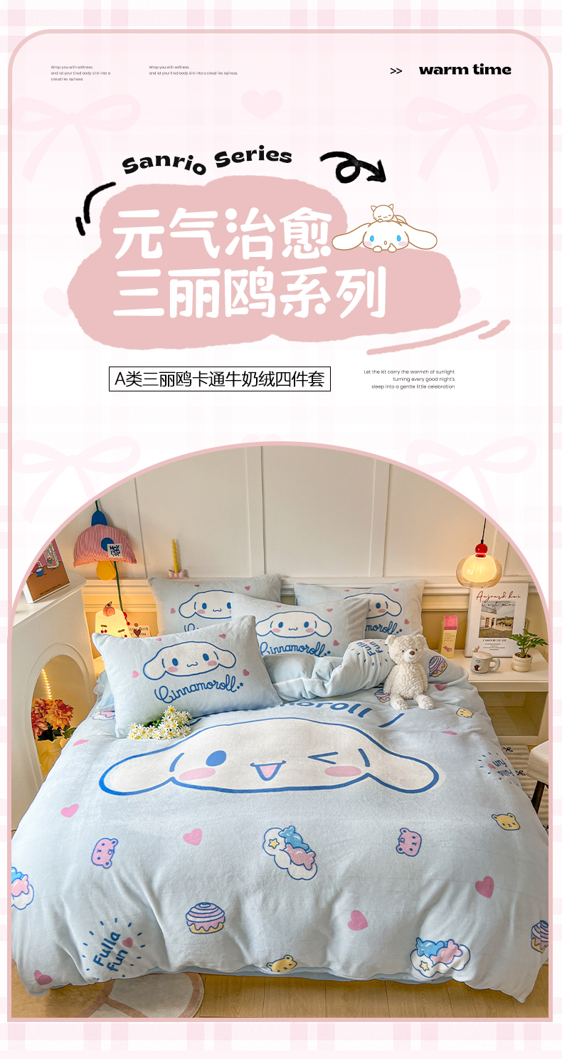 (总)妖妖家纺 2025新款高克重牛奶绒三丽鸥大版四件套