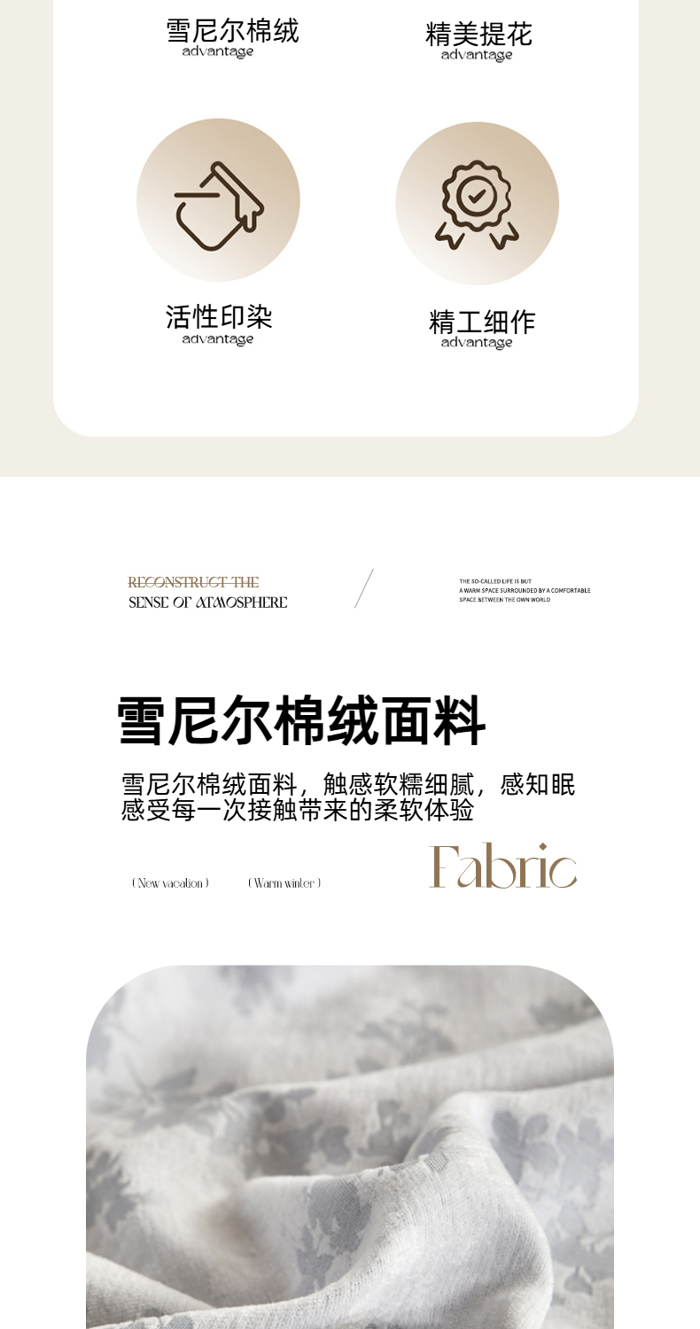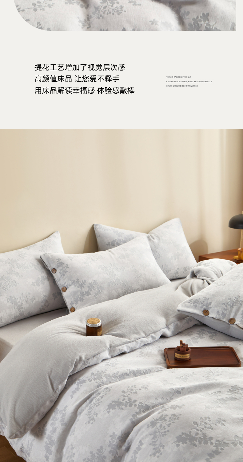 当前位置: 91家纺网 > 商品网购 > 床品套件 > 四件套 > 其它四件套 > 润肤居 2025新款雪尼尔棉绒大提花四件套 樱花雨梦-兰灰