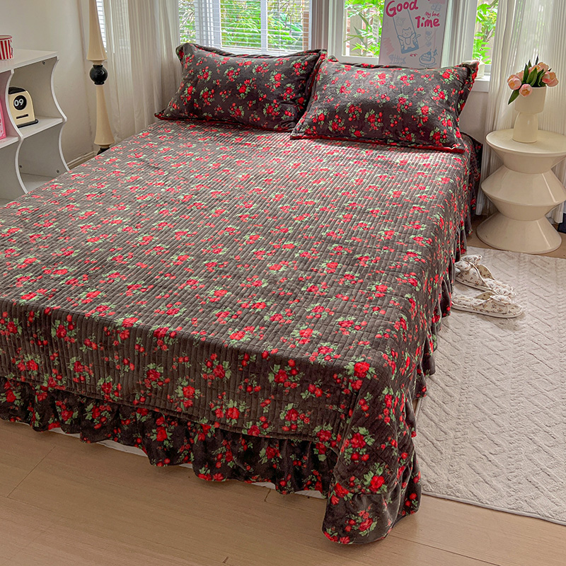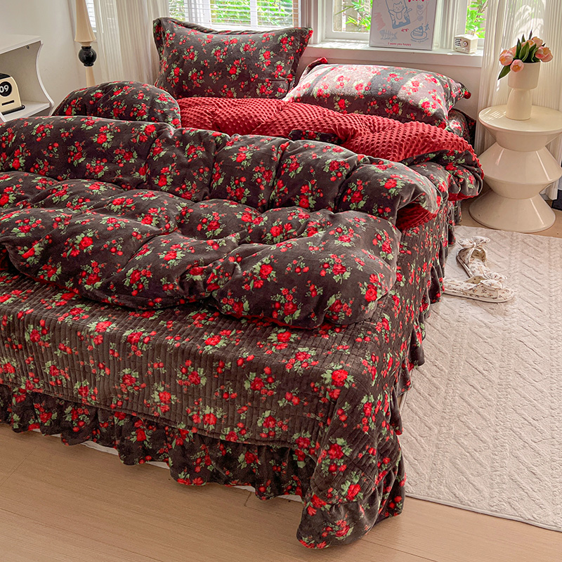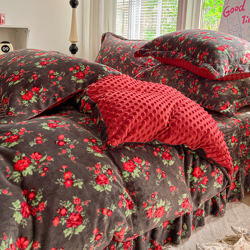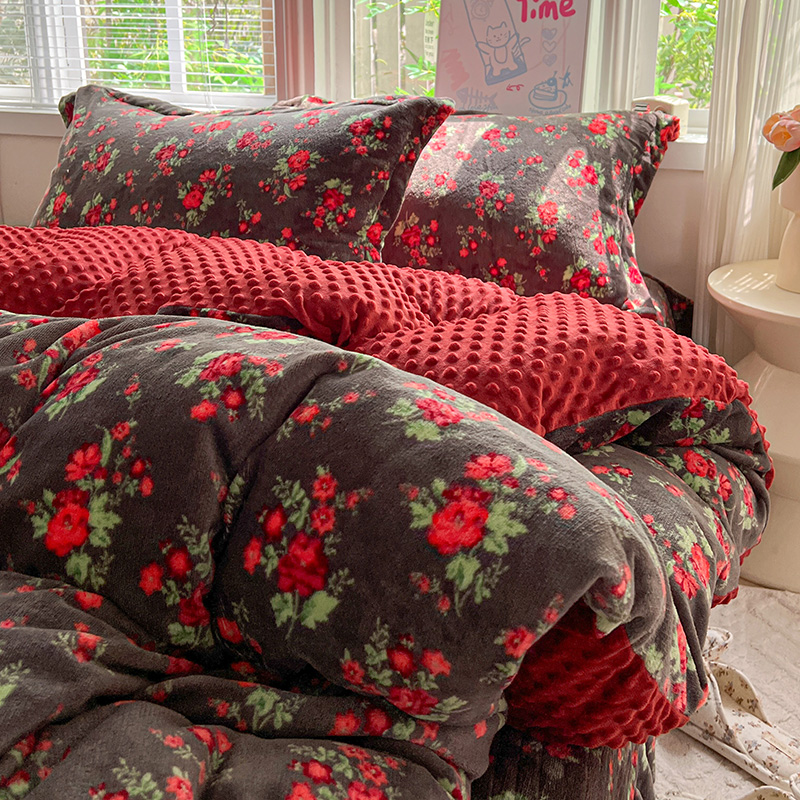 当前位置: 91家纺网 > 商品网购 > 床品套件 > 四件套 > 牛奶绒四件套 > 一比一 2025新款加厚保暖豆豆牛奶绒床盖款四件套玫瑰之约 - 黑