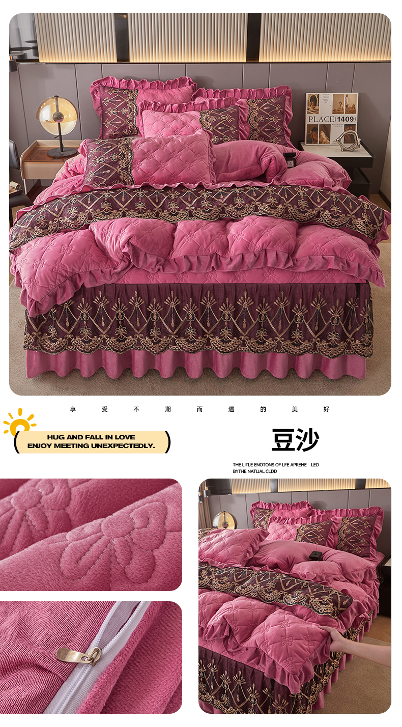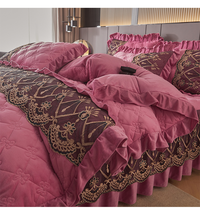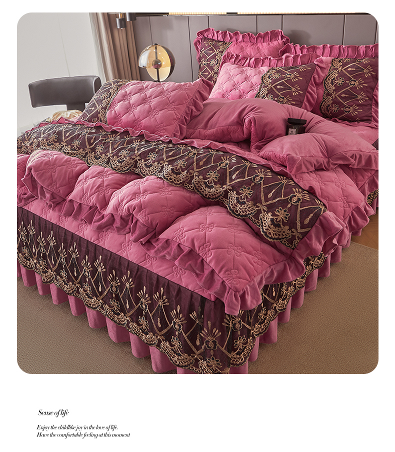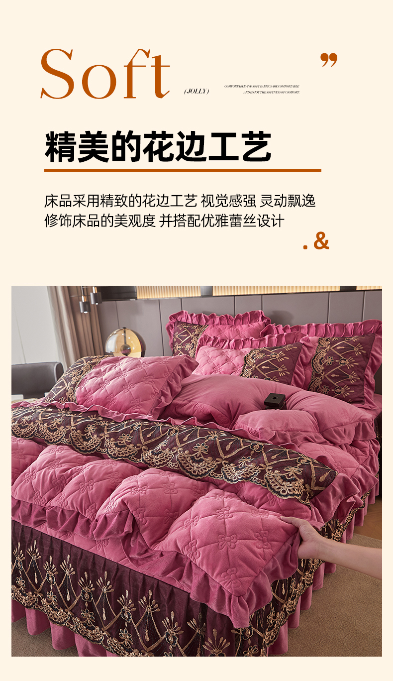 当前位置: 91家纺网 > 商品网购 > 床品套件 > 四件套 > 水晶绒四件套 > 屹成家纺2025新款水晶绒夹棉绗缝床裙四件套(塞纳河畔)四件套起售价不低于230元 豆沙