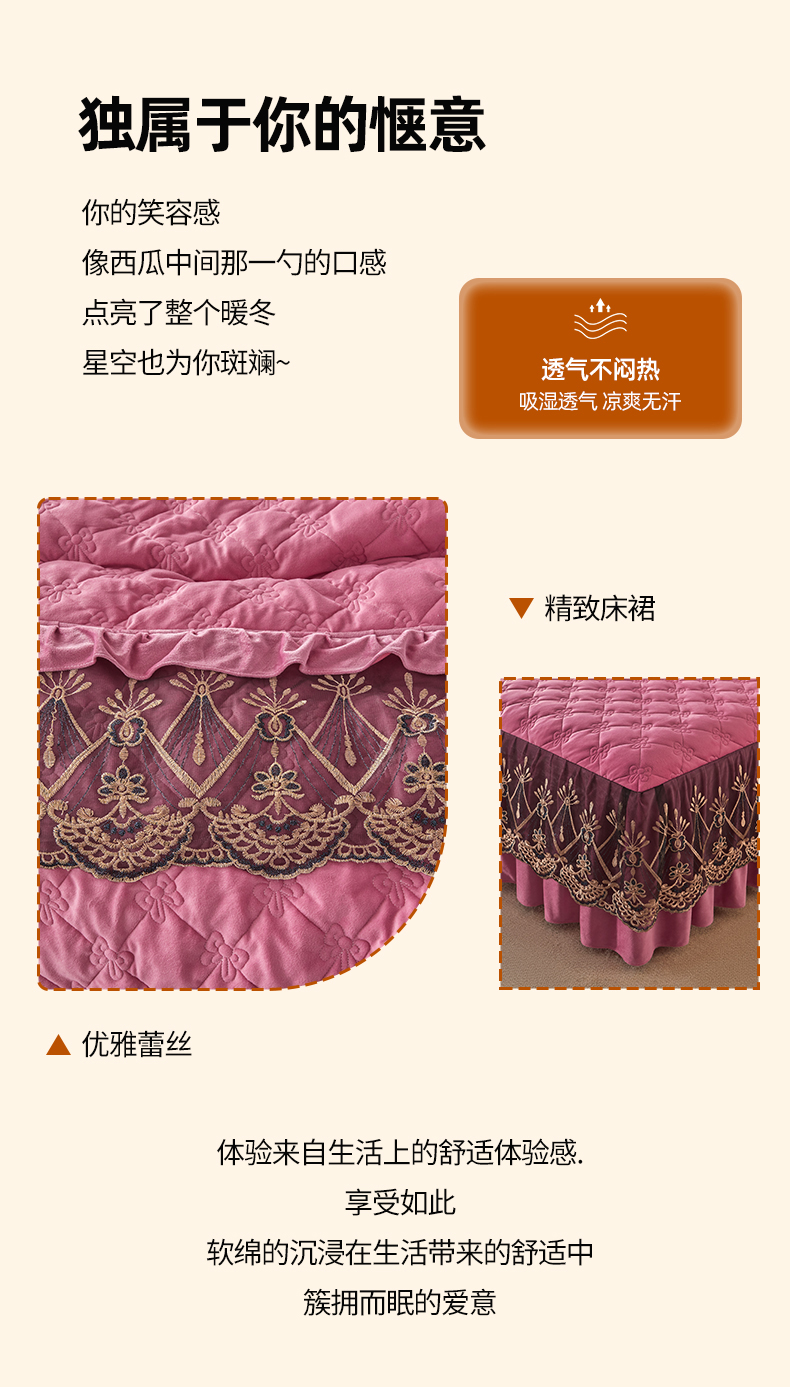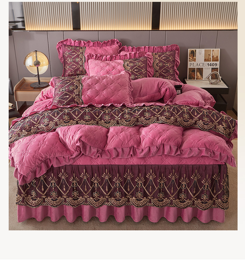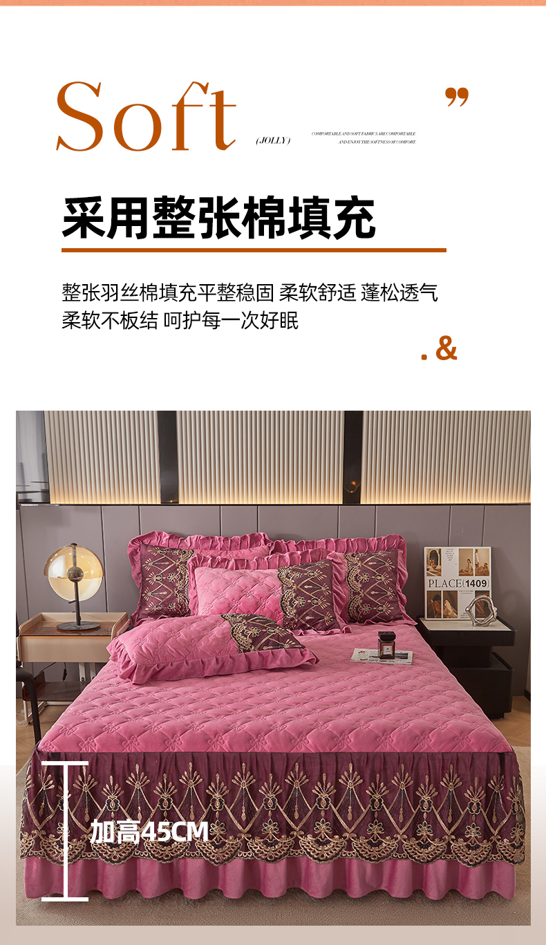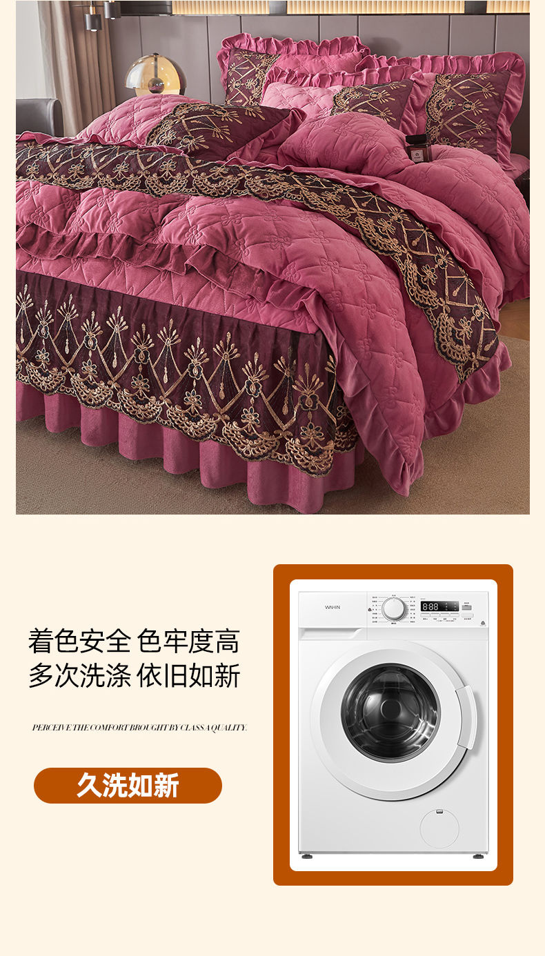 当前位置: 91家纺网 > 商品网购 > 床品套件 > 四件套 > 水晶绒四件套 > 屹成家纺2025新款水晶绒夹棉绗缝床裙四件套(塞纳河畔)四件套起售价不低于230元 豆沙
