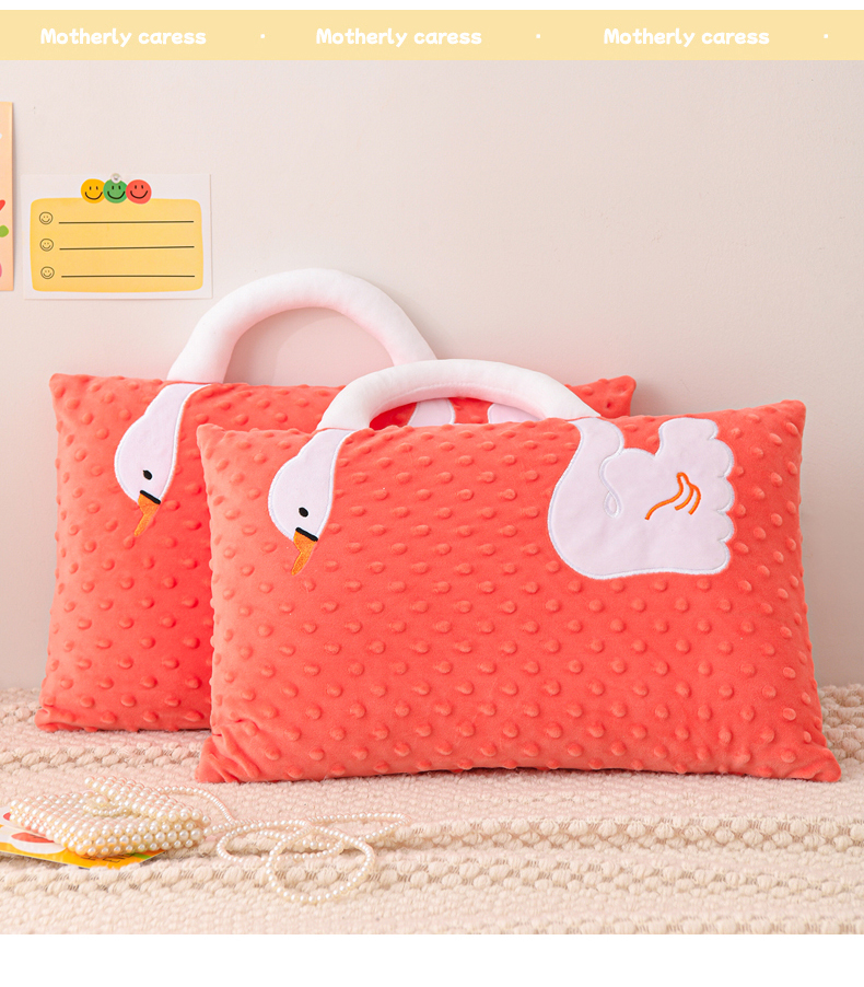 大熊枕芯 2025新款手提袋动物园豆豆绒儿童枕芯 枕套+内胆 手提款-恐龙粉
