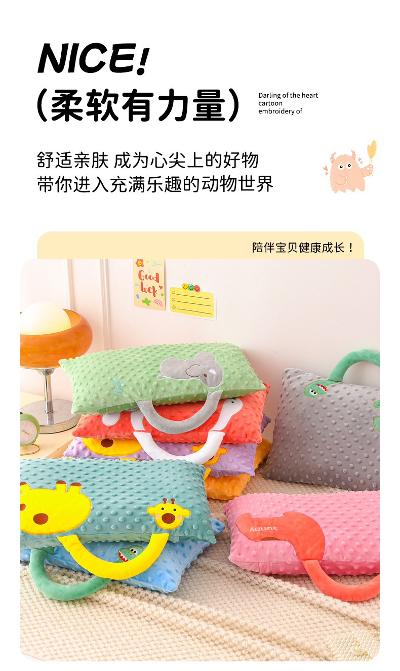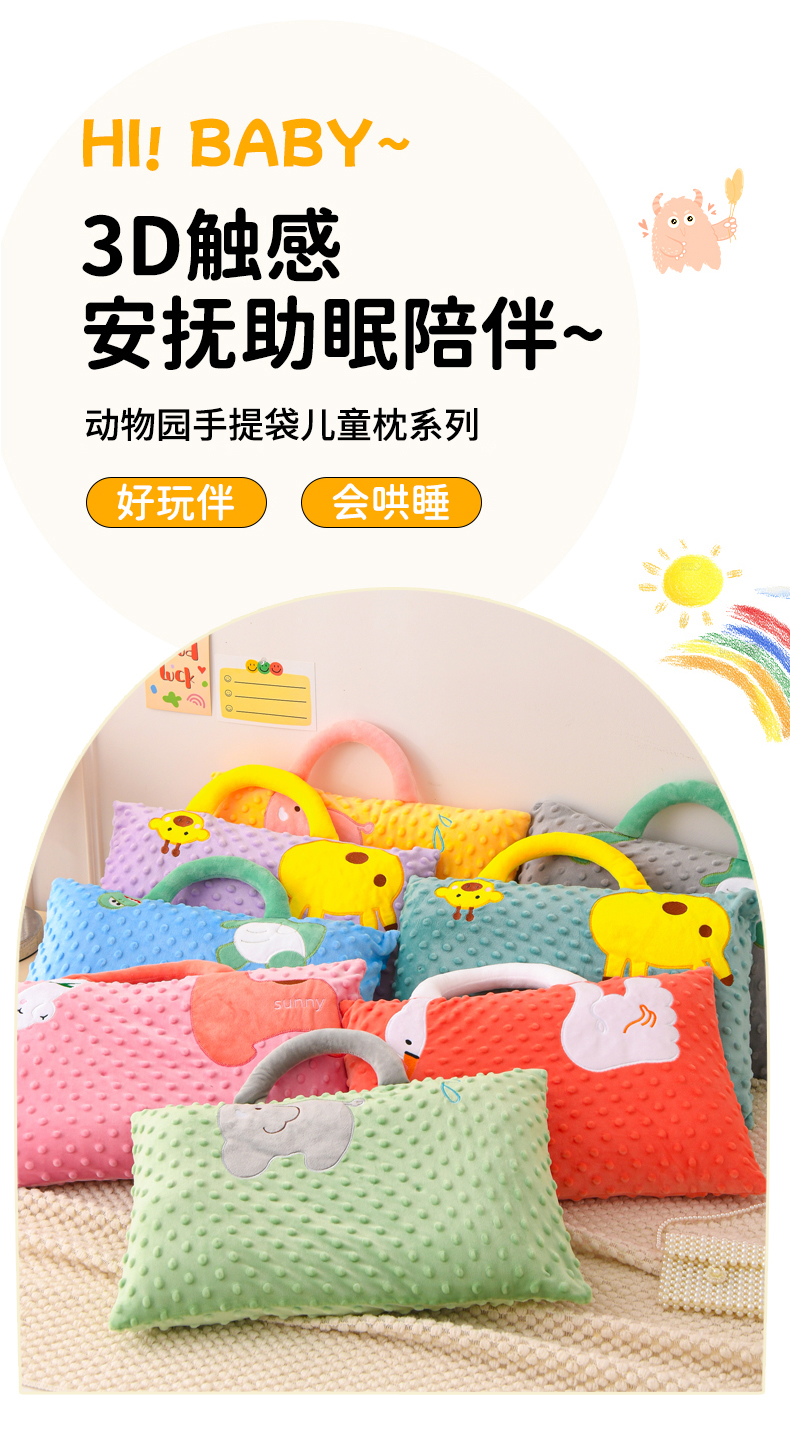 商品名称:大熊枕芯 2025新款手提袋动物园豆豆绒儿童枕芯 枕套+内胆 手提款-恐龙粉