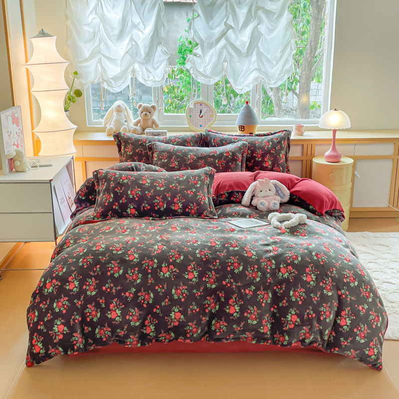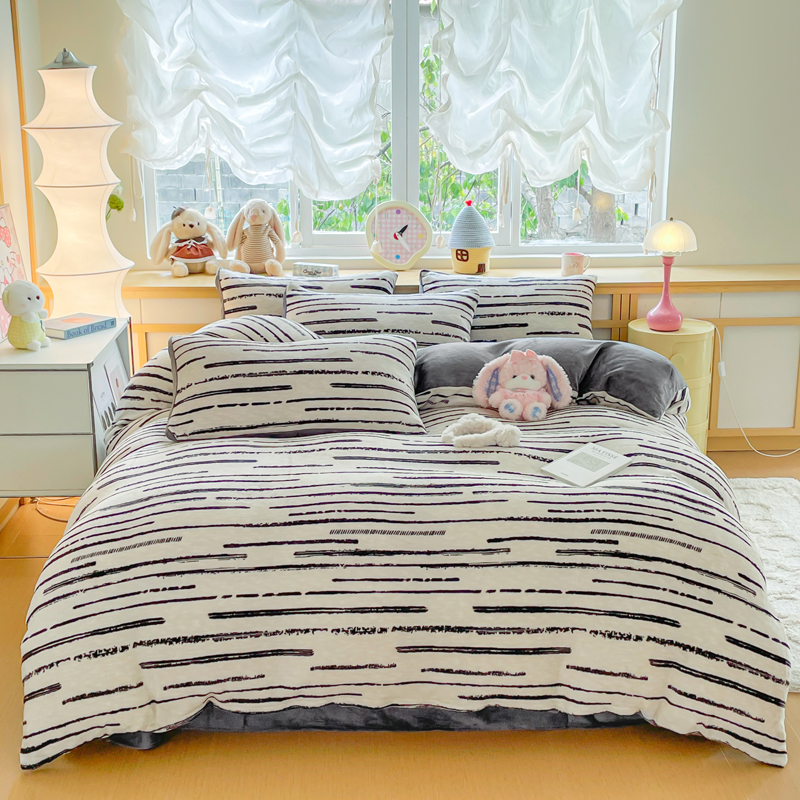 (总)典曼家纺 2025新款亲肤舒适兔毛绒四件套-系列二,斑马纹,可爱多,马格丽,魔法学院红,魔法学院蓝,晚秋,小淘气,英伦时尚