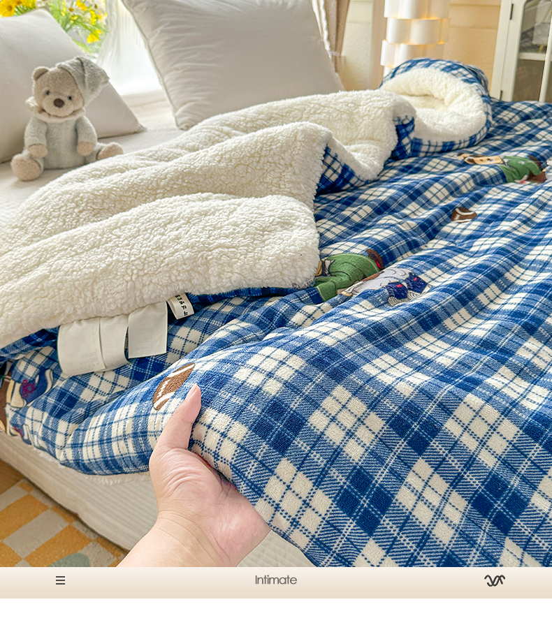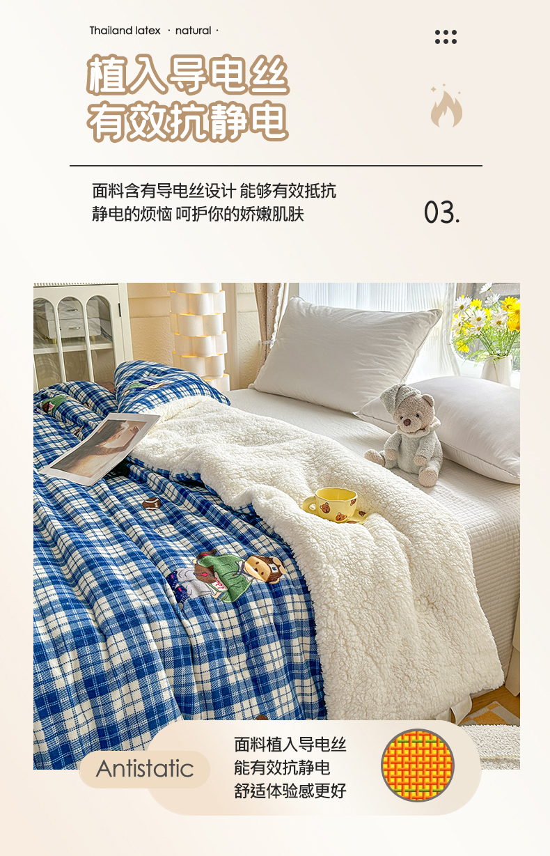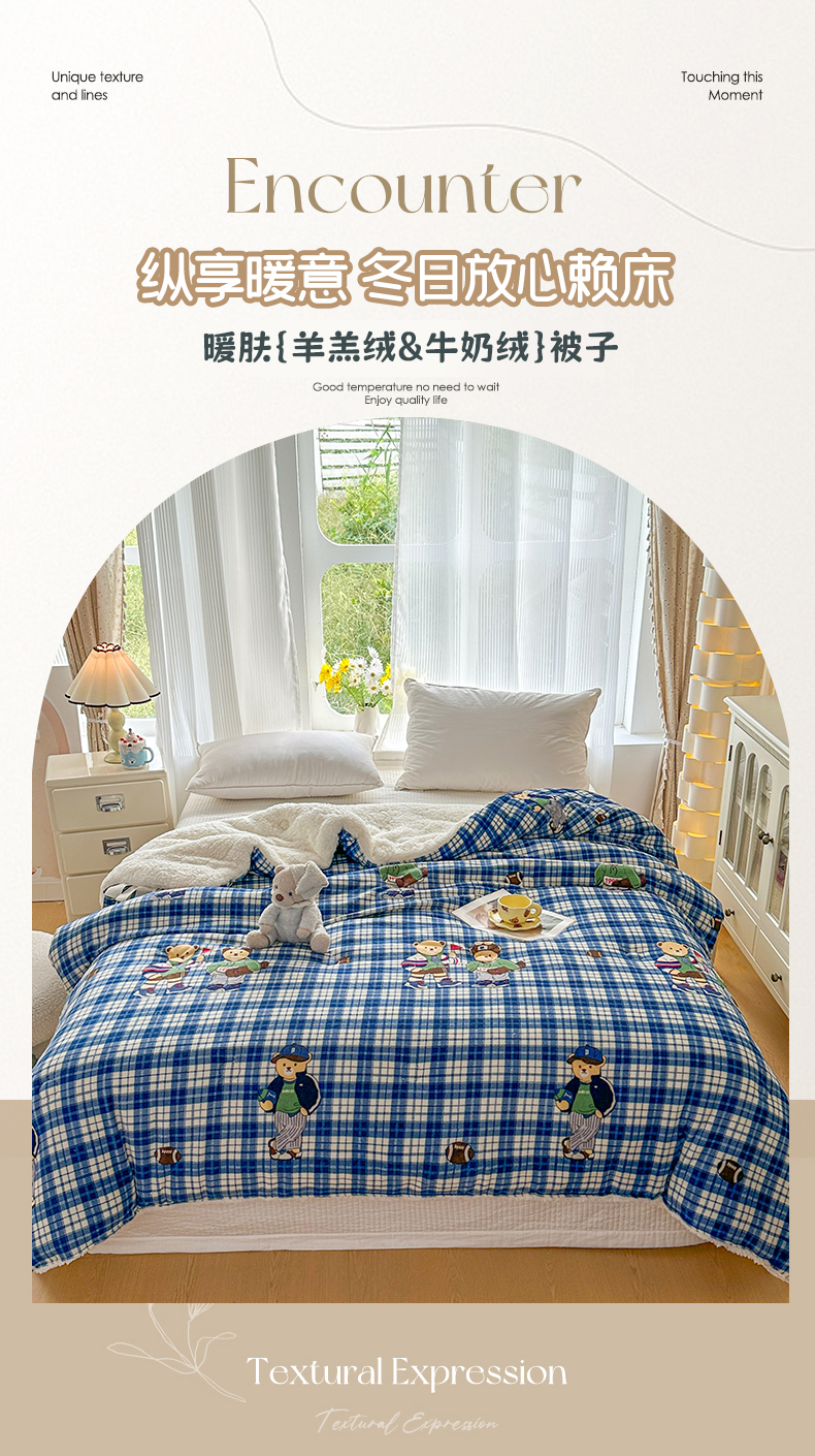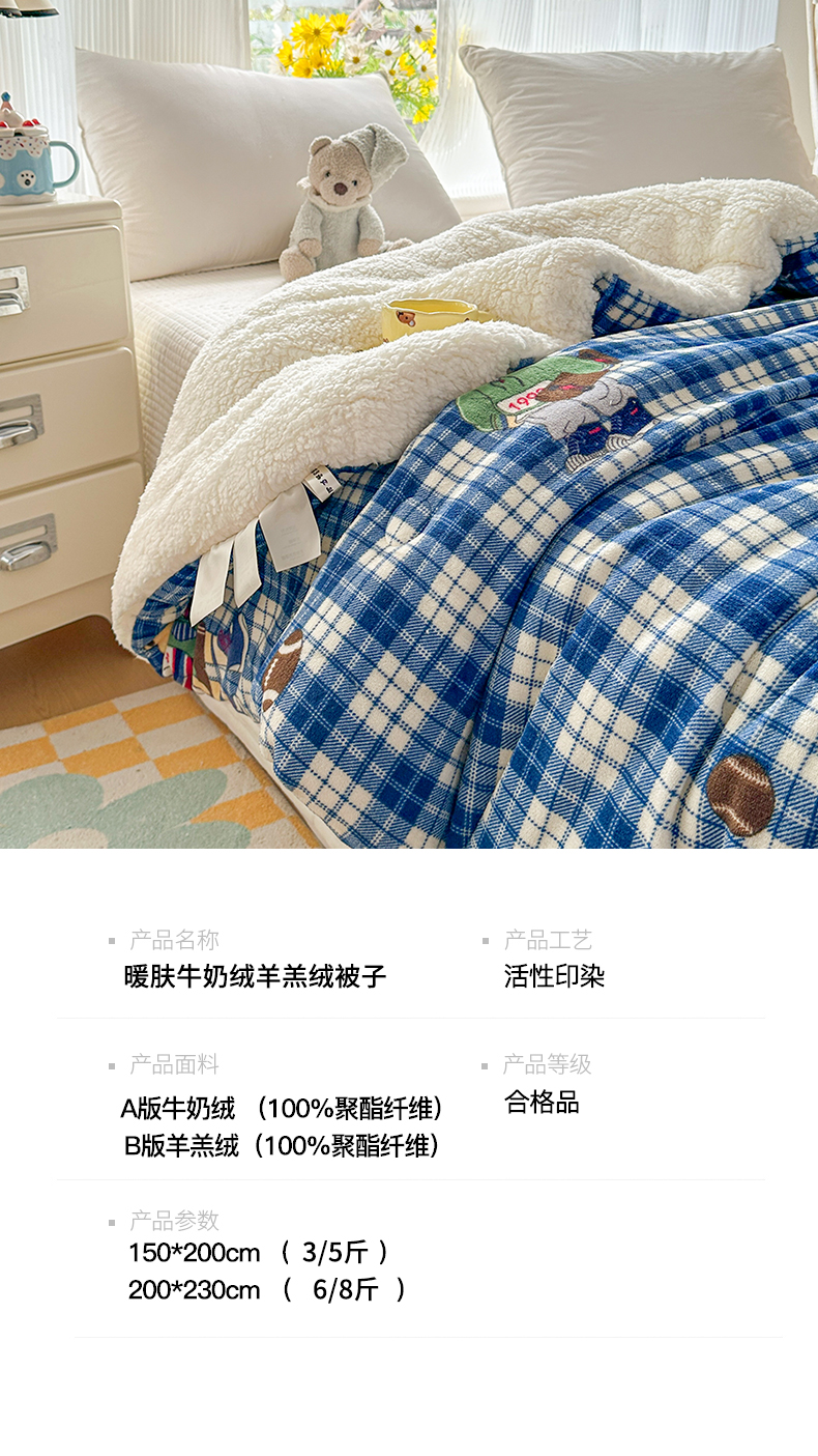 商品名称:爱彼家纺 2025新款日韩奶油风羊羔绒+牛奶绒可爱卡通被子被芯秋被冬被被子被芯 奶咖小猫