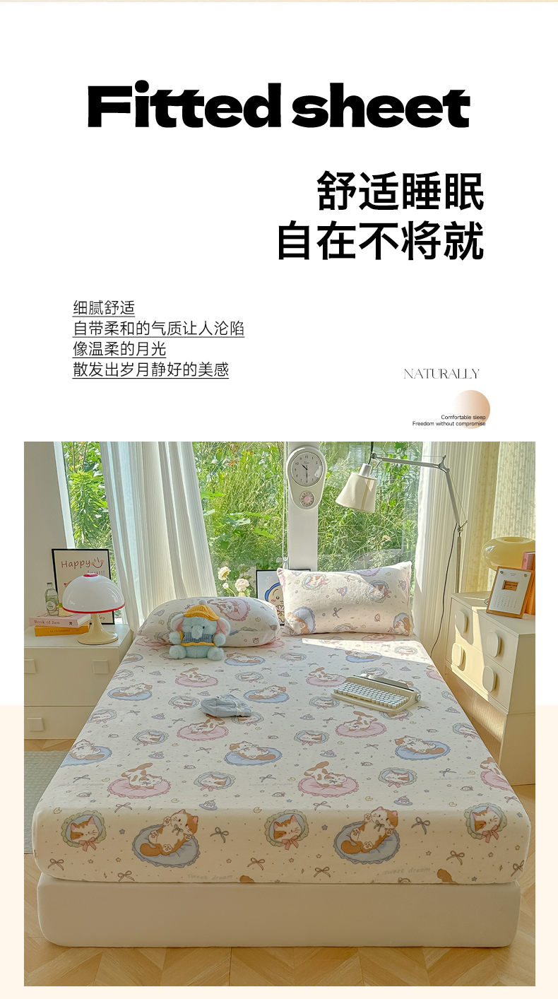 沐芷 2025 加厚高克重牛奶绒床笠单件/床笠三件套 床笠款床罩床垫保护套罩 【绒】猫咪礼物