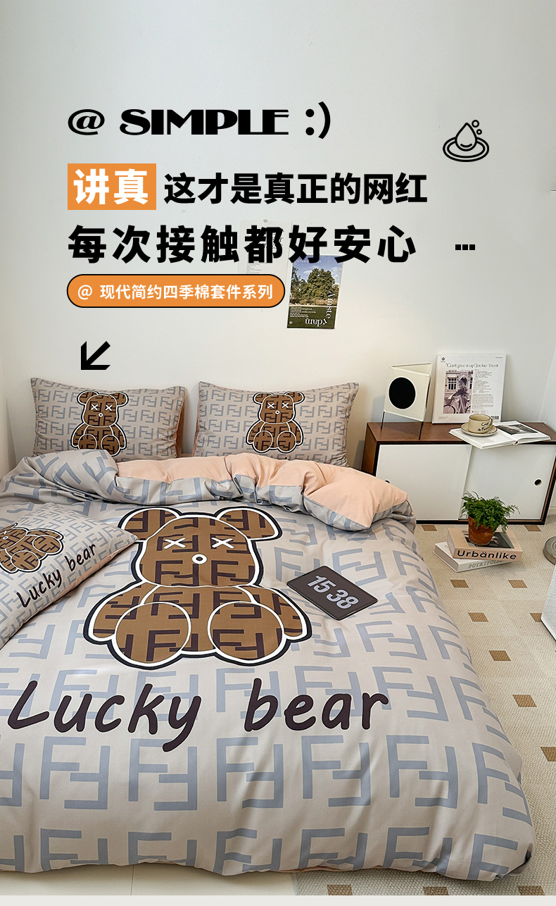 (总)色鬼布艺高端家居主号 2025新款现代简约网红款四季棉四件套,电击熊,多巴胺,黑白迪,机器熊,咔芬,流沙,萌迪,萌熊队长,七彩熊,棋盘格公仔,太阳花粉,涂鸦熊,星空,熊头白,熊仔白,熊仔桔,熊仔咖