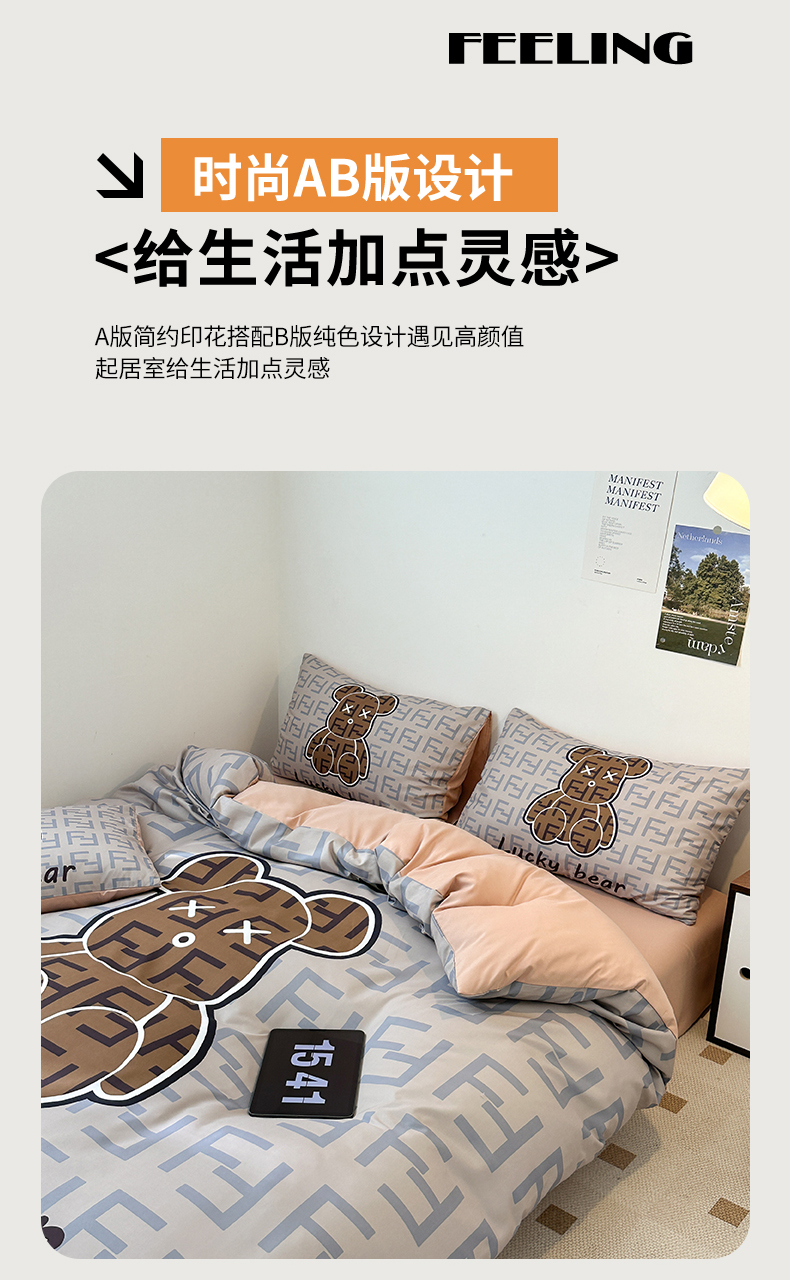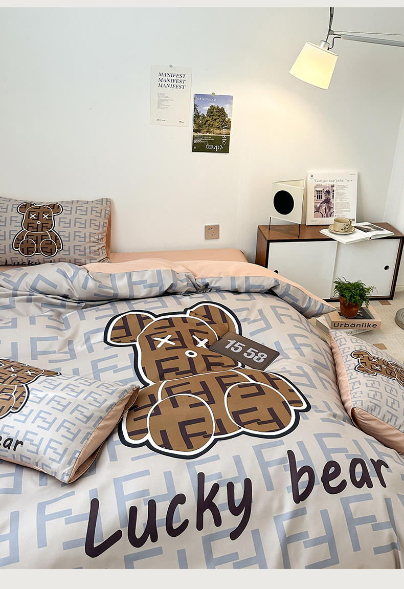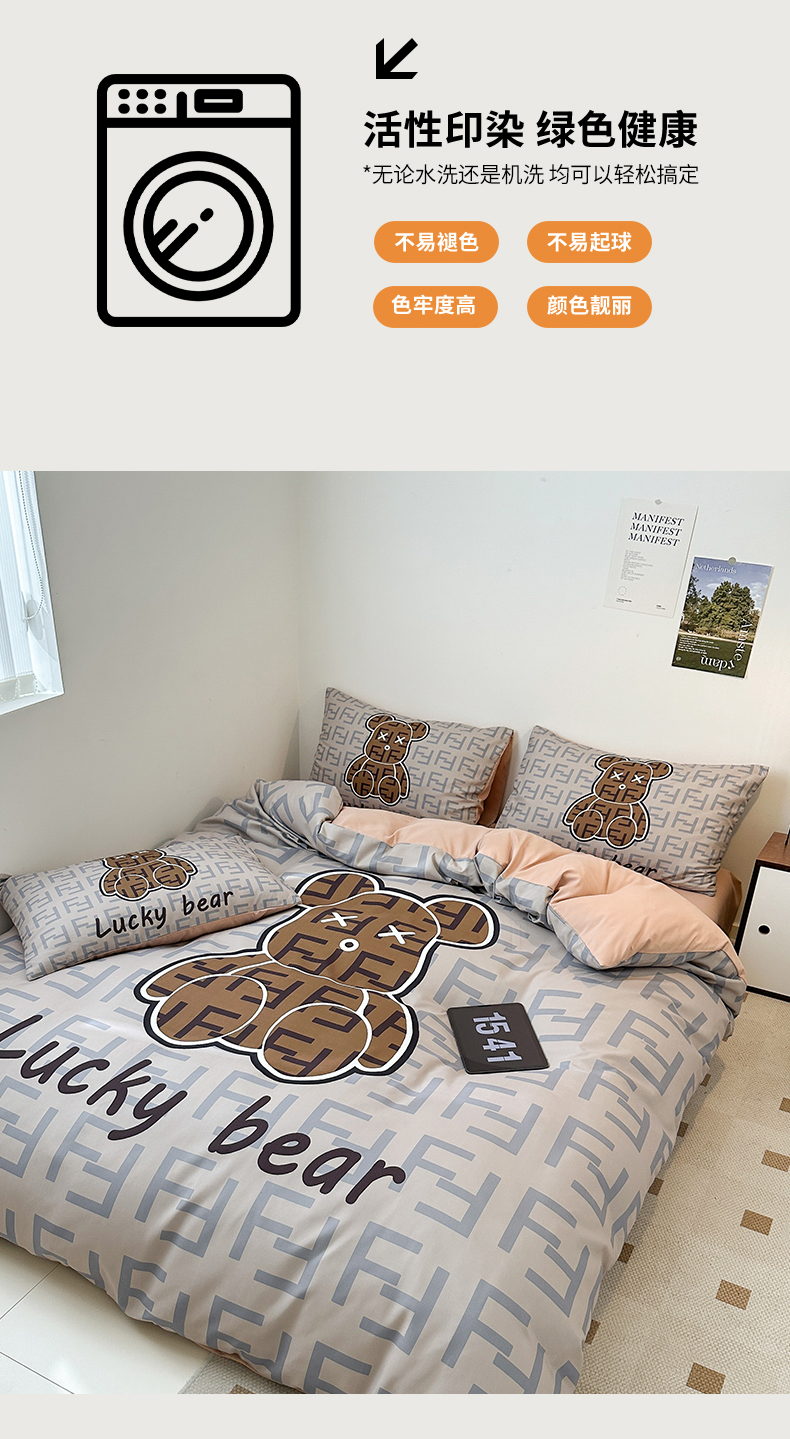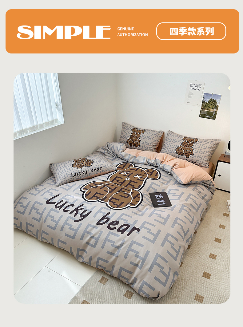 (总)色鬼布艺高端家居主号 2025秋冬新款网红款水洗棉四季款四件套,豹纹熊-粉,豹纹熊-绿,彩虹兔,格子熊,公仔蓝,梦幻粉,梦幻蓝,棋盘格公仔,太阳花粉,天使熊-粉,天使熊-咖,小熊头,熊头白,熊头橙,熊头咖,熊仔白