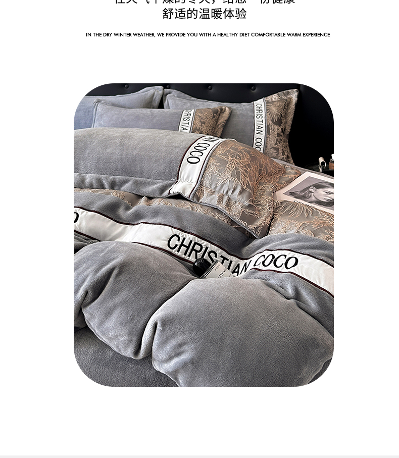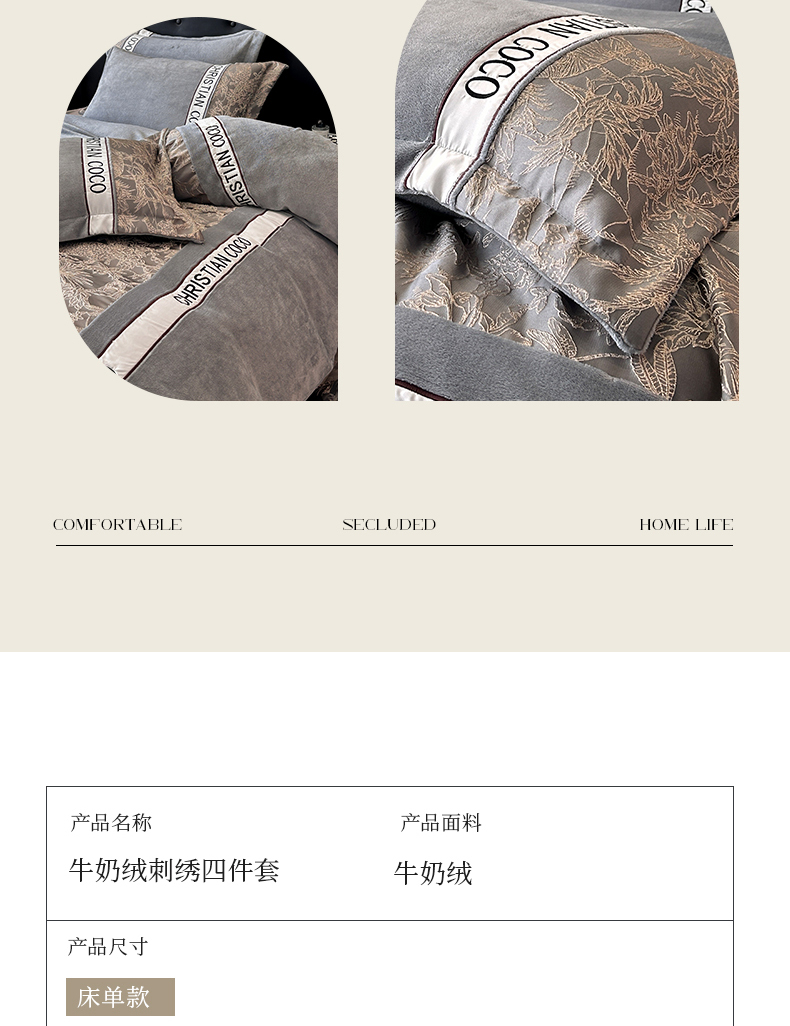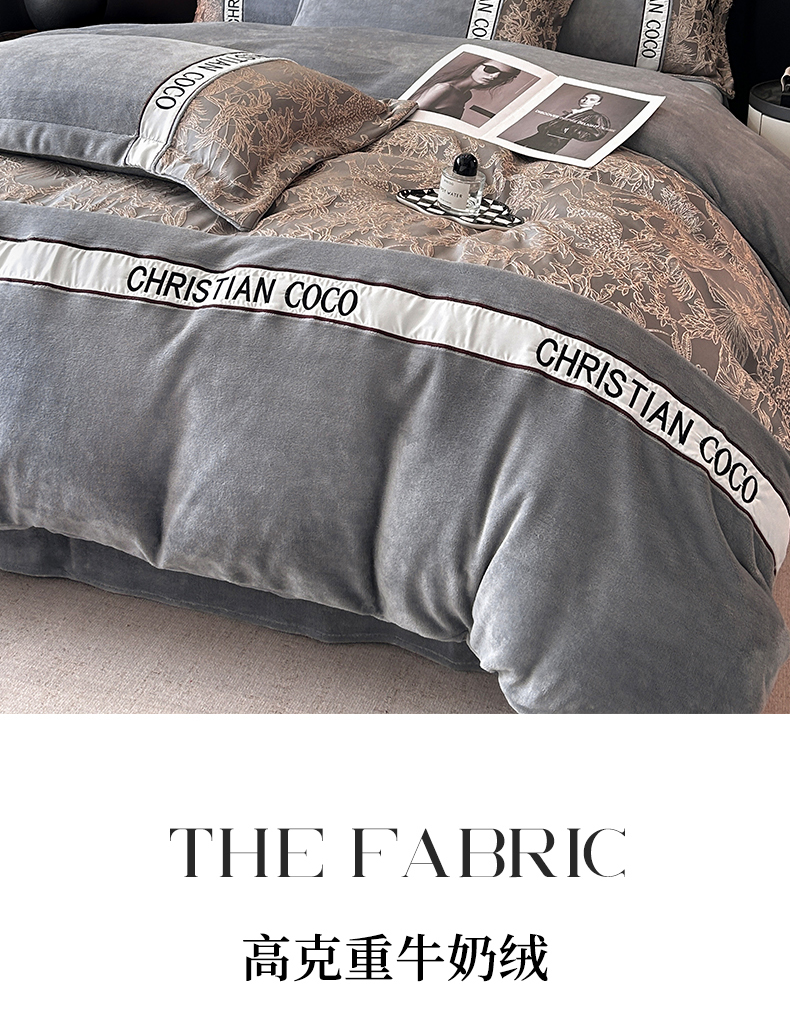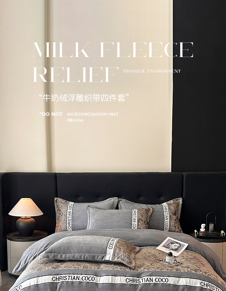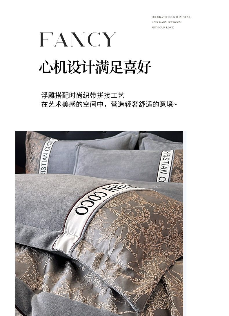 商品名称:苏源家居 2025新款加厚牛奶绒拼浮雕冬款四件套-幽境 幽境-浅灰