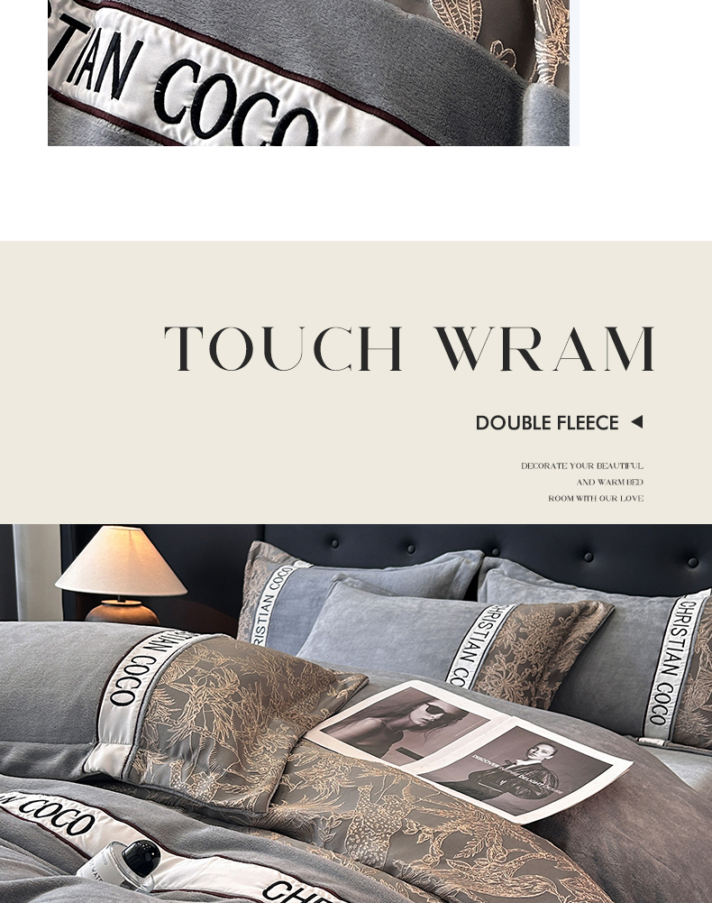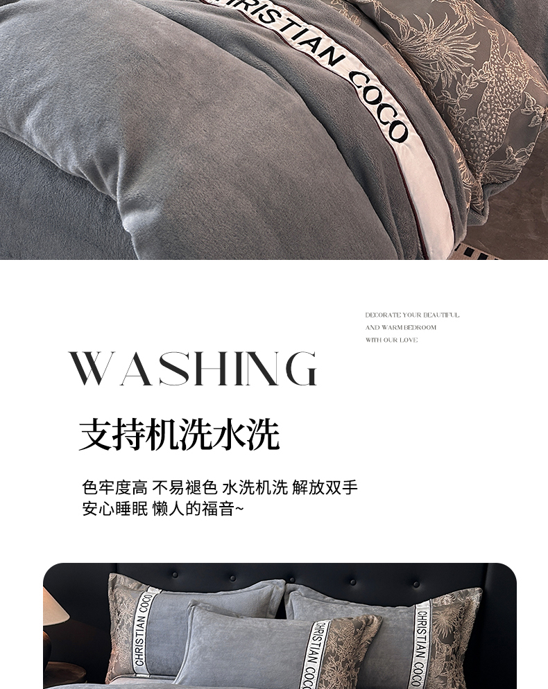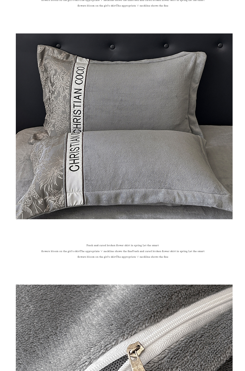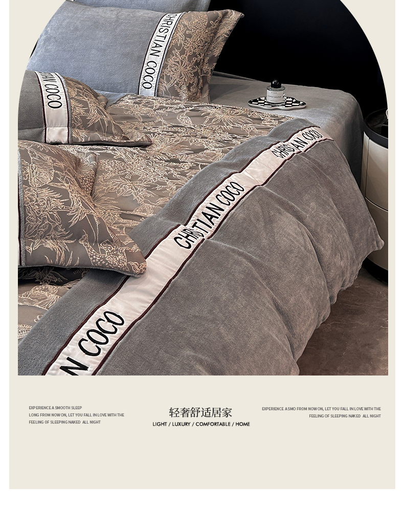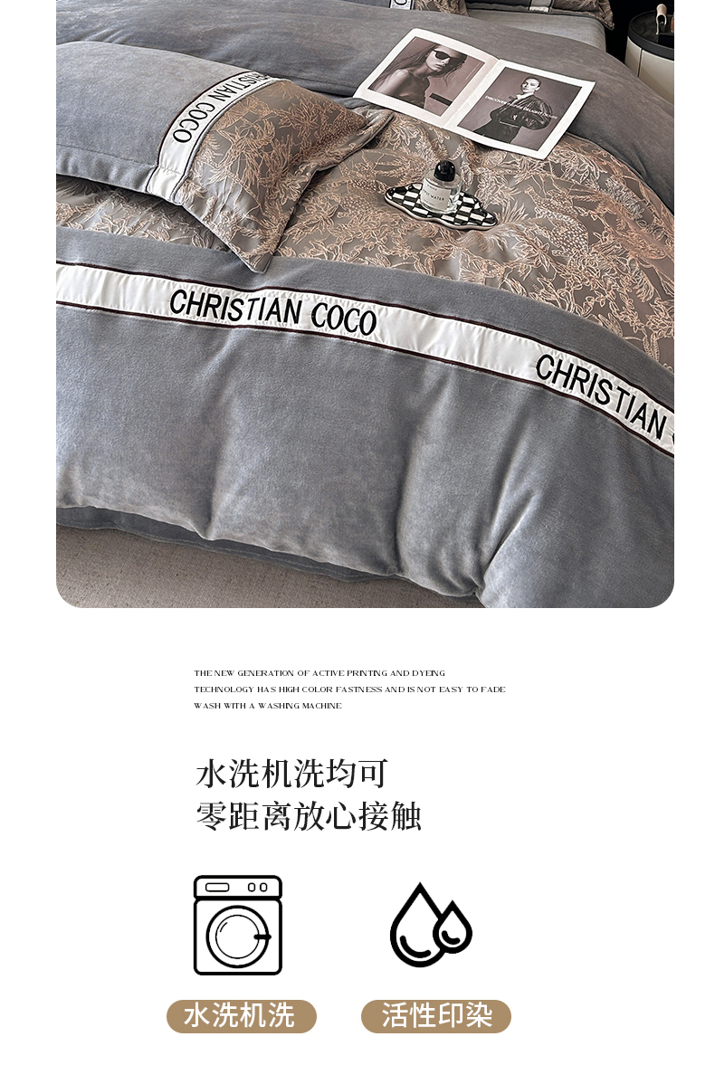 商品名称:苏源家居 2025新款加厚牛奶绒拼浮雕冬款四件套-幽境 幽境-浅灰