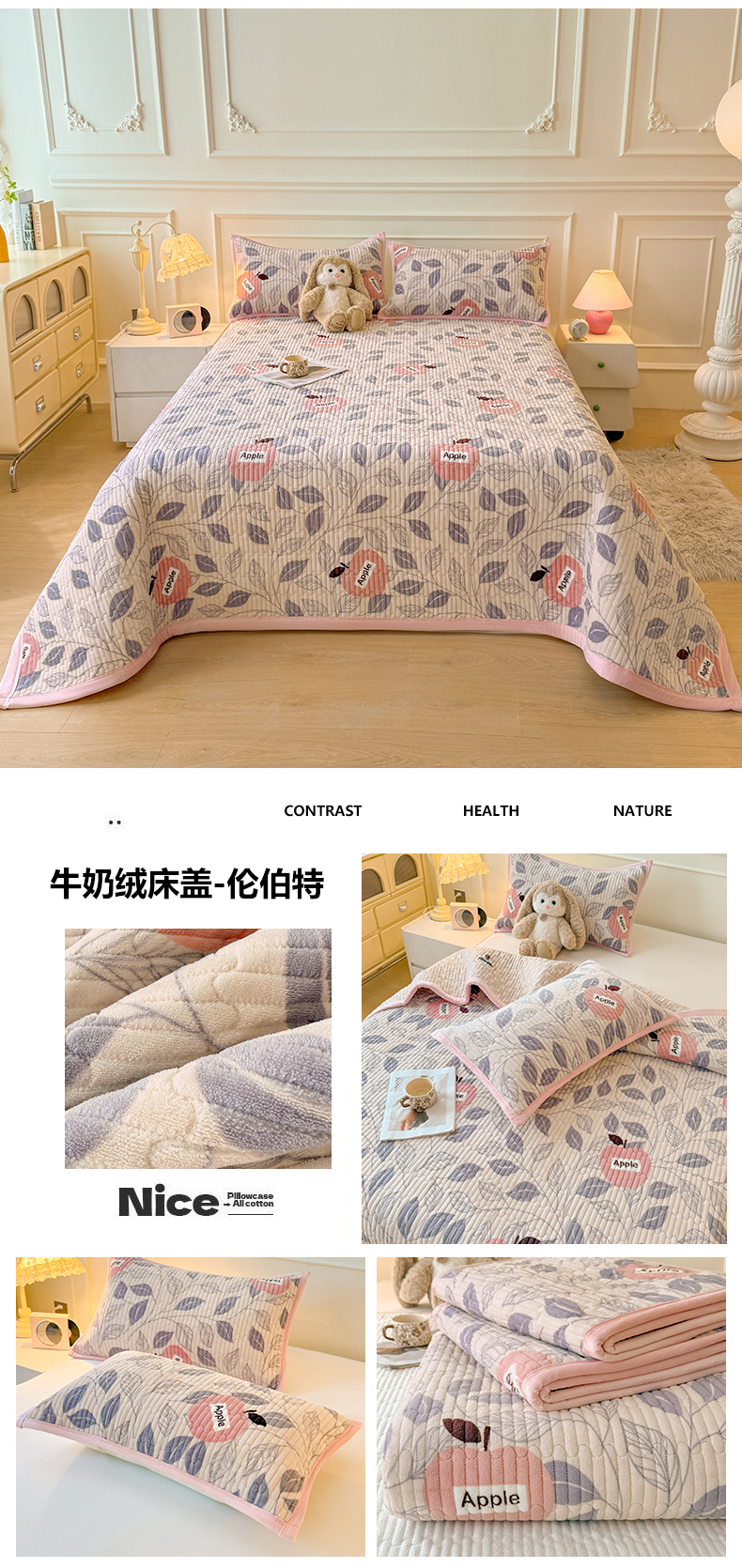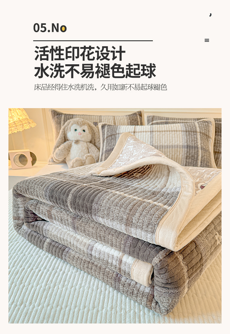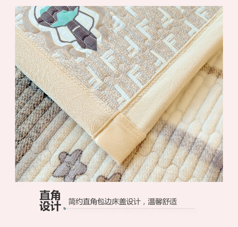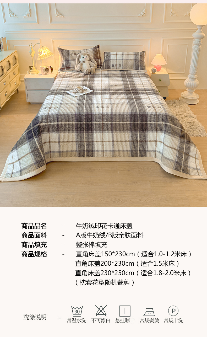 商品名称:慕木家纺 2025新款高克重牛奶绒小清新印花卡通夹棉单床盖床盖单件(提供买家秀) 牛奶绒床盖-拉菲格