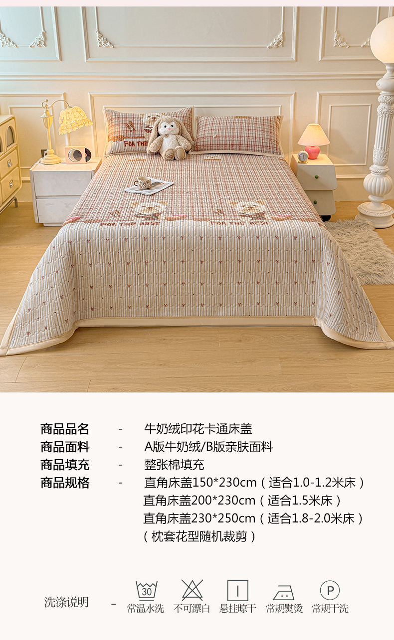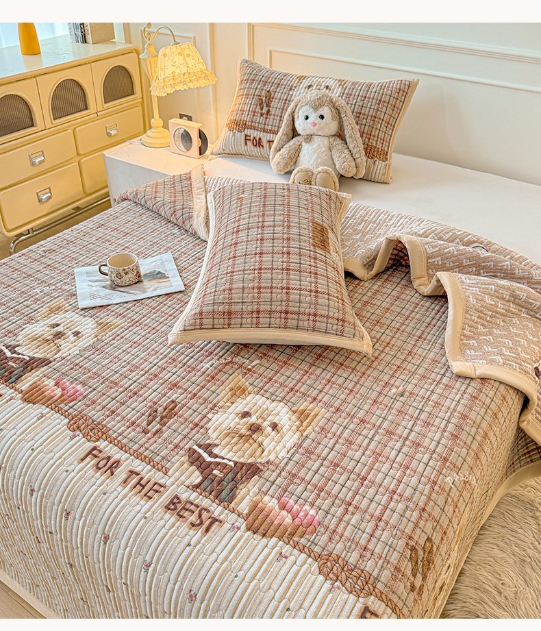 慕木家纺 2025新款高克重牛奶绒小清新印花卡通夹棉单床盖床盖单件(提供买家秀) 牛奶绒床盖-吉米狗