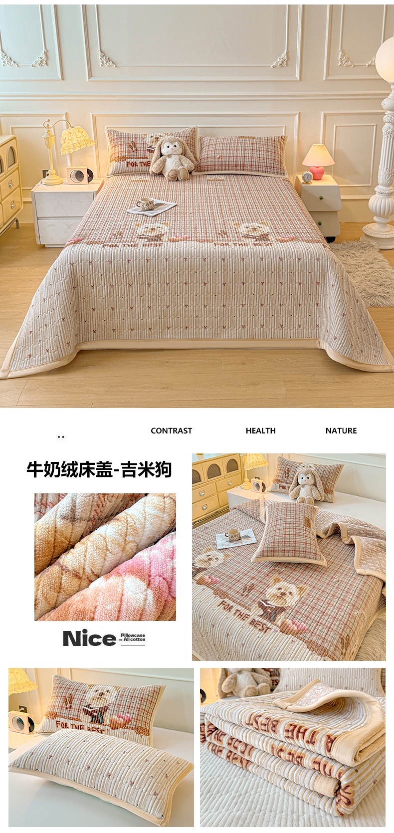 商品名称:慕木家纺 2025新款高克重牛奶绒小清新印花卡通夹棉单床盖床盖单件(提供买家秀) 牛奶绒床盖-吉米狗