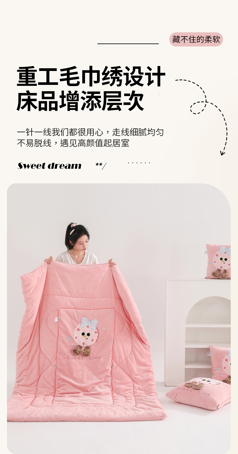 (总)翰轩家居 2023新款全棉印花小清新豆豆绒抱枕被,草莓粉,草莓蓝,春晓蓝,花语黄,静秋,琉璃,萌萌兔,幽兰,油画格韵,布拉格,粉色小熊,花园漫步,浪漫猫,心想事橙,辛巴达,遇见