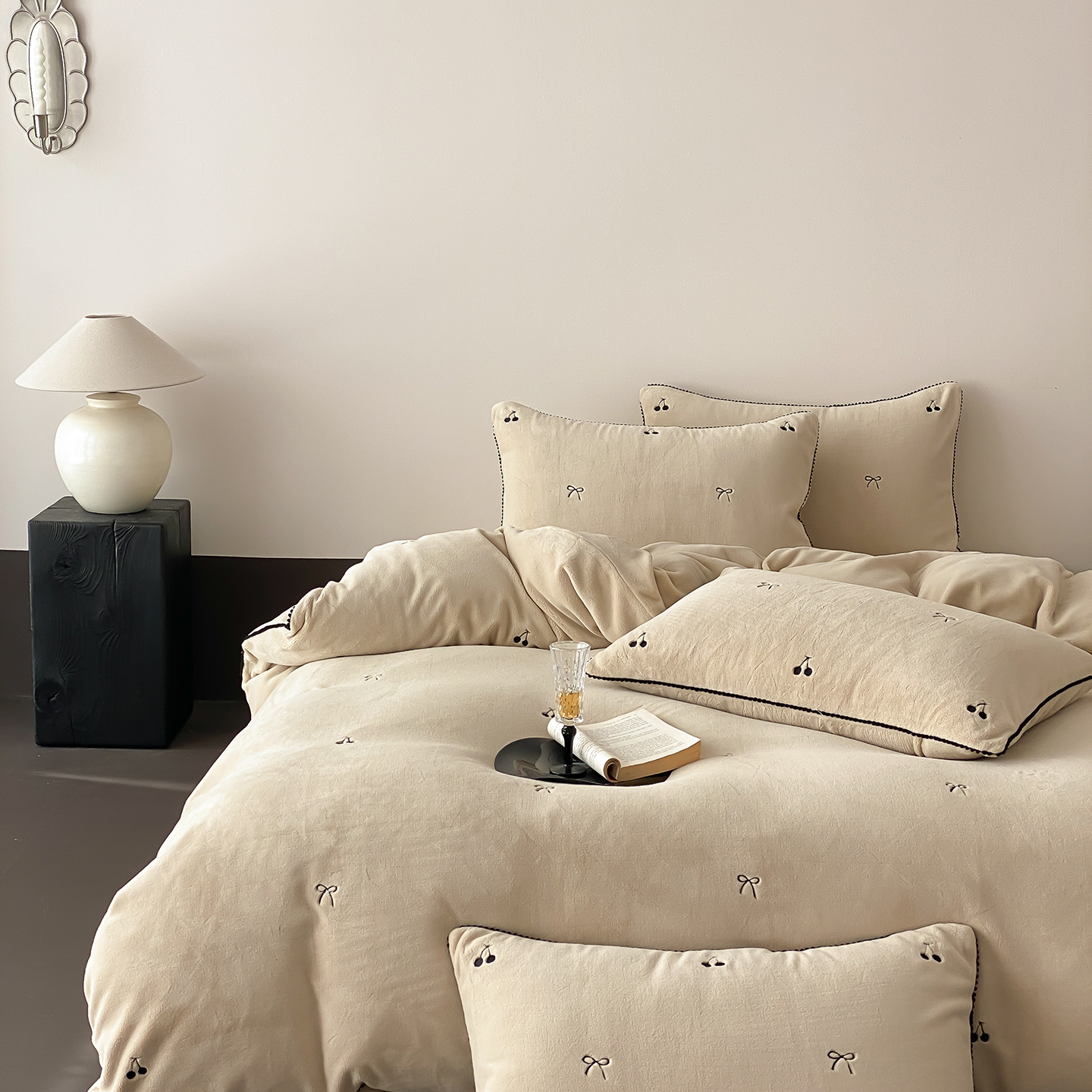 时亿家居 2025新款280g牛奶绒四件套-黑樱梦境 黑樱梦境-淡粉