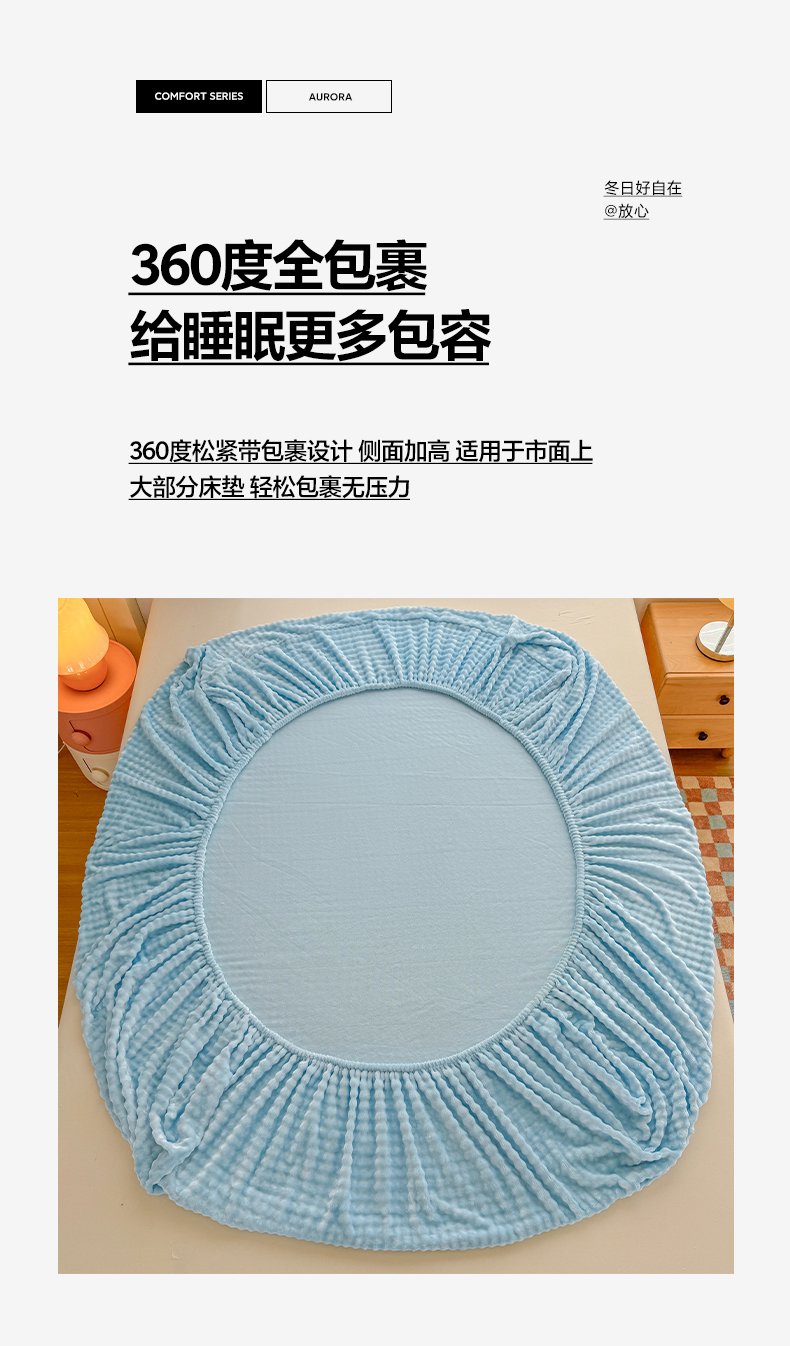 (总)十一家居 2025年新款A类高克重仿兔毛泡泡绒单床笠单品床笠床笠单件,组合图仅供参考不可下单,典雅蓝,浅咖驼,青草绿,清雅紫,樱花粉