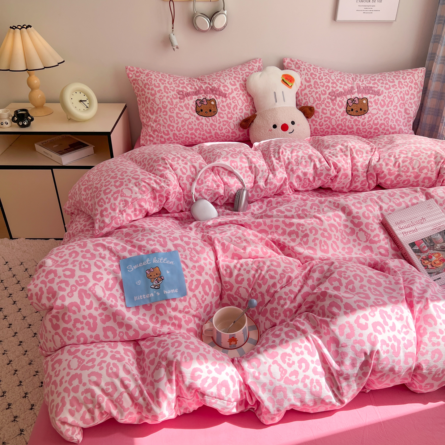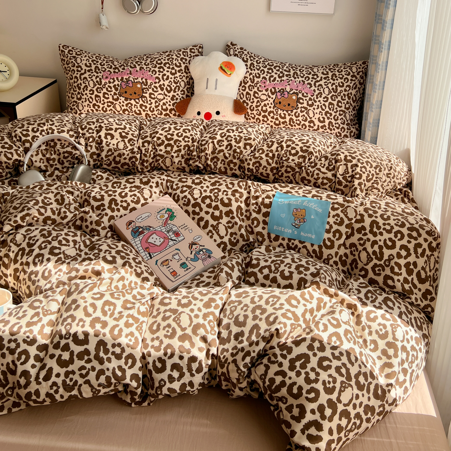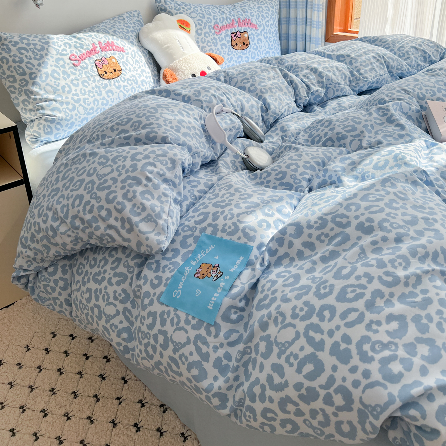 当前位置: 91家纺网 > 商品网购 > 床品套件 > 四件套 > 其它四件套 > 童颜 2025新款超柔水洗双层纱豹纹贴布绣印花四件套-场景二 豹纹猫咪浅蓝