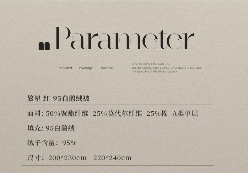 200*230填充800克95白鹅绒 春秋被