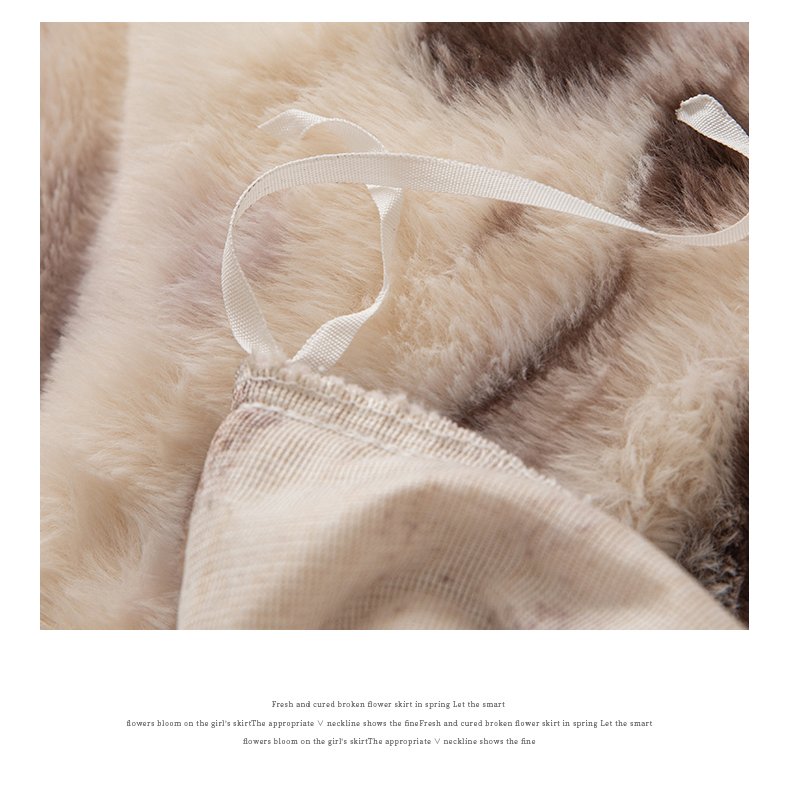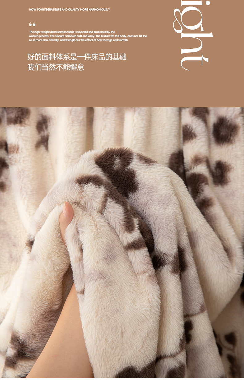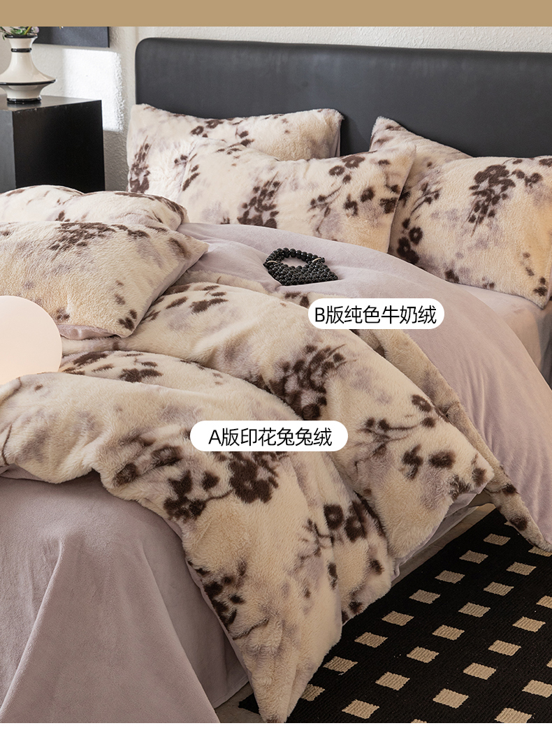简宜家居(朝初家纺) 2025新款印花兔兔绒+纯色牛奶绒双拼四件套 米绒花絮