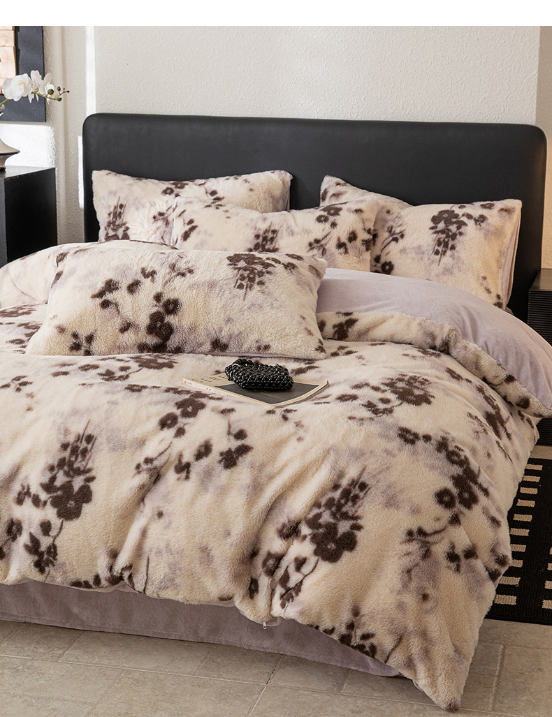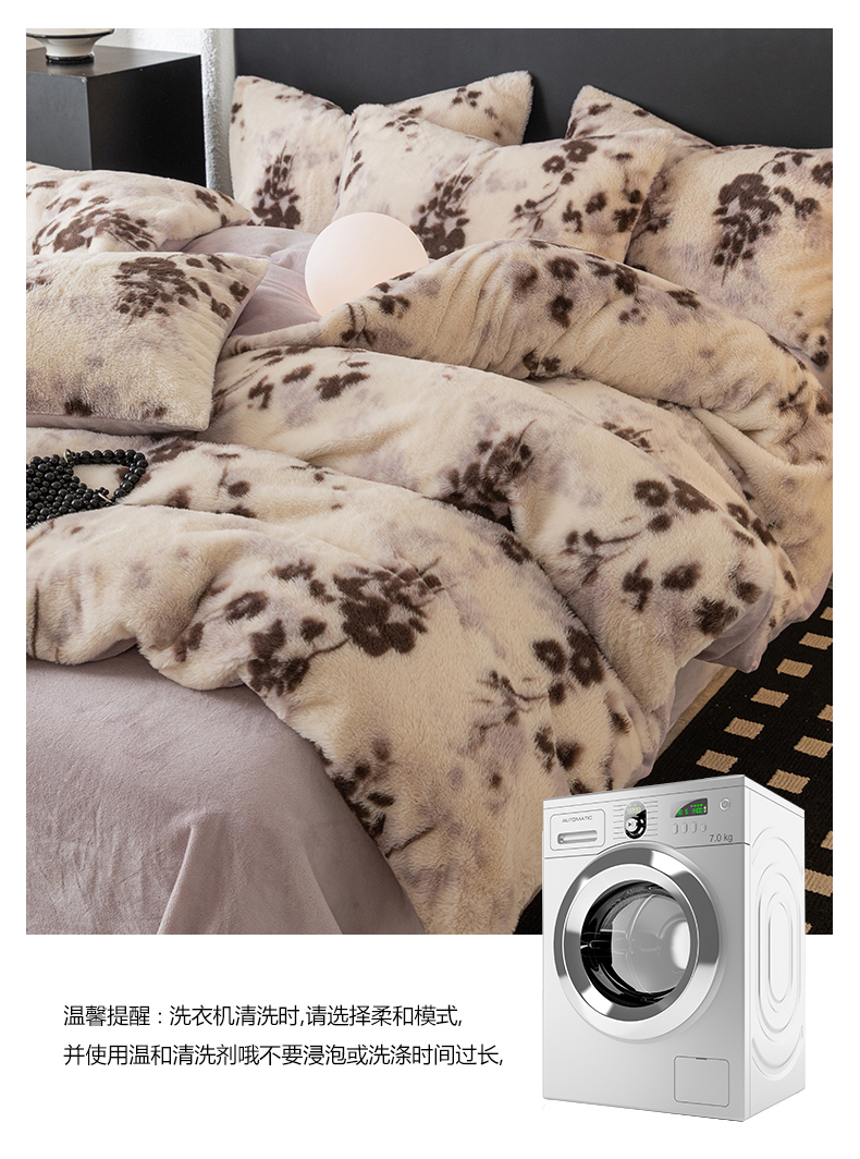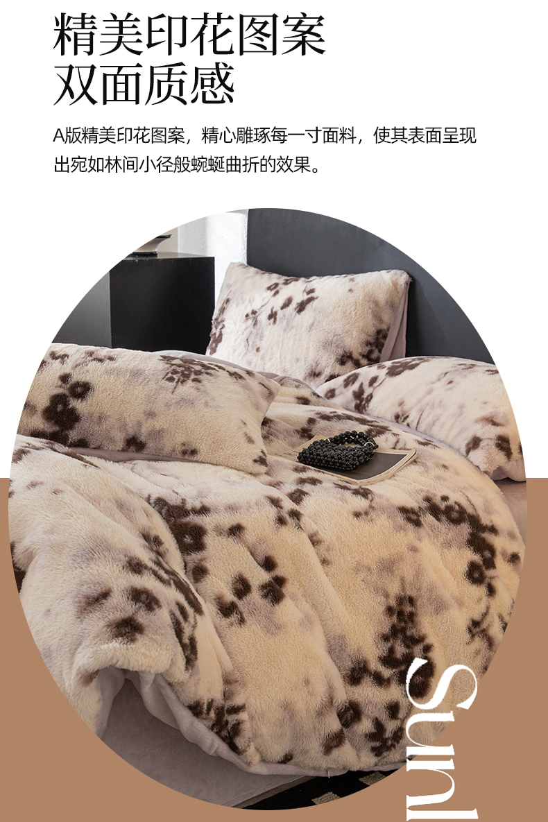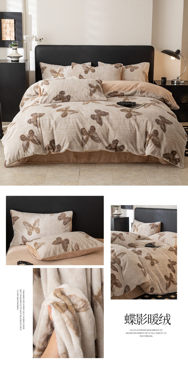 (总)简宜家居(朝初家纺) 2025新款印花兔兔绒+纯色牛奶绒双拼四件套,蝶影暖绒,米绒花絮,墨绒花-奶白,秋枝果绿,秋枝焦糖,一支秀-咖