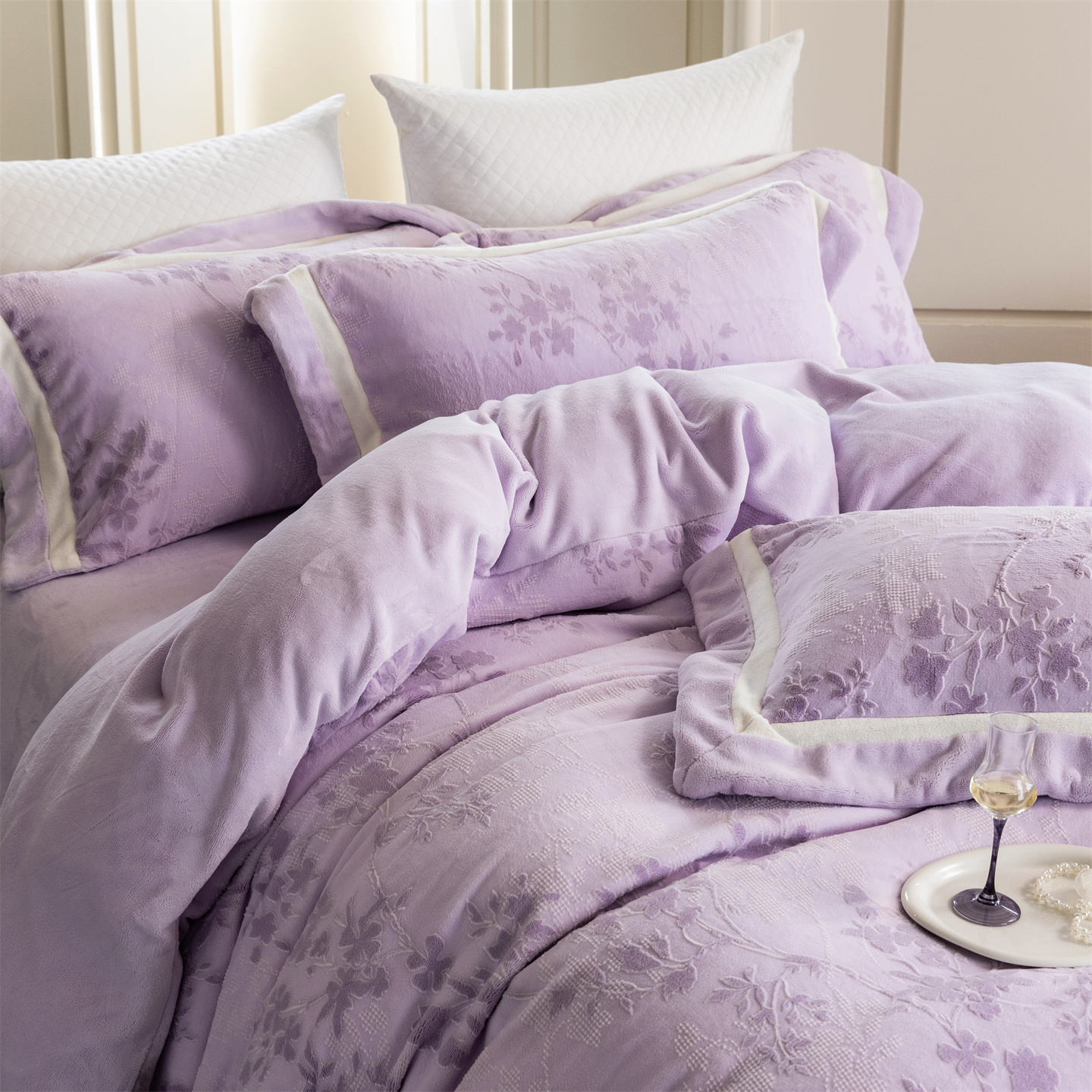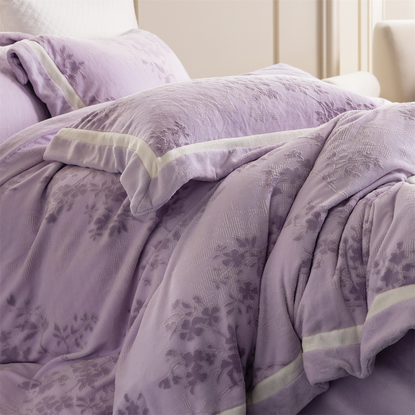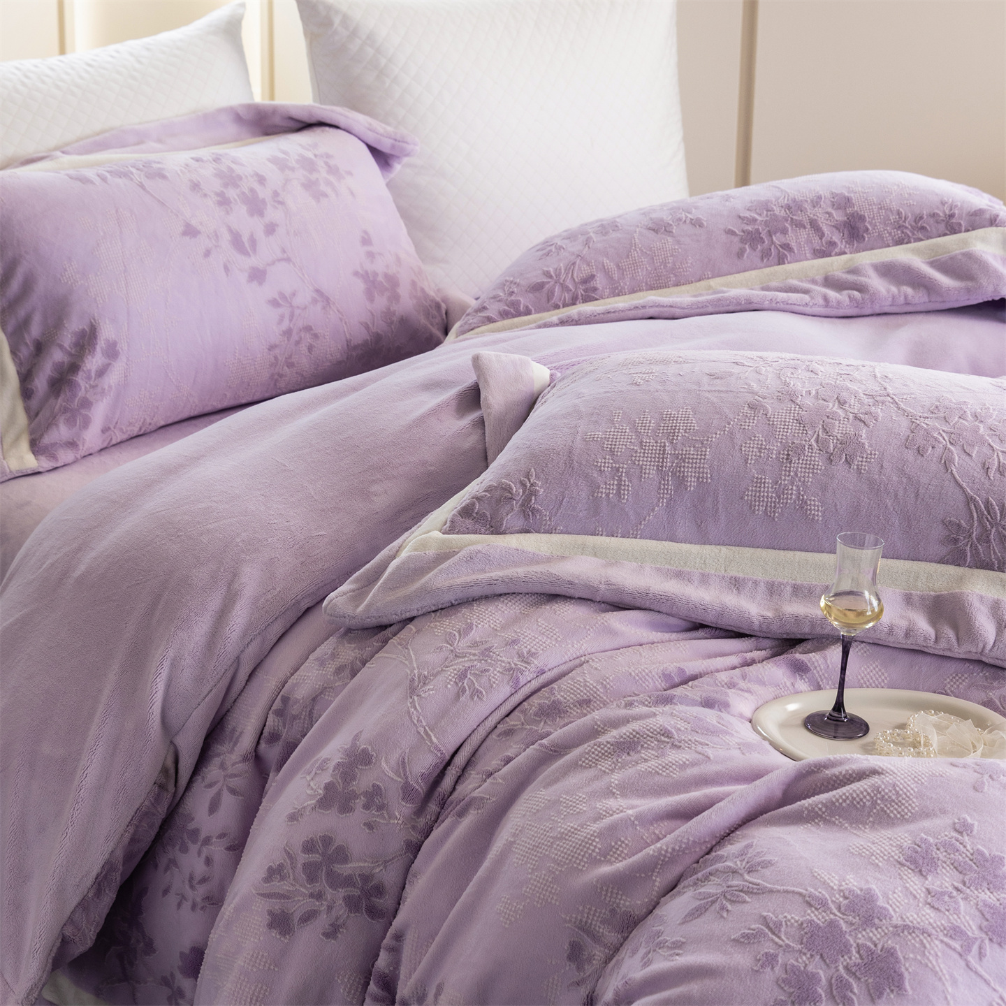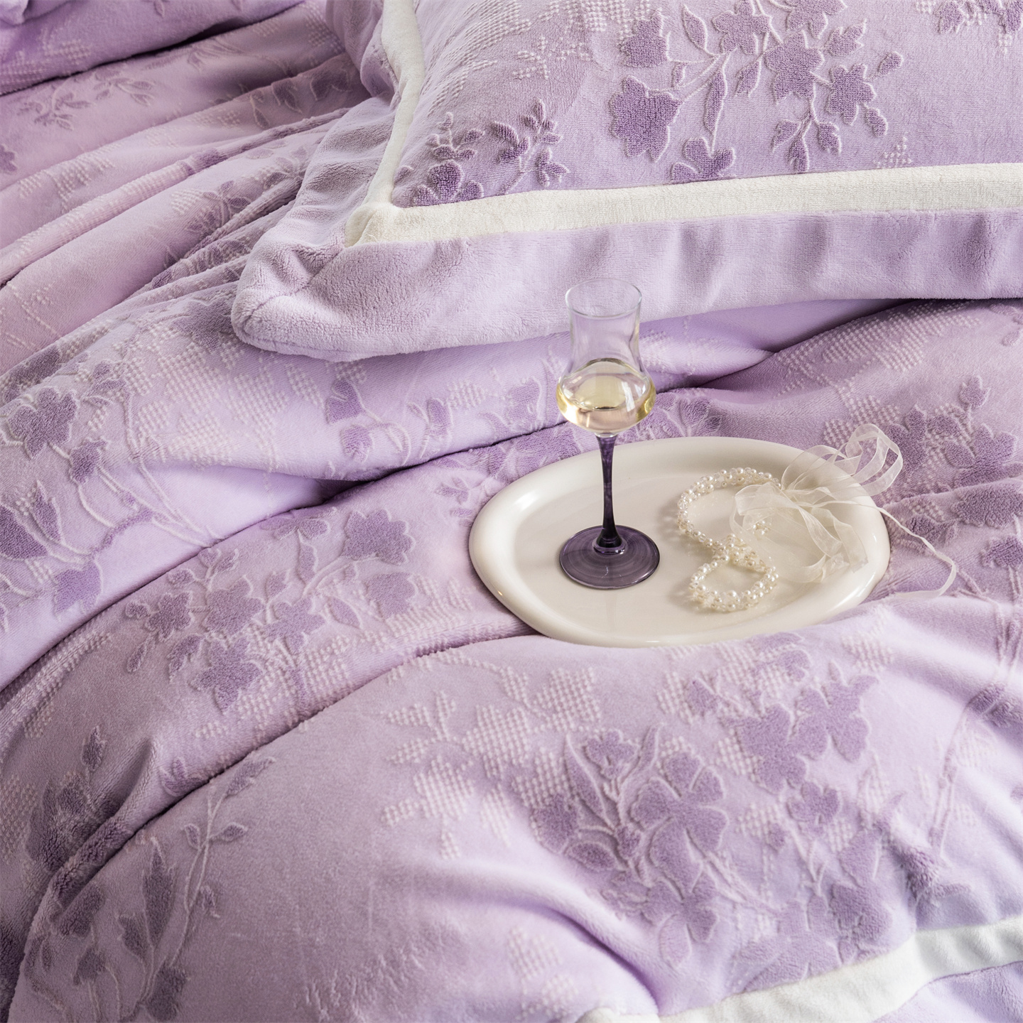 商品名称:馨蕊 2025新款秋冬轻奢煦暖绒雕花绒系列四件套-绒澜韵 【券后控价318/338】 绒澜韵-婉若紫