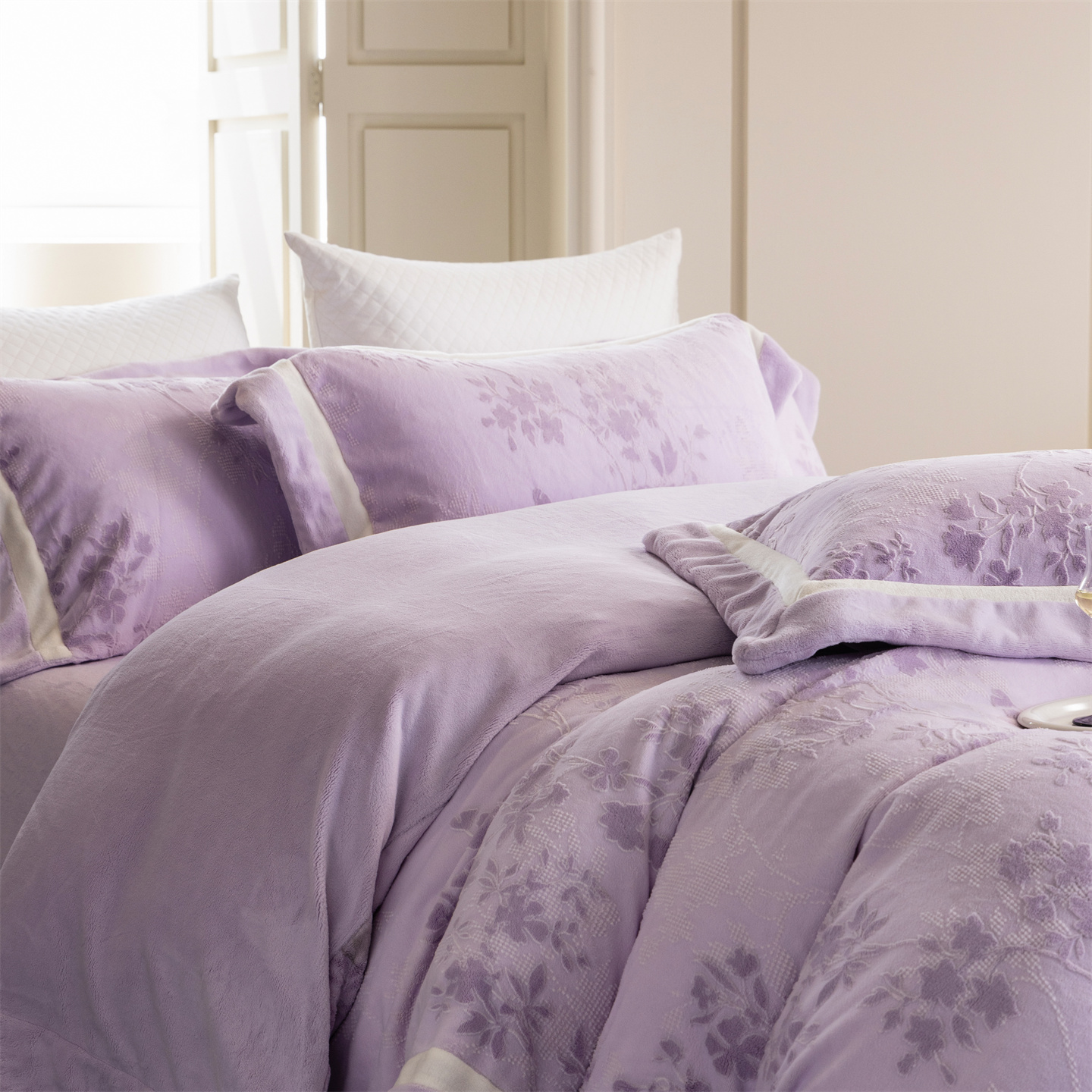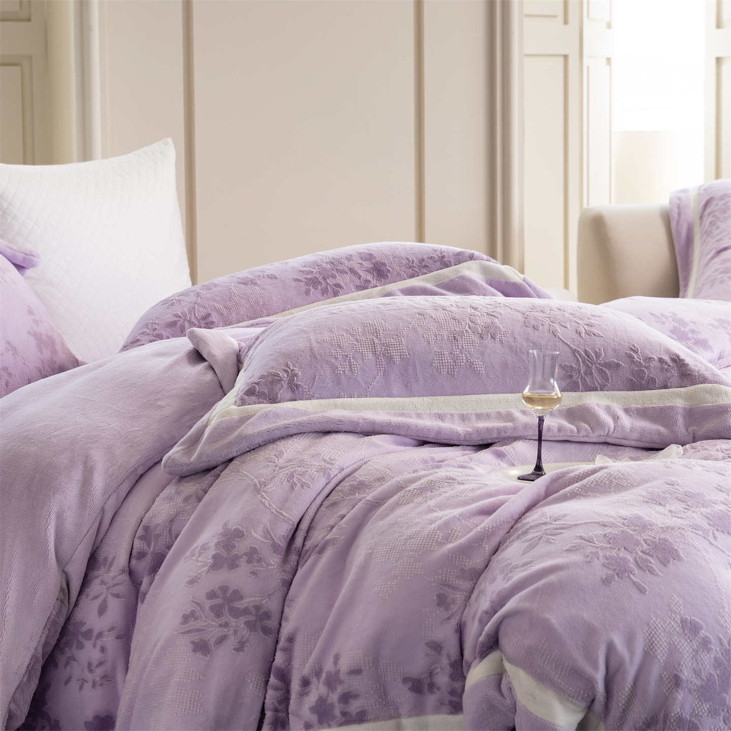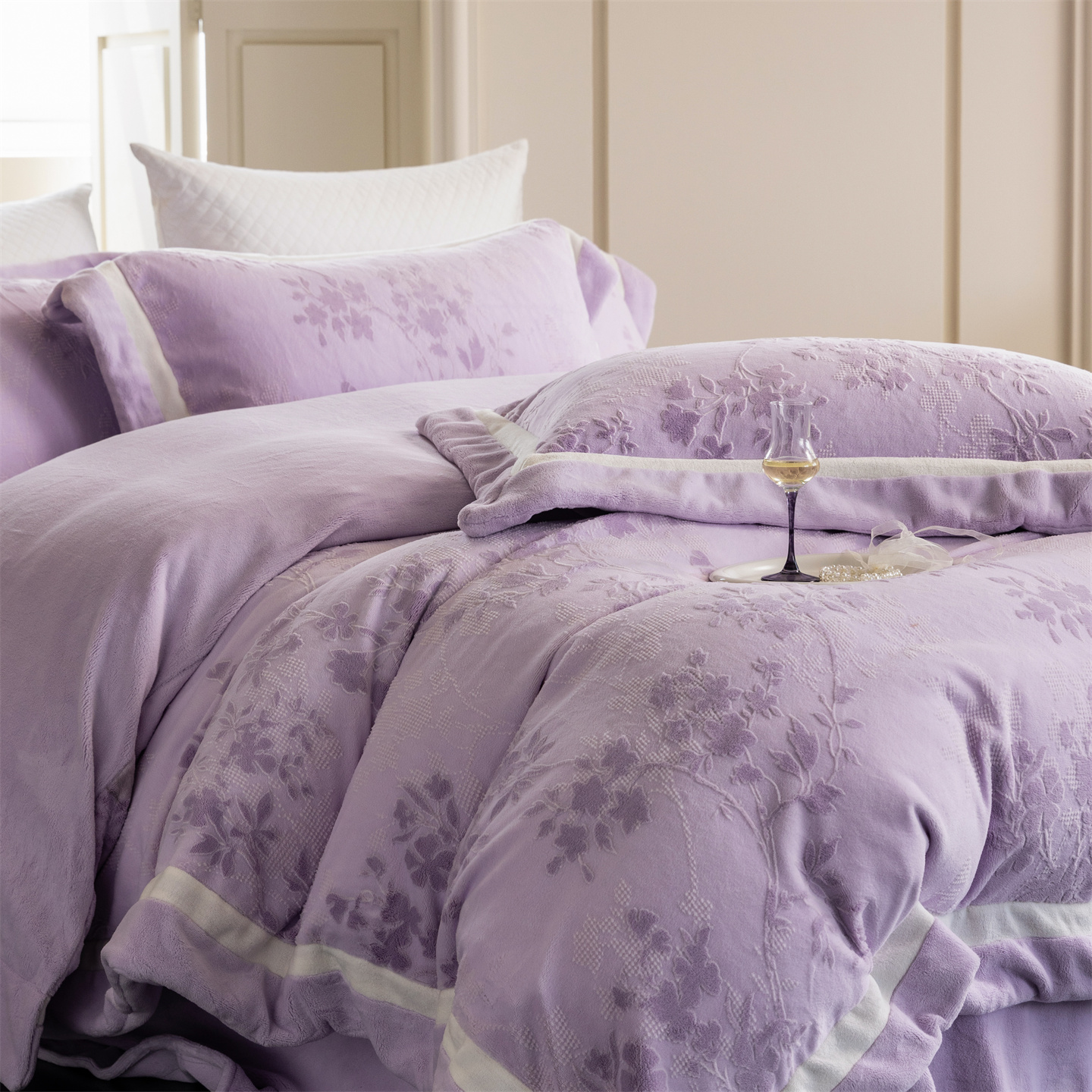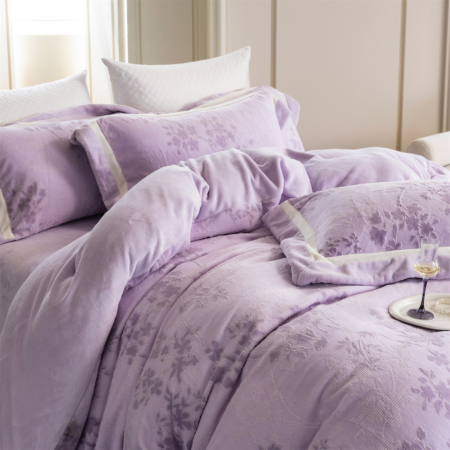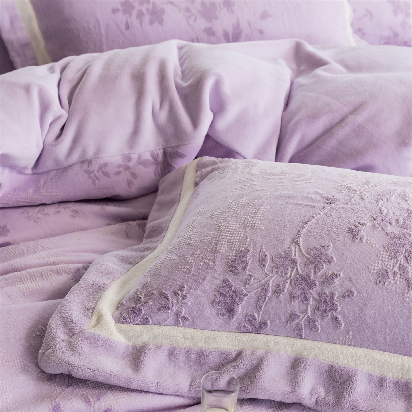 商品名称:馨蕊 2025新款秋冬轻奢煦暖绒雕花绒系列四件套-绒澜韵 【券后控价318/338】 绒澜韵-婉若紫