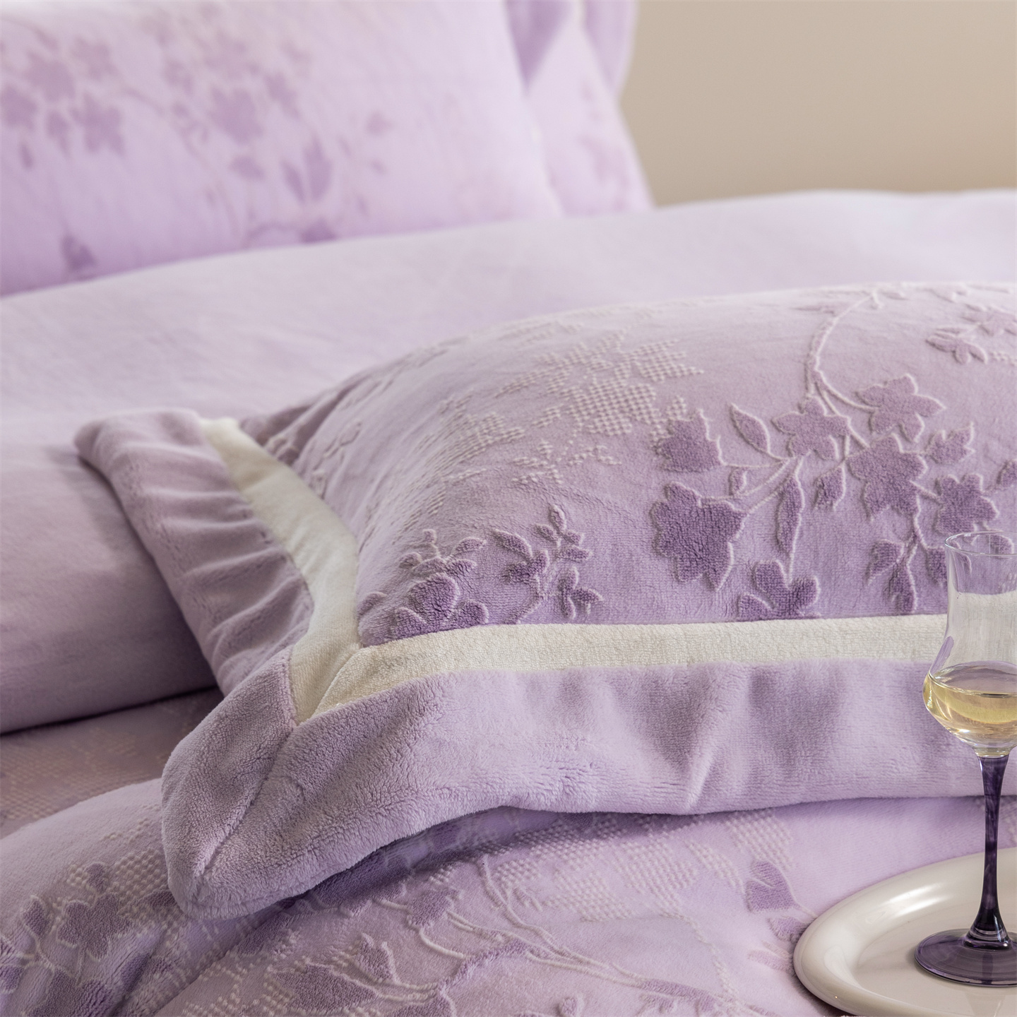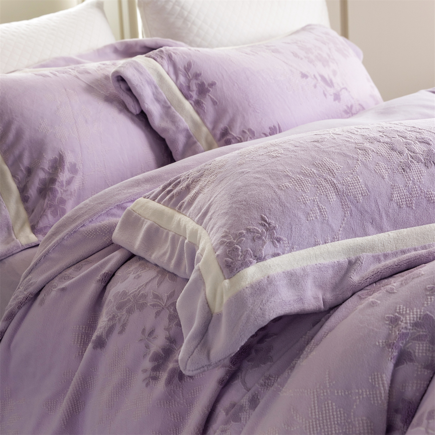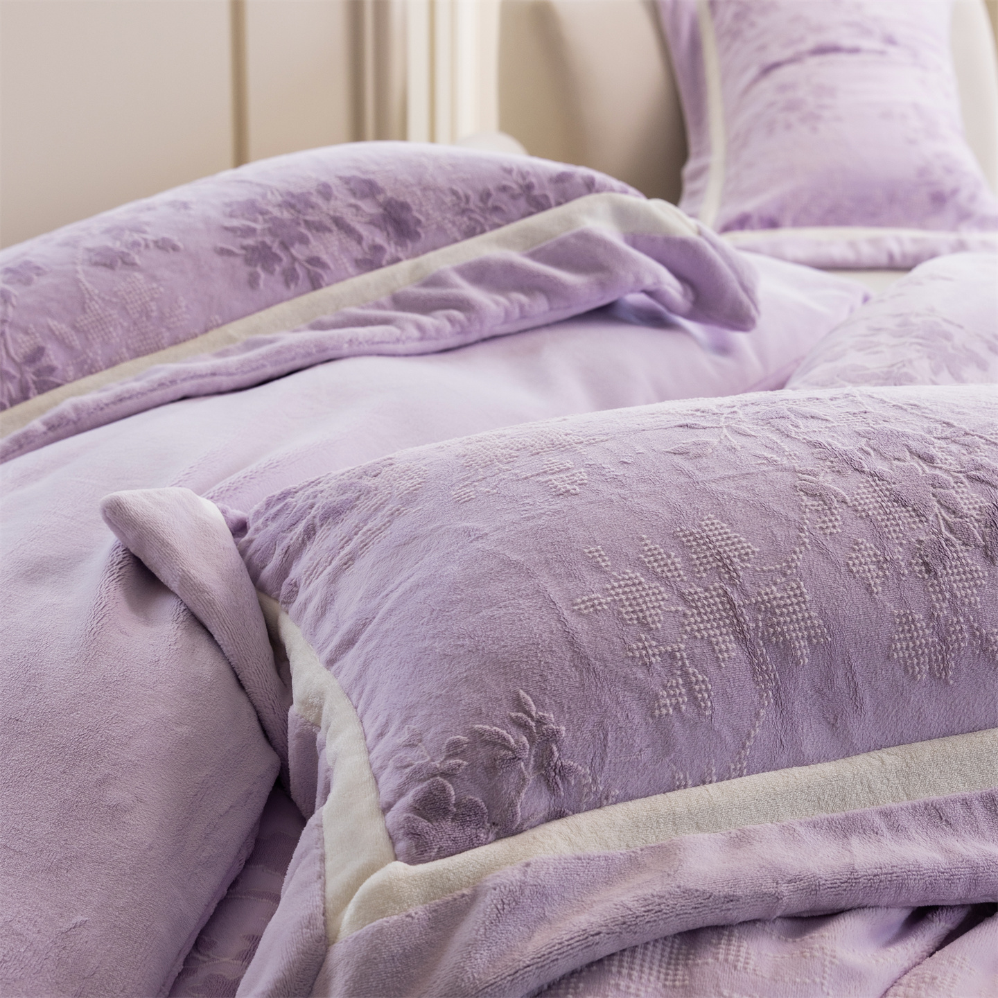 (总)馨蕊家居 2025新款意大利进口高精密刺绣拼角工艺秋冬法式高奢雪貂绒系列-绒雪芙 会员-10【券后控价358/378】,绒雪芙-奶咖,绒雪芙-蔷薇粉,绒雪芙-婉若紫,绒雪芙-月光白