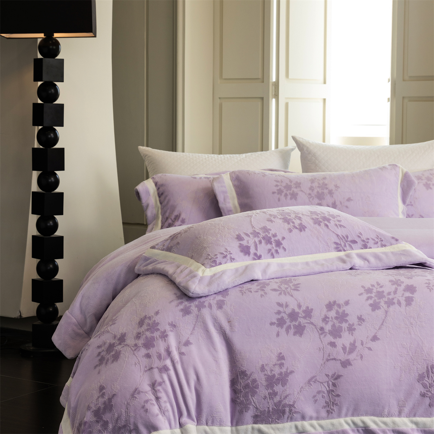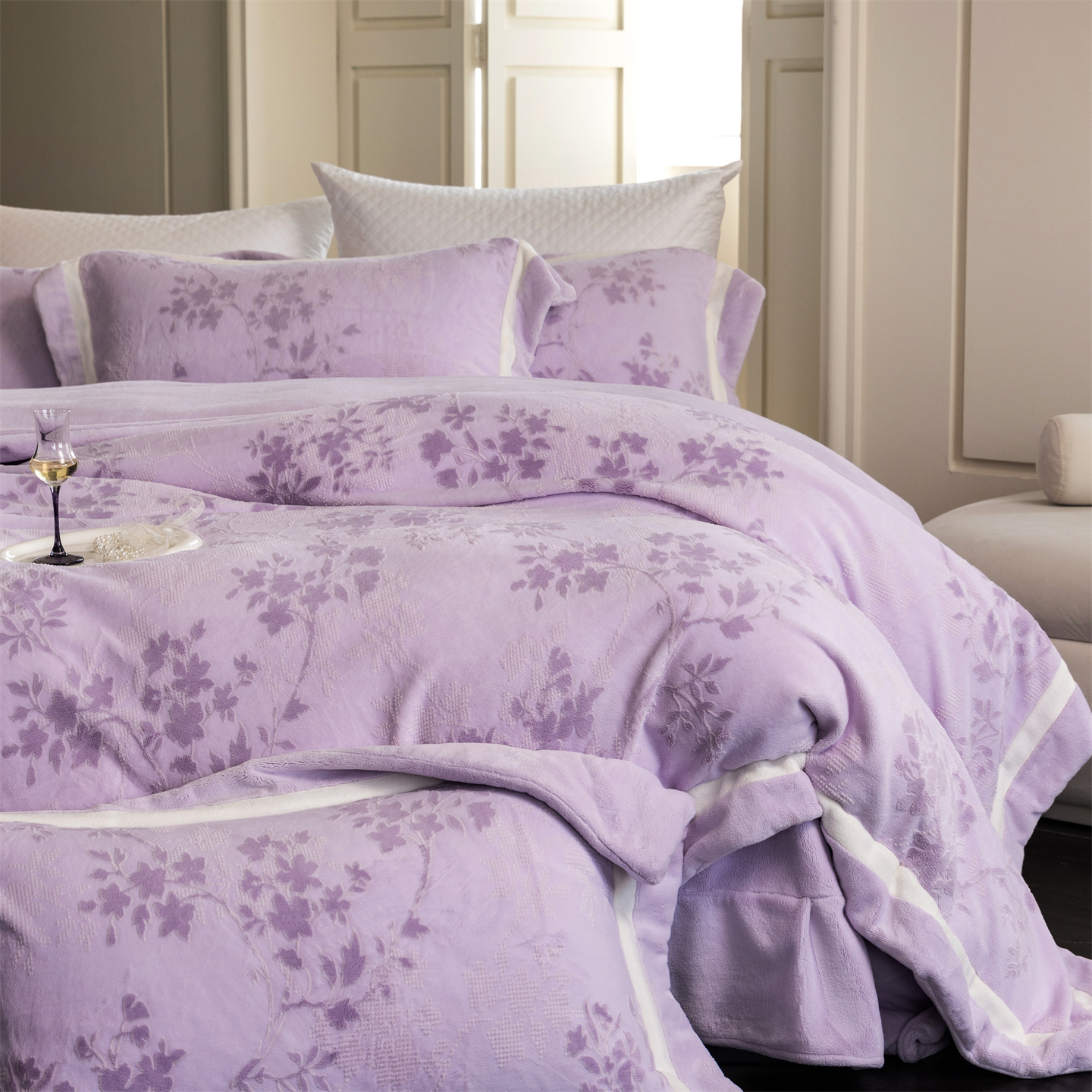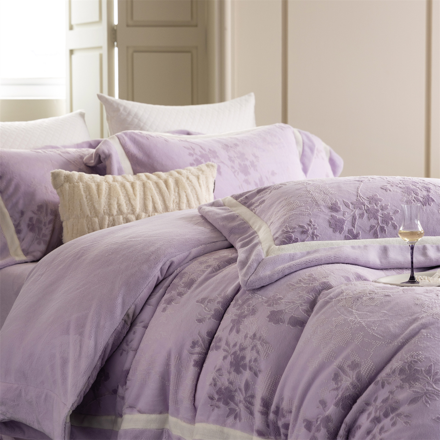 (总)馨蕊家居 2025新款意大利进口高精密刺绣拼角工艺秋冬法式高奢雪貂绒系列-绒雪芙 会员-10【券后控价358/378】,绒雪芙-奶咖,绒雪芙-蔷薇粉,绒雪芙-婉若紫,绒雪芙-月光白