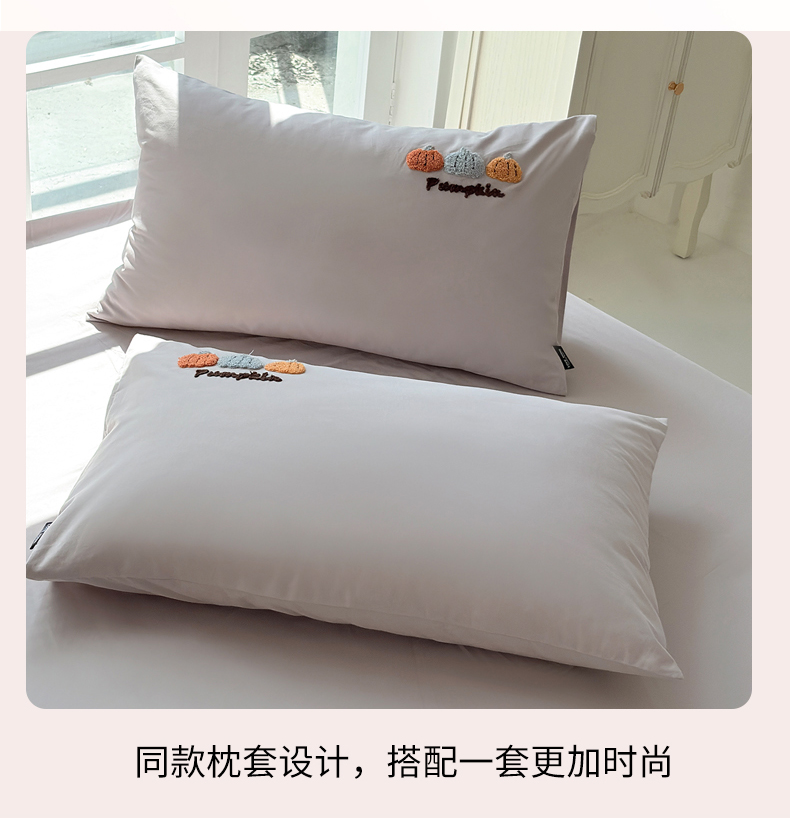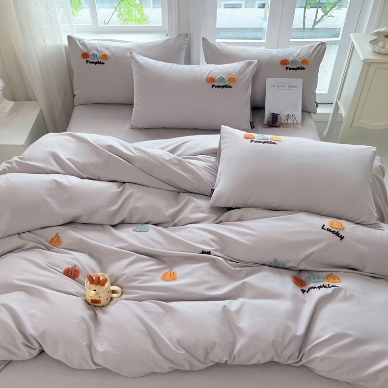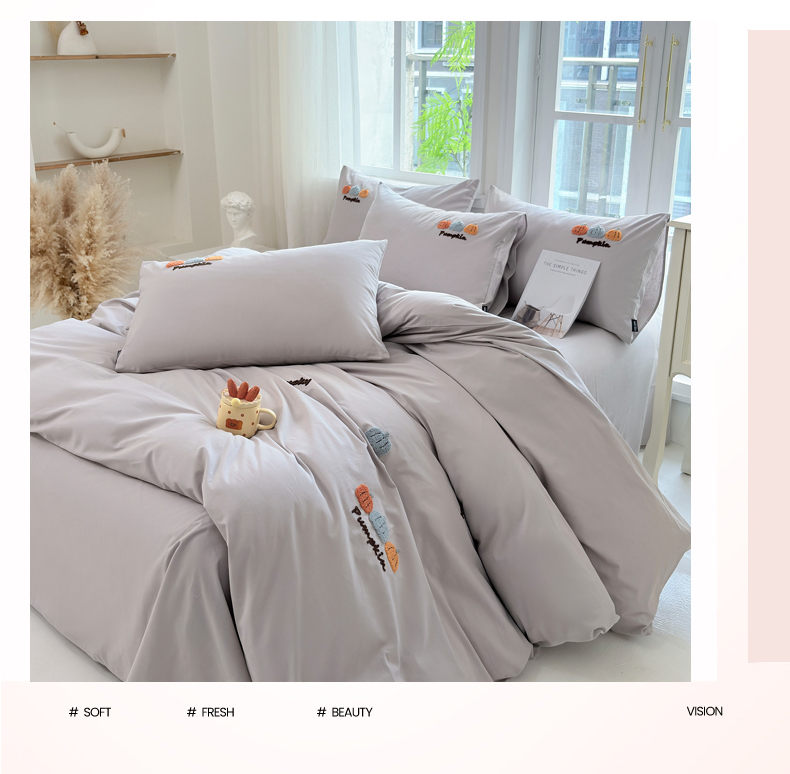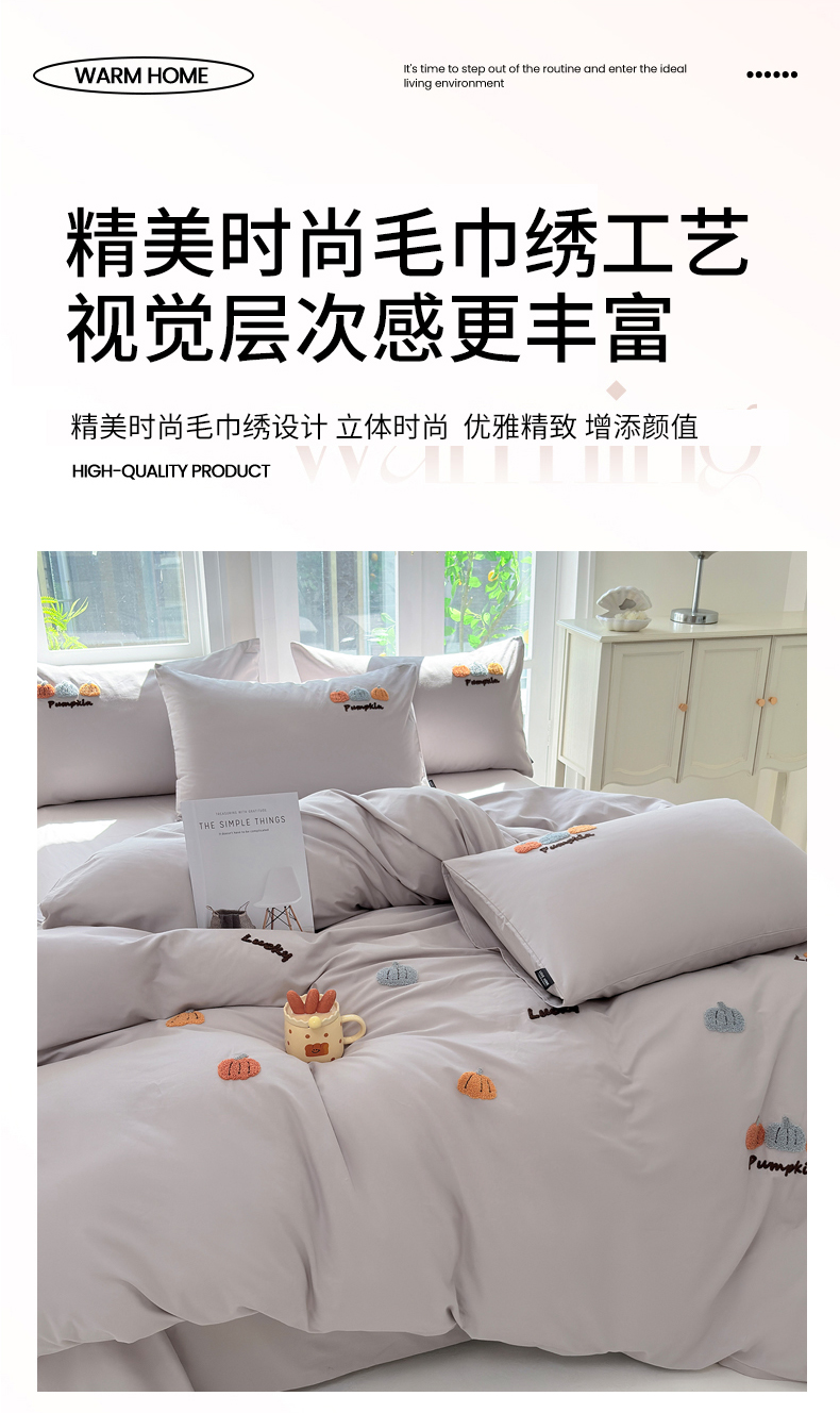• 91家纺网 家纺一手货源 找家纺 未来家居 2025新款秋冬全棉加厚磨毛纯色毛巾绣花款工艺四件套 南瓜派-灰