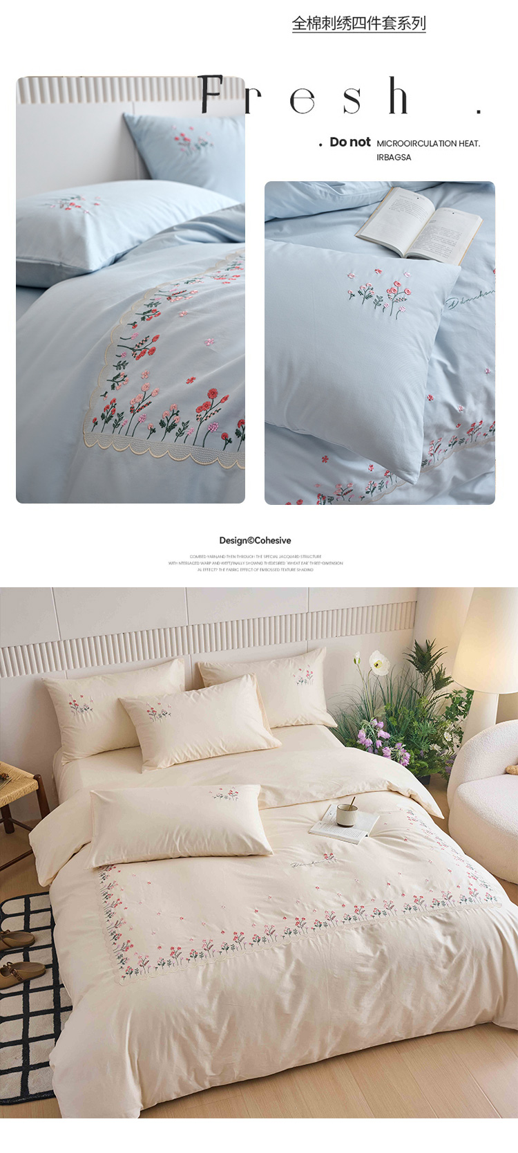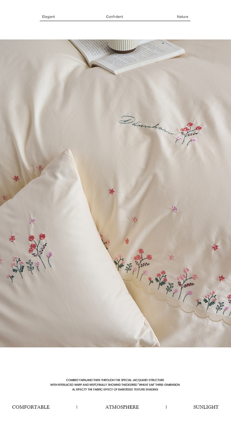 商品名称:悦然毛巾被 2025新款全棉纯棉斜纹毛巾绣四件套 浪漫花香-粉