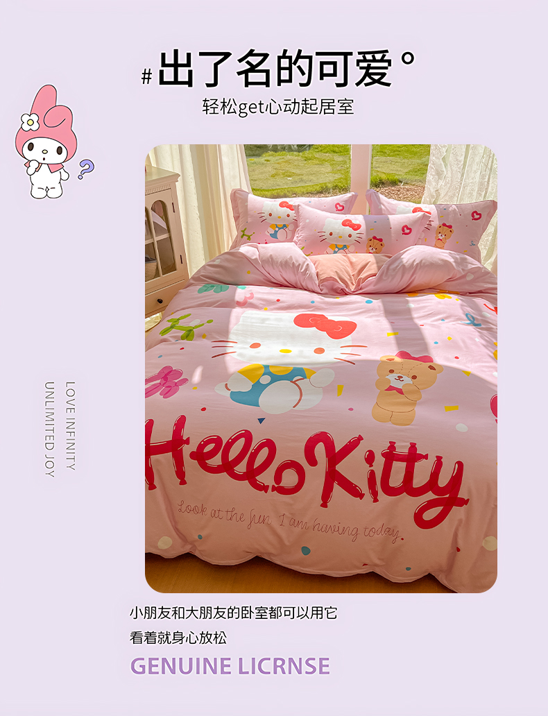 (总)浩诚 2026新款专版三丽鸥hellokitty库洛米正版授权大版全棉纯棉四件套,爱心甜点,比心库洛米,草莓KT,打工美乐蒂,飞行员,花花美乐蒂,花园派对,浪漫美乐蒂,美美KT,三丽鸥家族,甜甜库洛米,甜心宝贝,甜心库洛米,条纹玉桂狗,晚安库洛米,旋转玉桂狗,音乐KT,樱桃库洛米,云朵天使,云朵玉桂狗