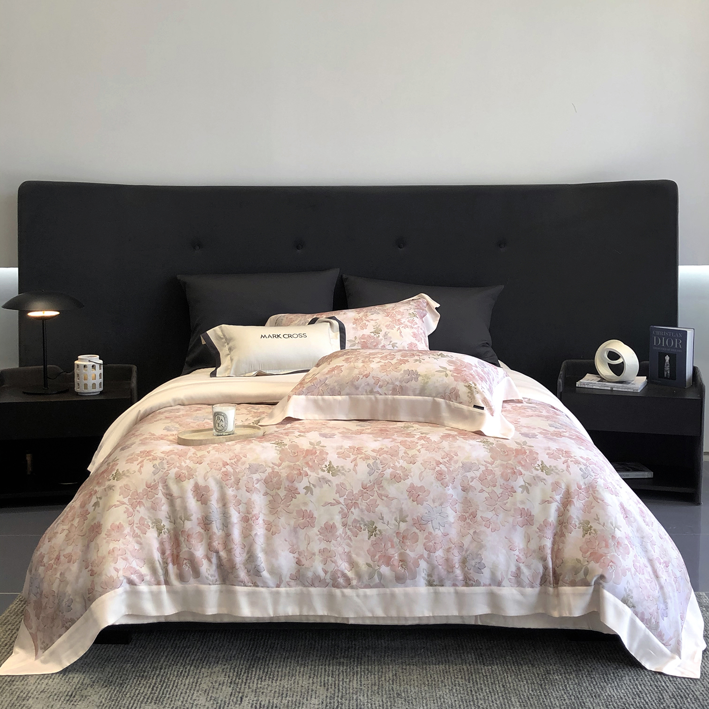 (总)佳汐蓝家纺 2025 春夏新品60支兰精天丝数码印花四件套-小苍兰花语,白,粉,蓝