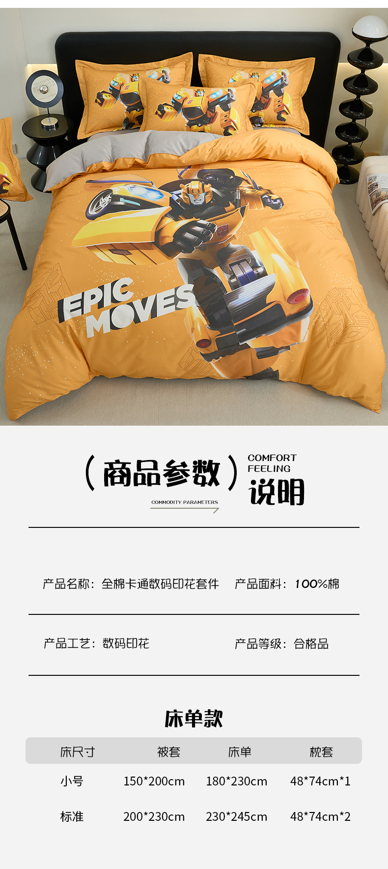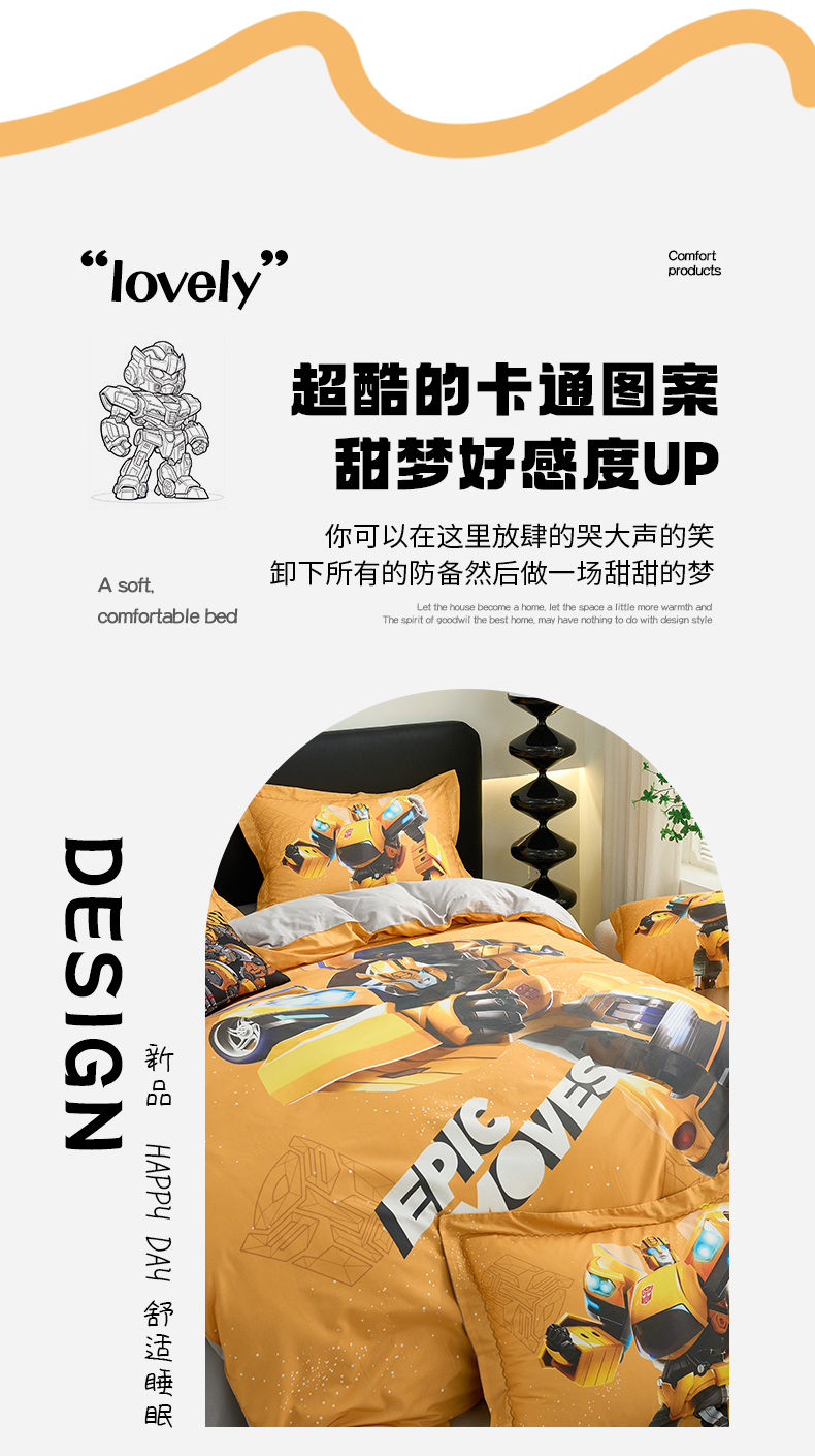 商品名称:(总)百利卡通(原迪士尼家纺) 2025新款亲肤舒适变形金刚数码印花全棉纯棉三四件套