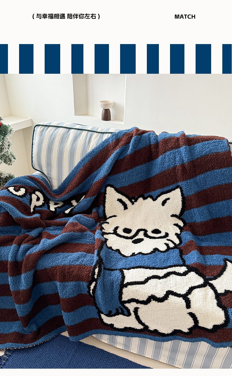 (总)丹本家纺 2025新款设计师原创多功能针织半边绒毛毯午休毯盖毯加厚毯子,快乐狗,蓝条绅士狗,你好猫先生,圣诞快乐,幸运送餐狗,休息一下
