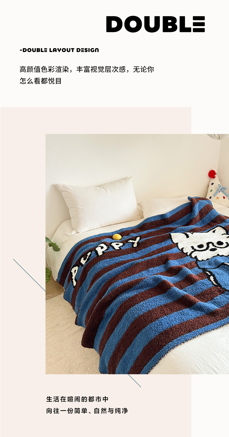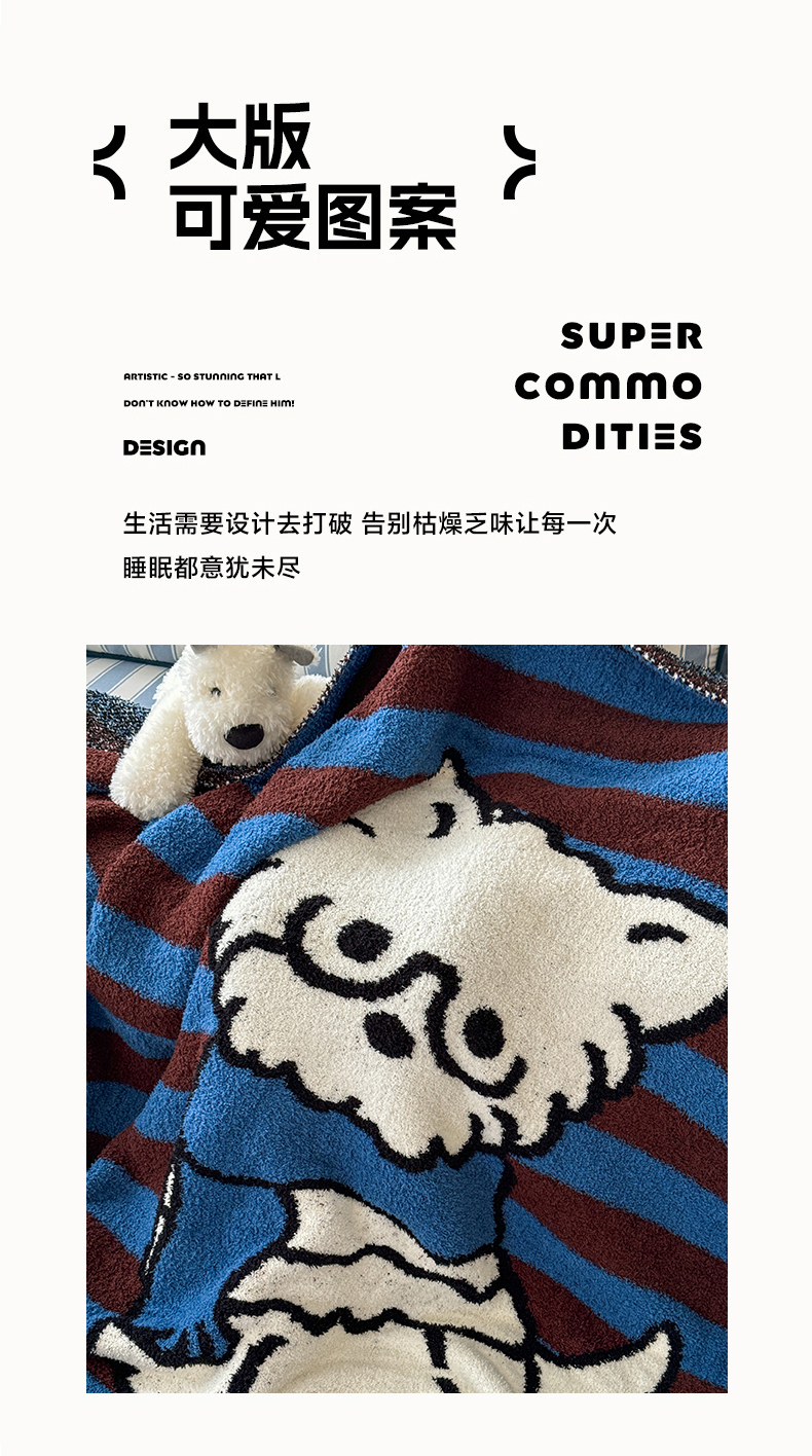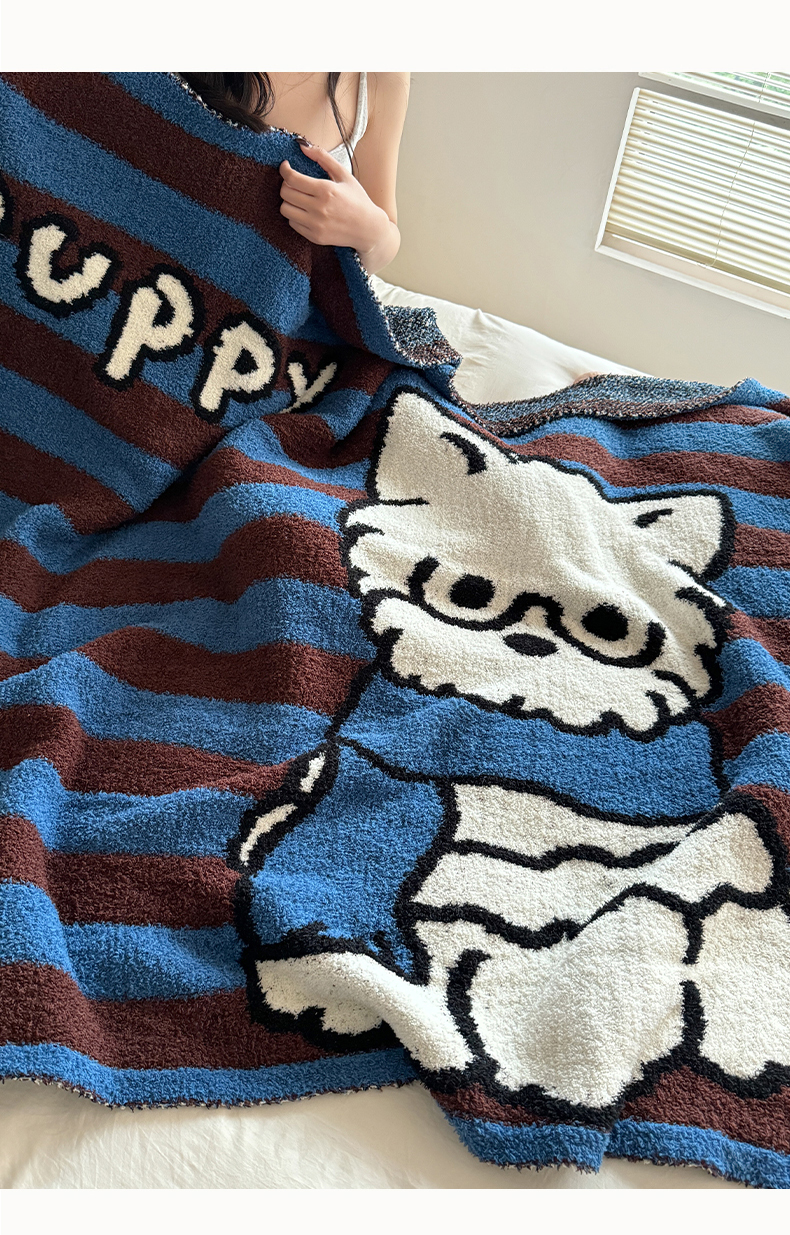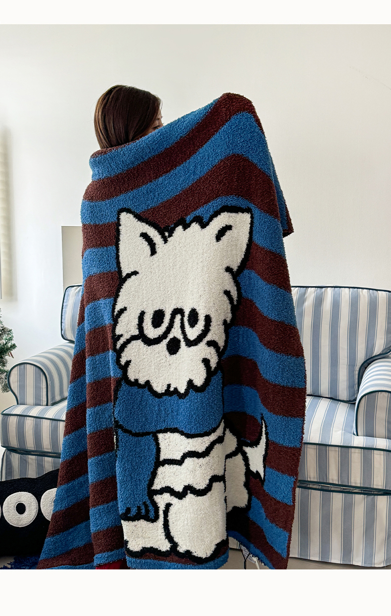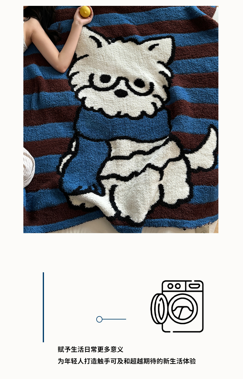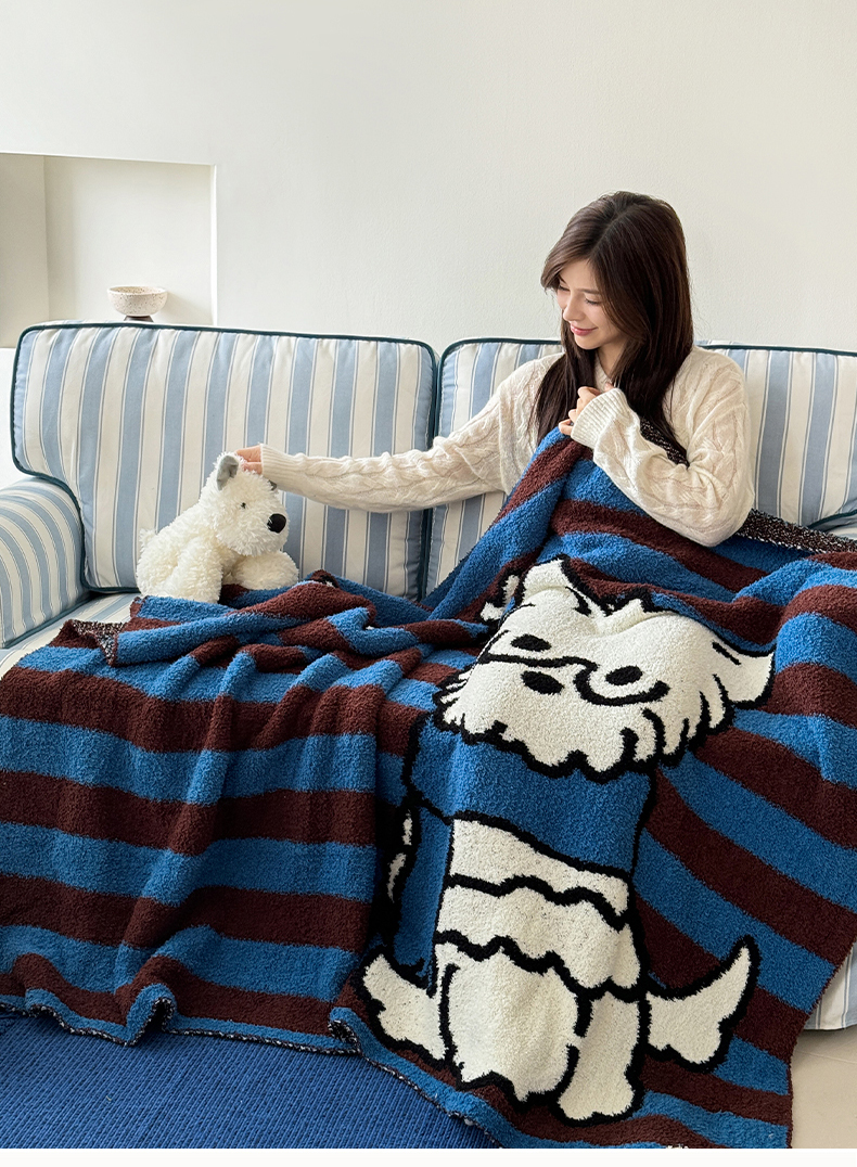 商品名称:丹本家纺 2025新款设计师原创多功能针织半边绒毛毯午休毯盖毯加厚毯子 蓝条绅士狗