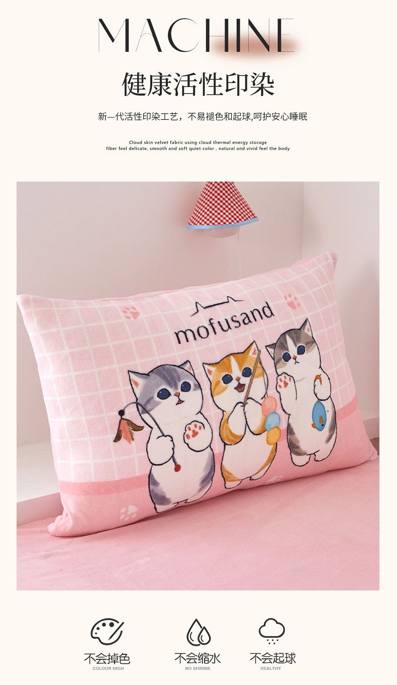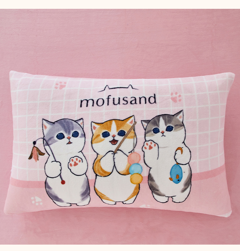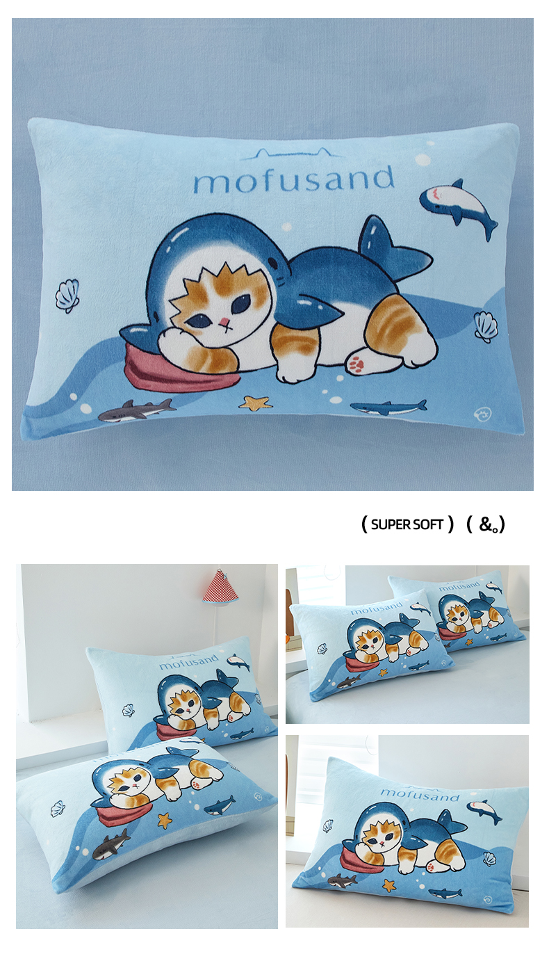 商品名称:蘭菲家纺 2025新款高克重牛奶绒正版鲨鱼猫系列单品枕套 珊迪闲逛-猫福