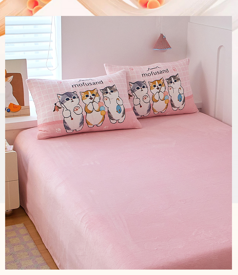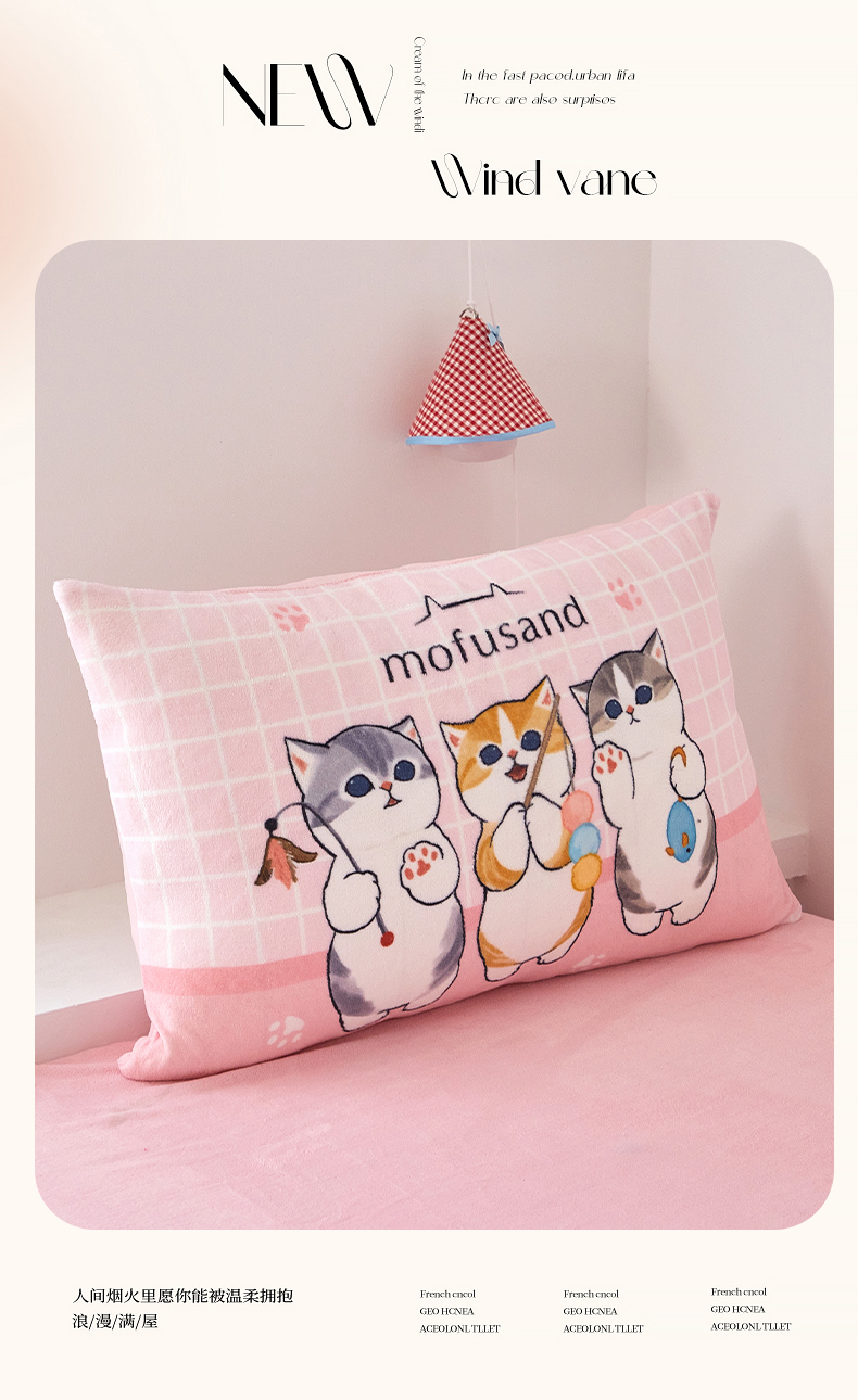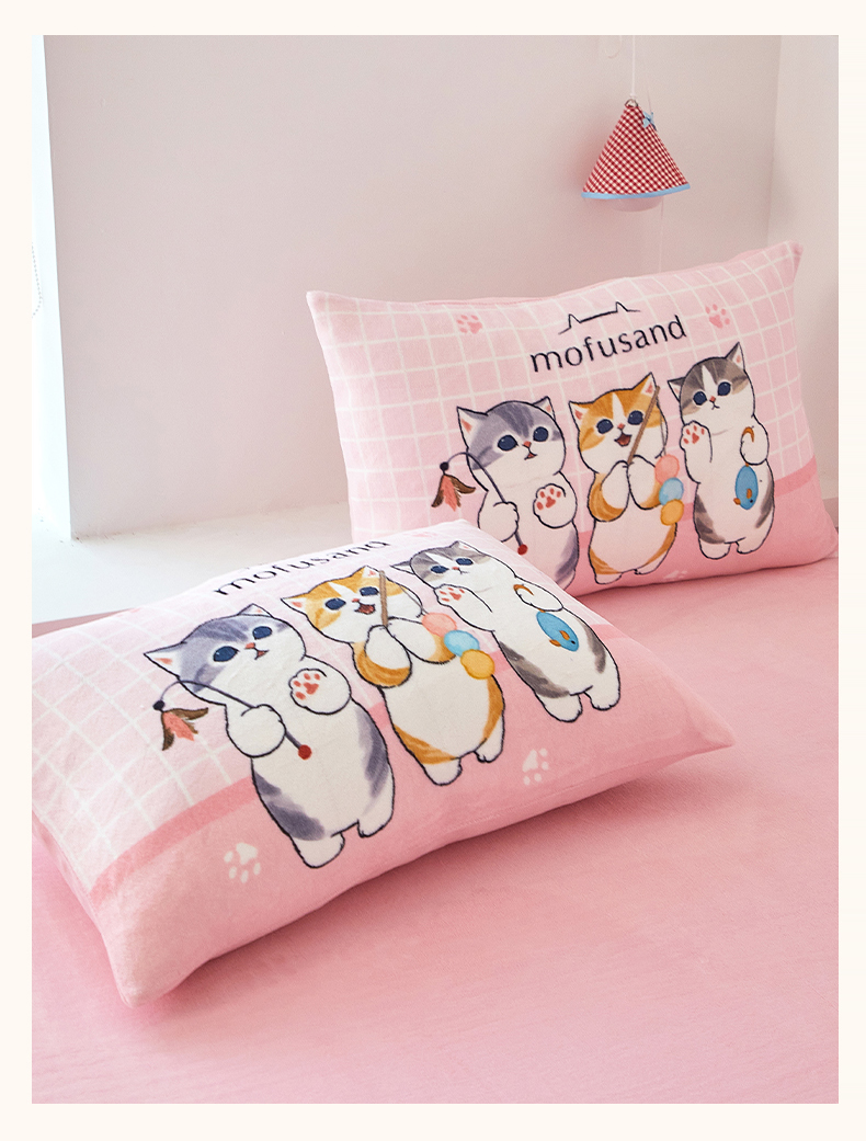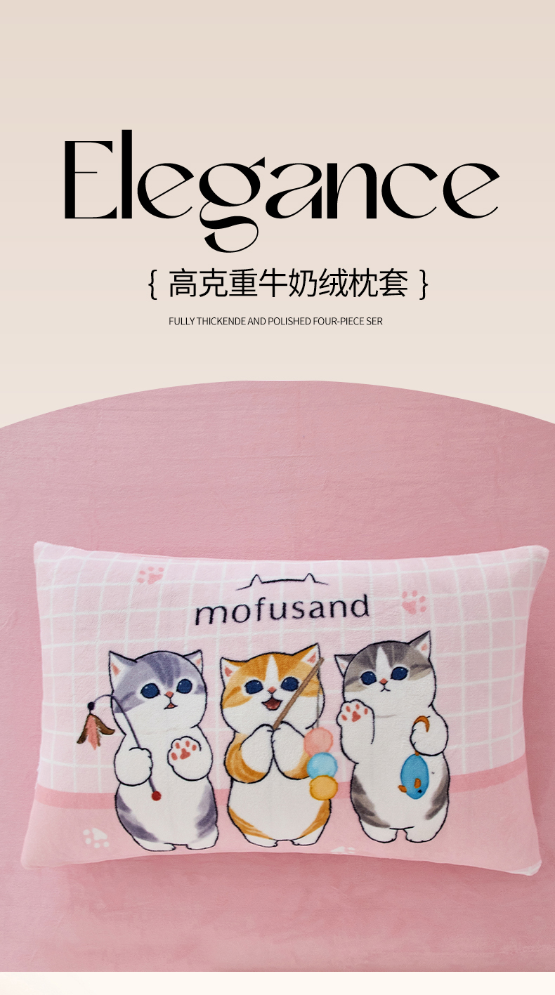 商品名称:蘭菲家纺 2025新款高克重牛奶绒正版鲨鱼猫系列单品枕套 珊迪闲逛-猫福