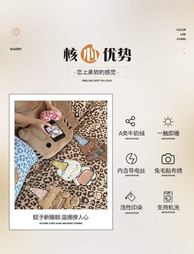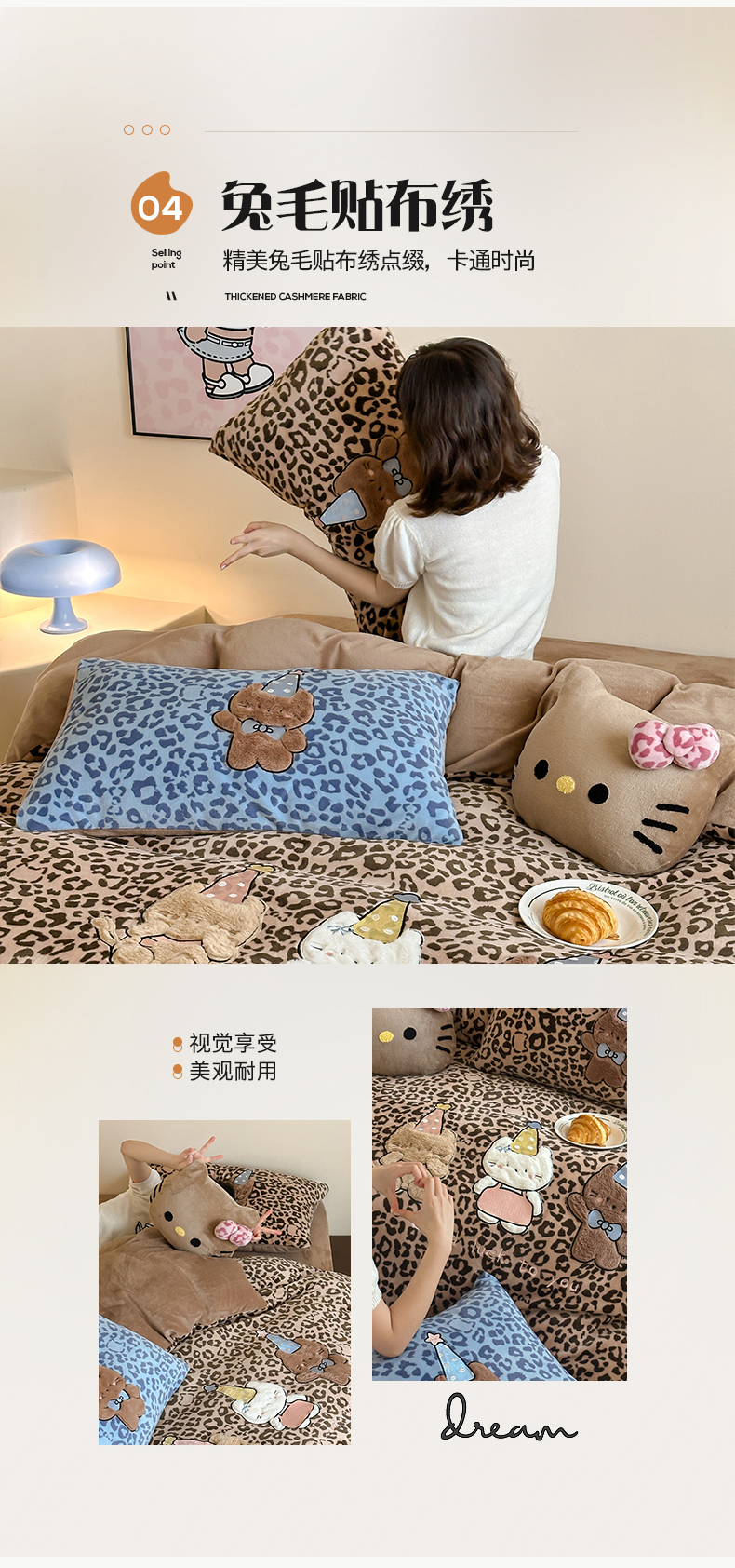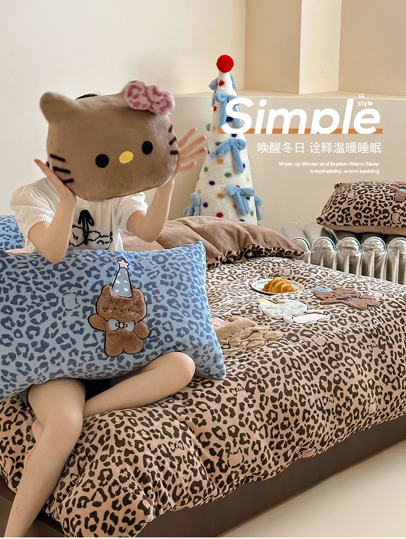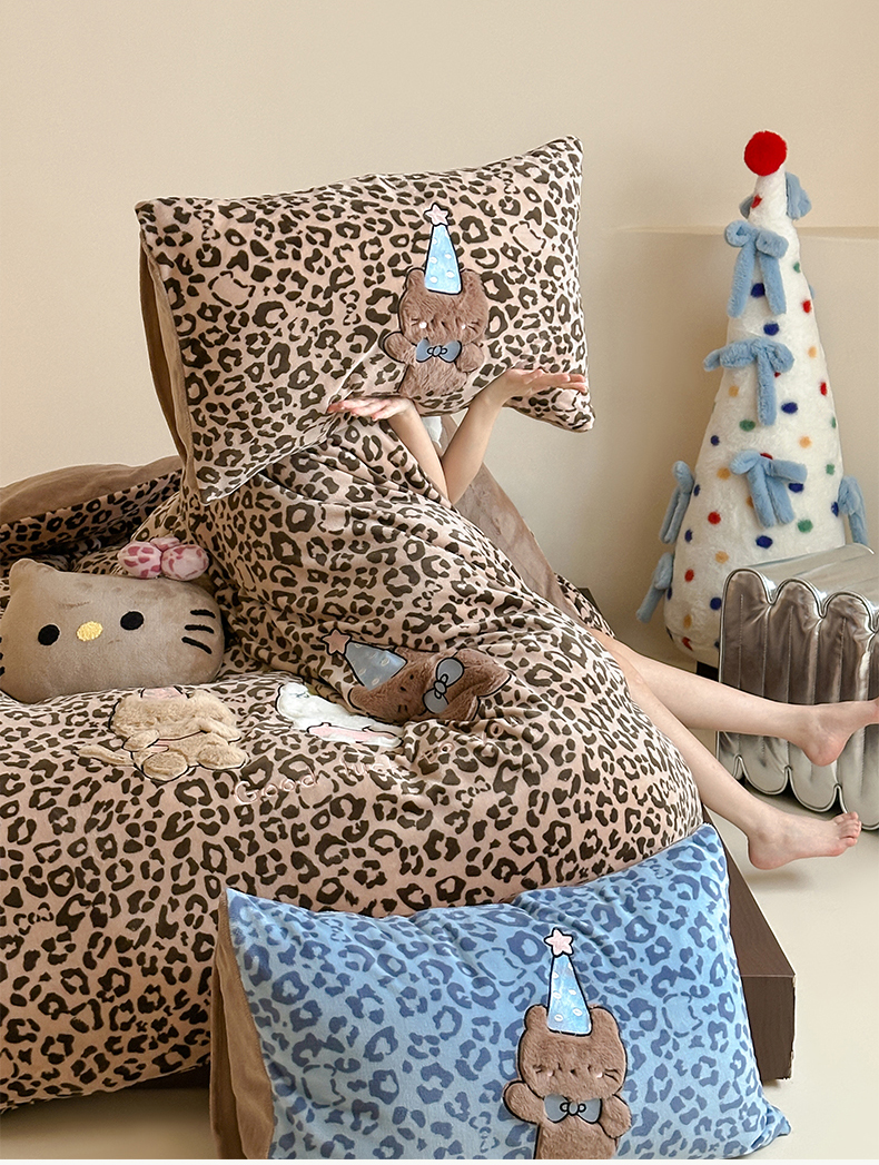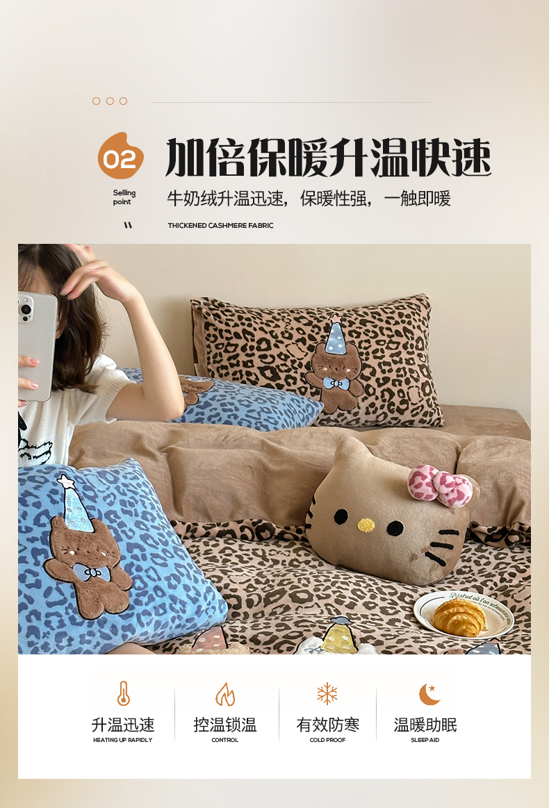 当前位置: 91家纺网 > 商品网购 > 床品套件 > 四件套 > 牛奶绒四件套 > 桃子家居 2025新款A类ins秋冬限定款豹纹黑白皮猫咪兔毛贴布绣工艺刺绣混搭加厚牛奶绒系列四件套 绒贴布绣-豹纹喵三只咖蓝
